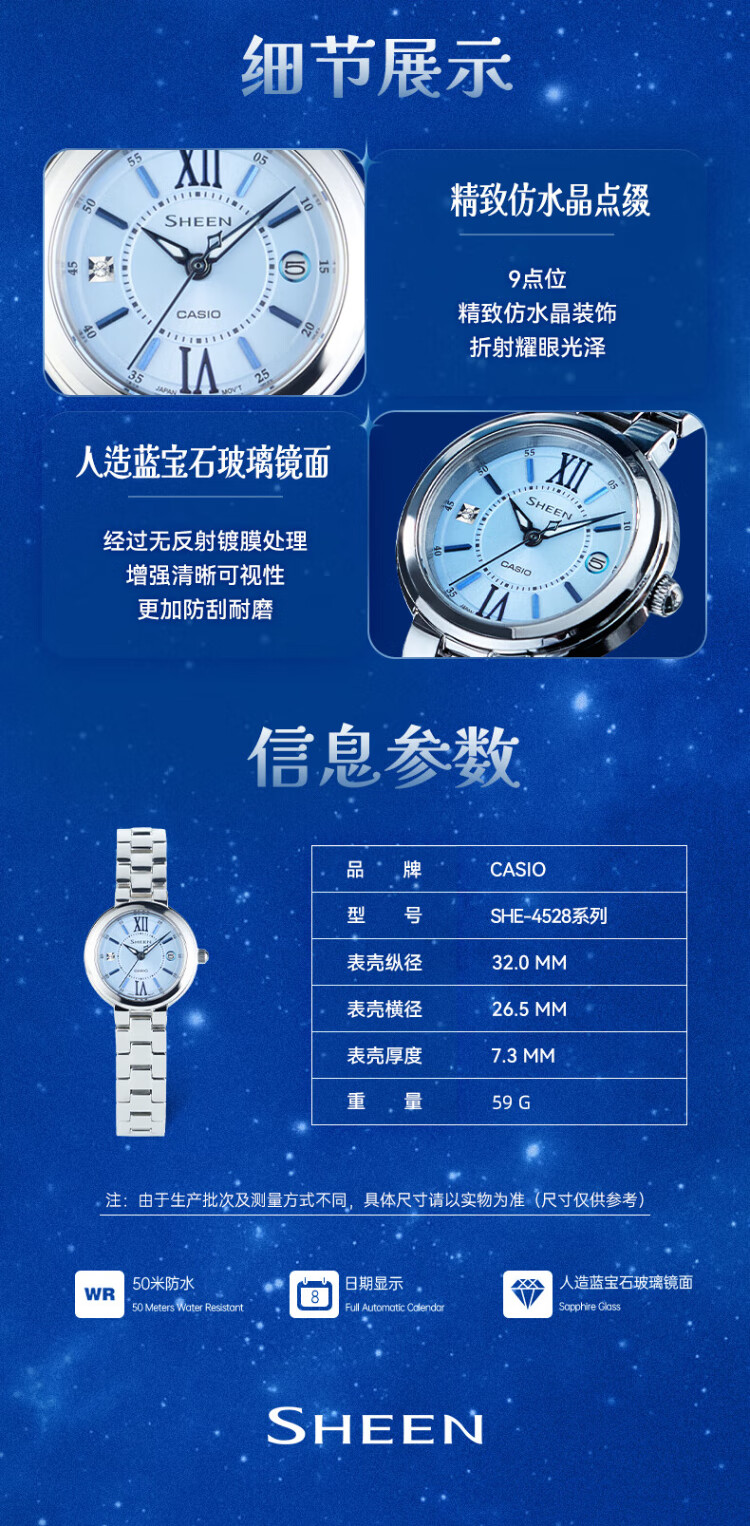 Casio (CASIO) SHEEN series guardian star SHE-4528 waterproof women's watch quartz watch gift for girlfriend SHE-4528D-7AUPR