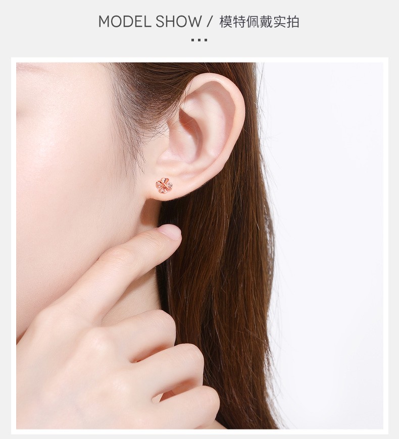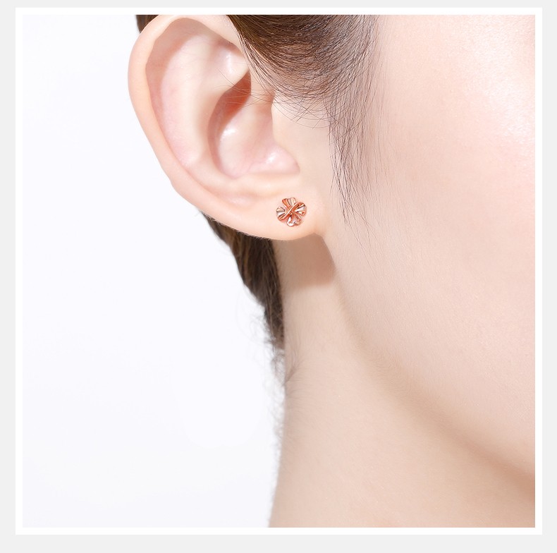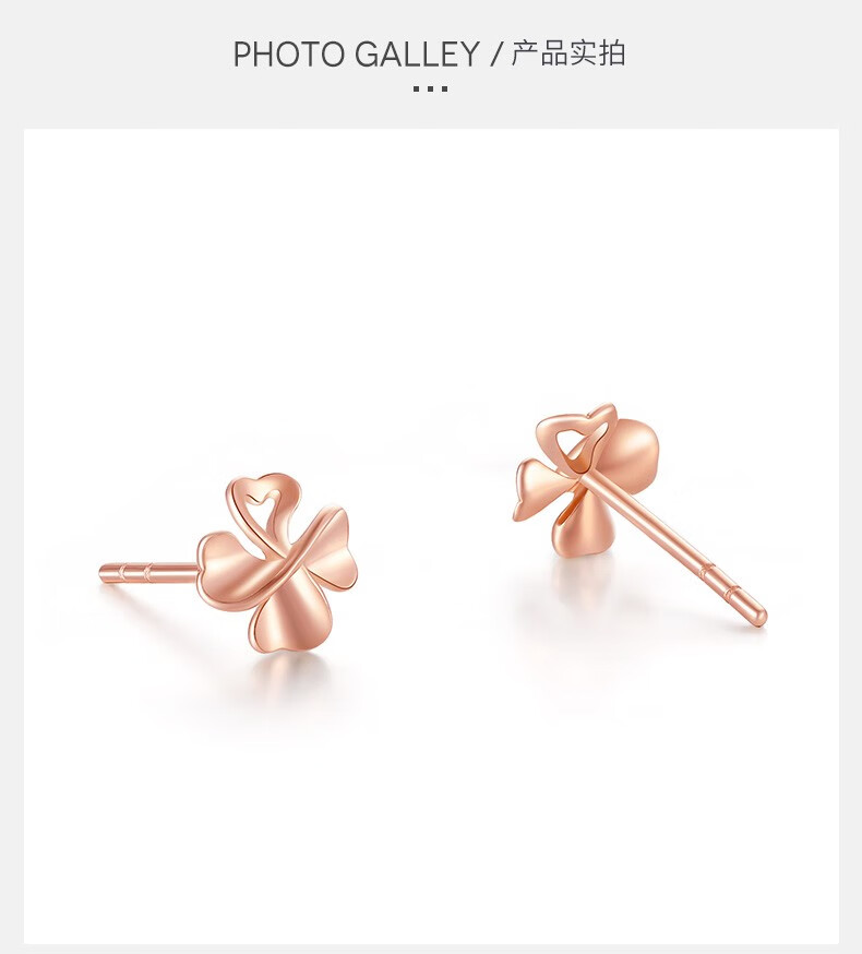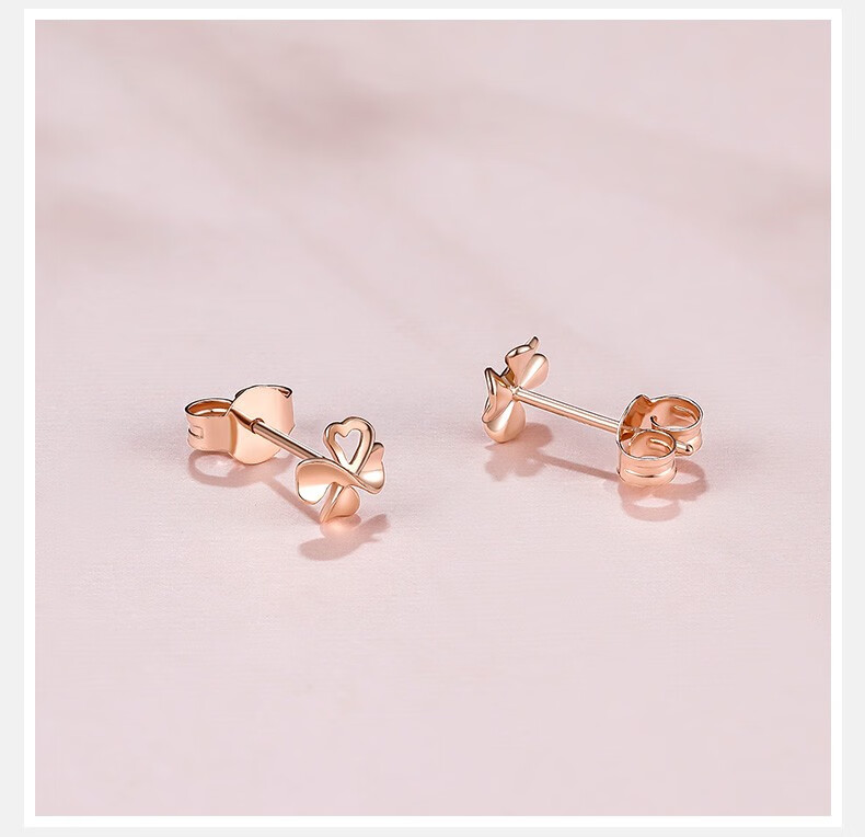 Saturday Fortune (ZLF) 18K gold earrings rose gold four-leaf clover gold earrings girlfriend ready stock