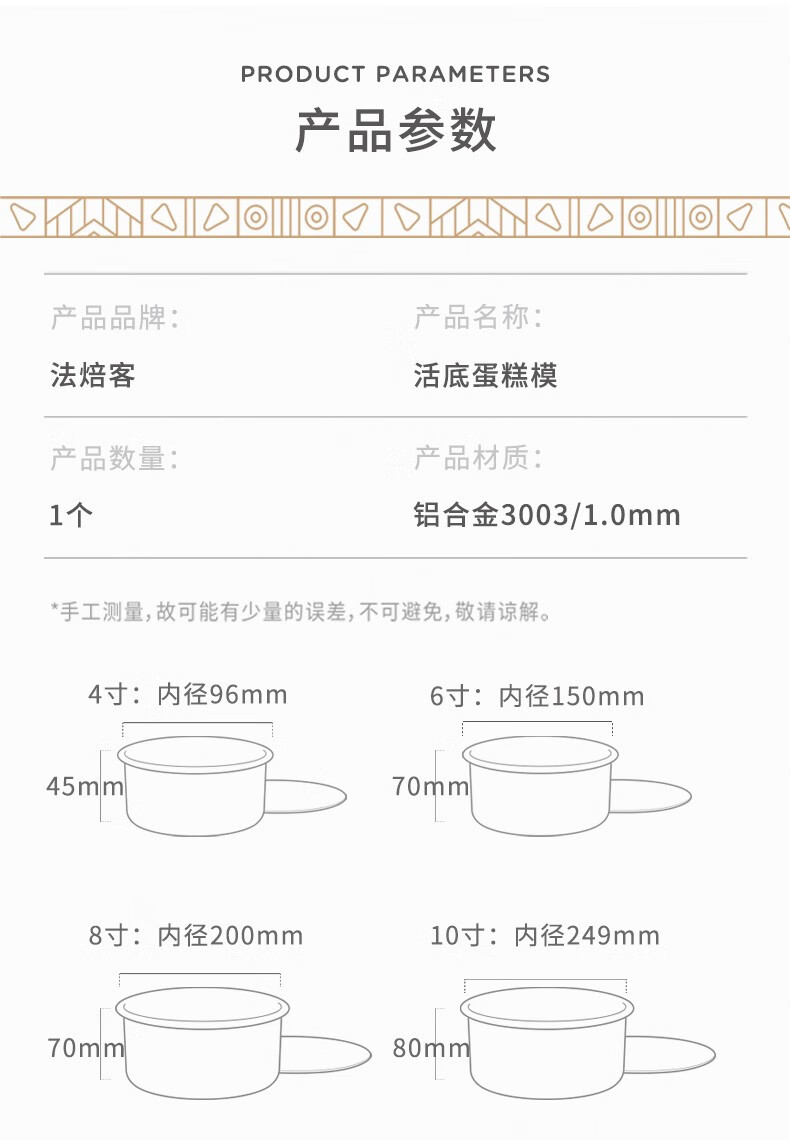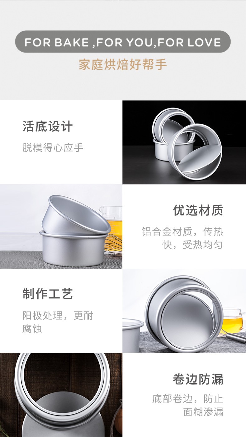 French bakery cake mold Chiffon cake mold household live bottom tool round cheese anode cake mold oven household anode 6 inches/FB30093