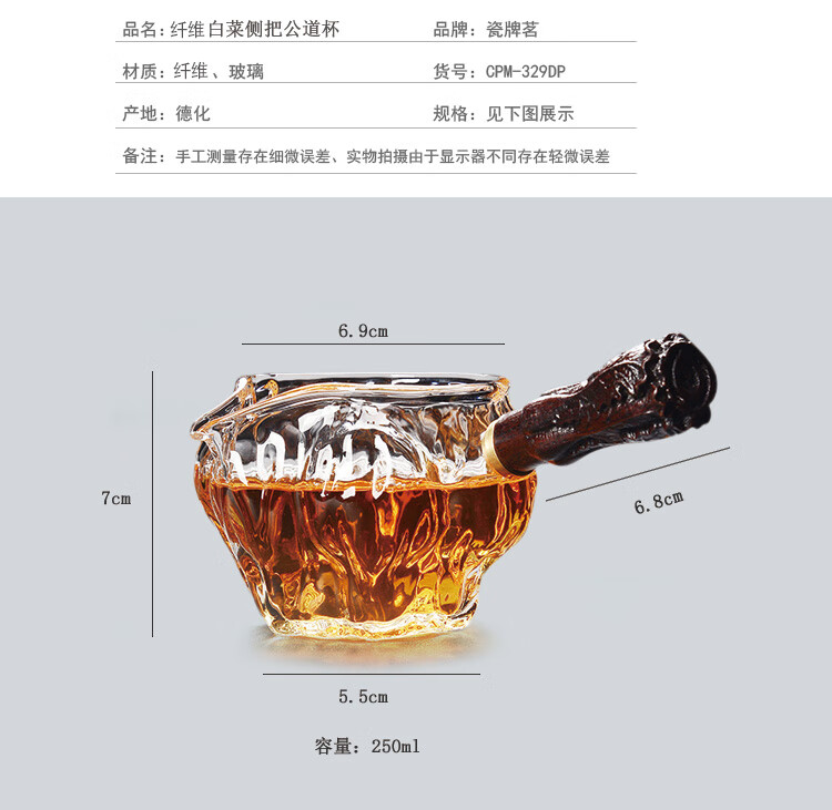 Porcelain brand tea set, heat-resistant and anti-scalding tea set, uniform cup, male cup, kung fu tea set accessories, side handle <Baicai handle> fair cup
