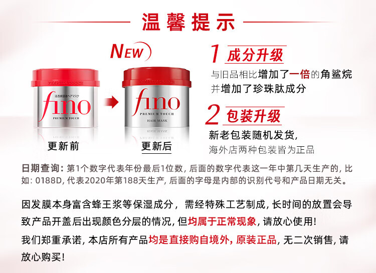 FINO Fennong Ding Yuxi's same style thick beauty serum hair mask 230g perm and dyed damaged smooth no-steam baking ointment