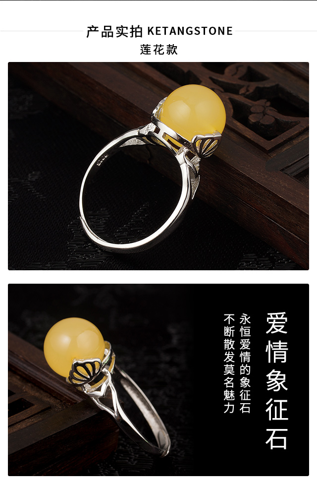 Ketang Pearl Beeswax Ring S925 Silver Inlaid Milwax Ring Face Open Women’s Ring Valentine’s Day Gift Year of the Dog New Year Ornaments Lotus Ring