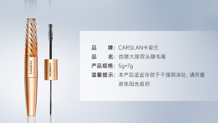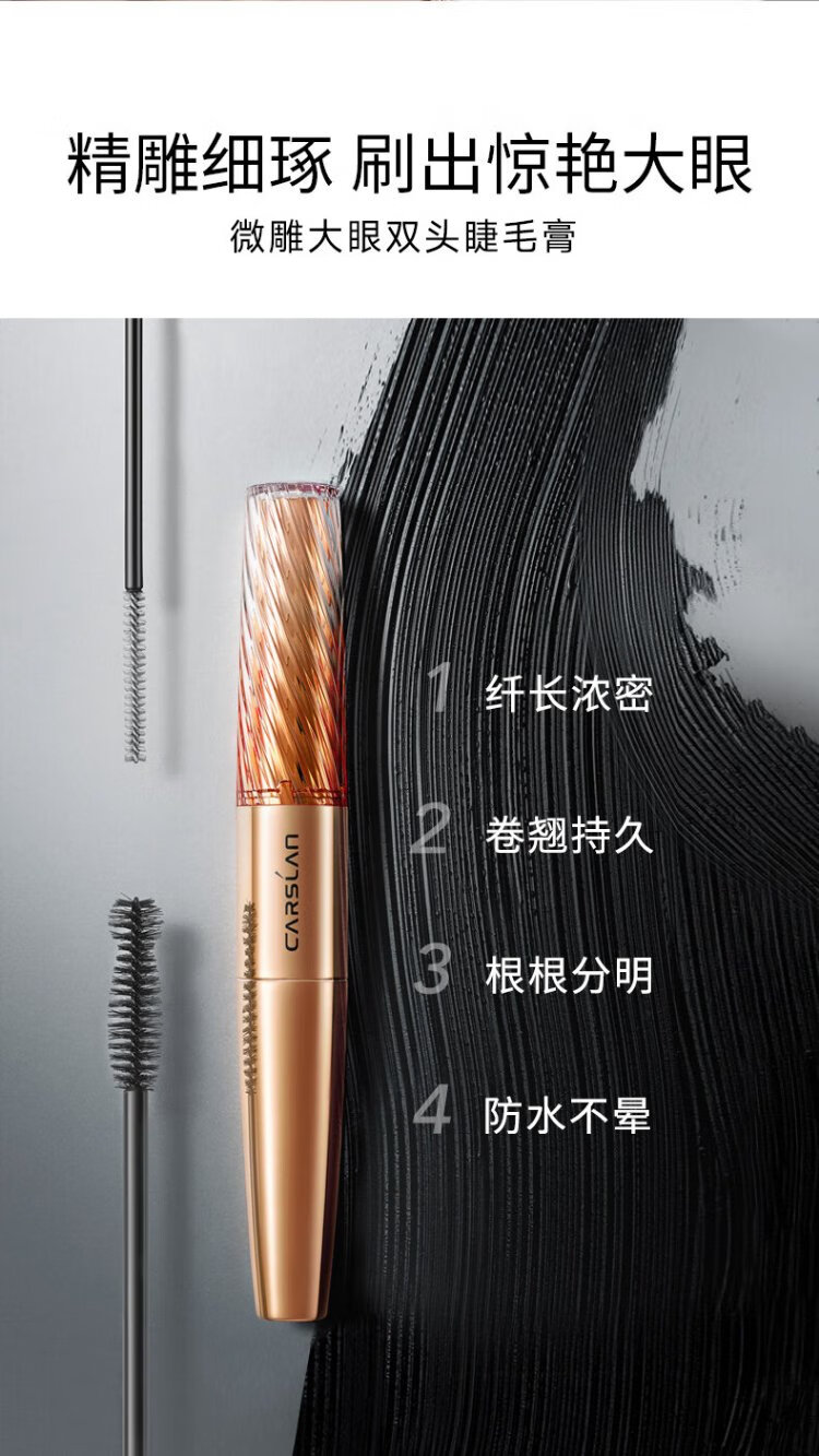 Carslan micro-carved double-headed mascara for big eyes, thick and curling, non-clumping, waterproof and sweat-proof 5g7g birthday gift for girls