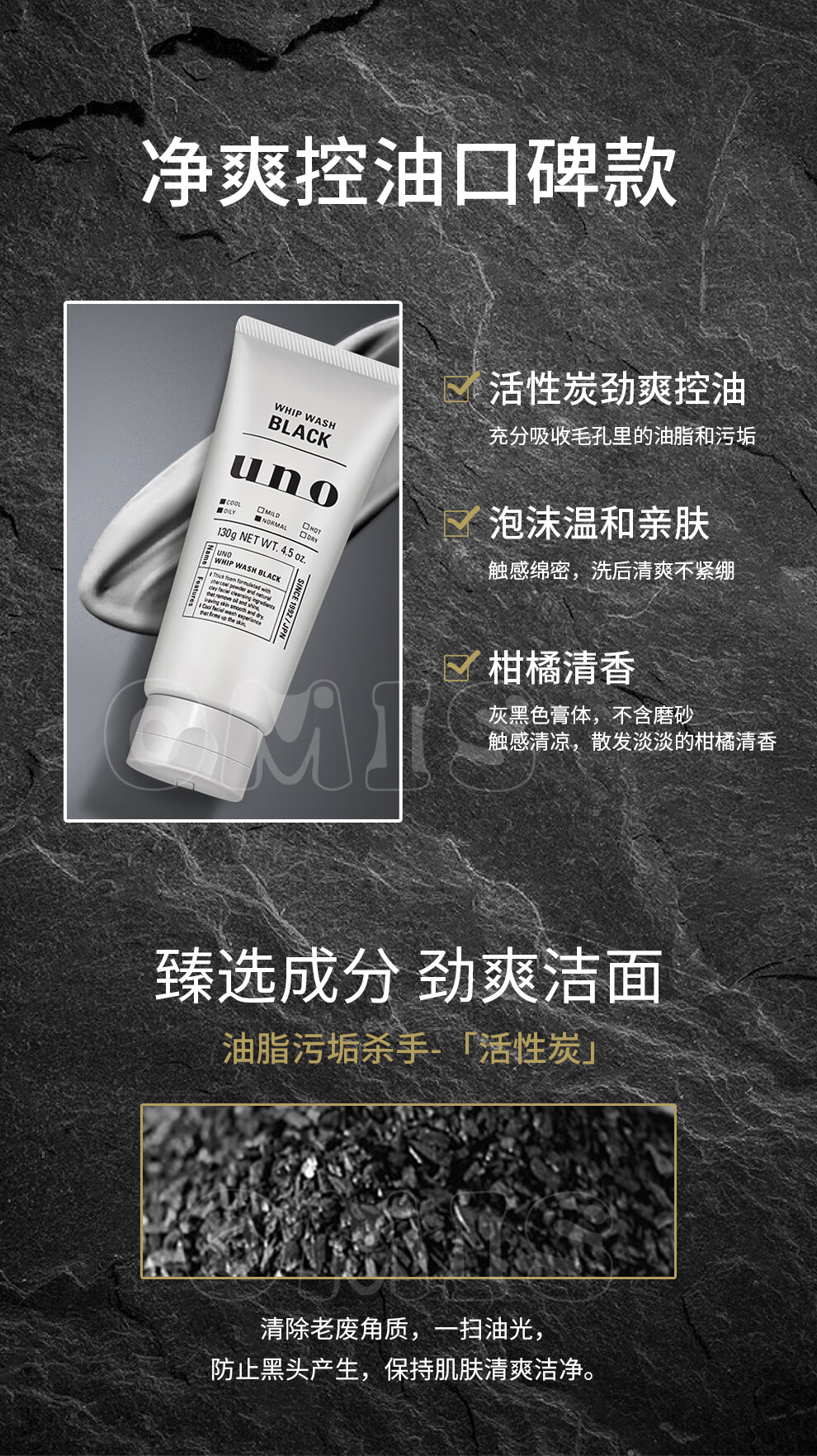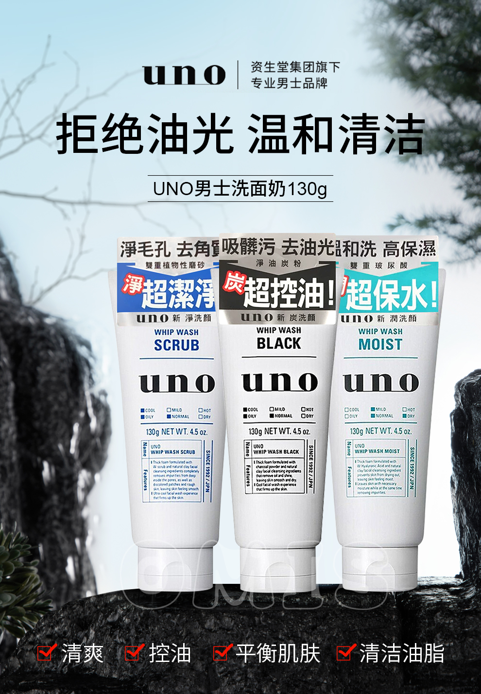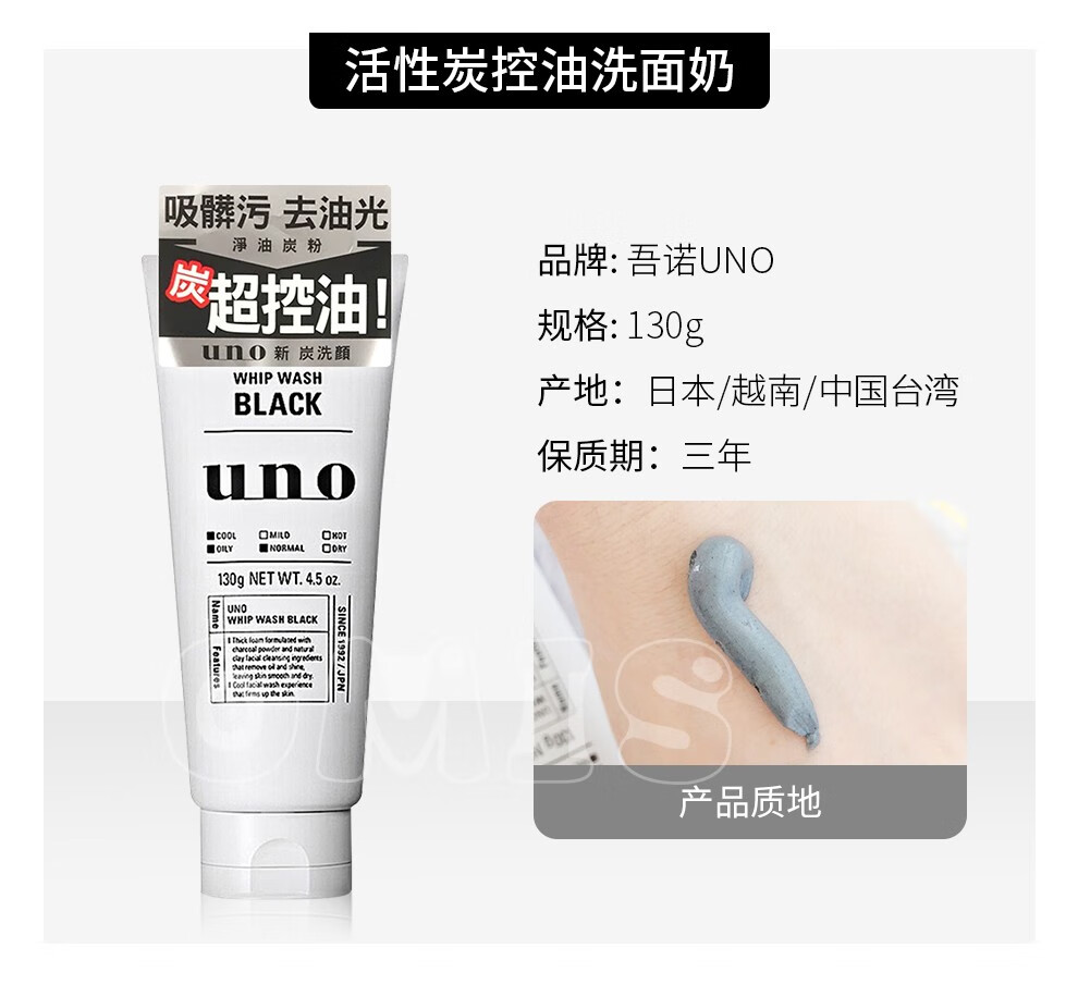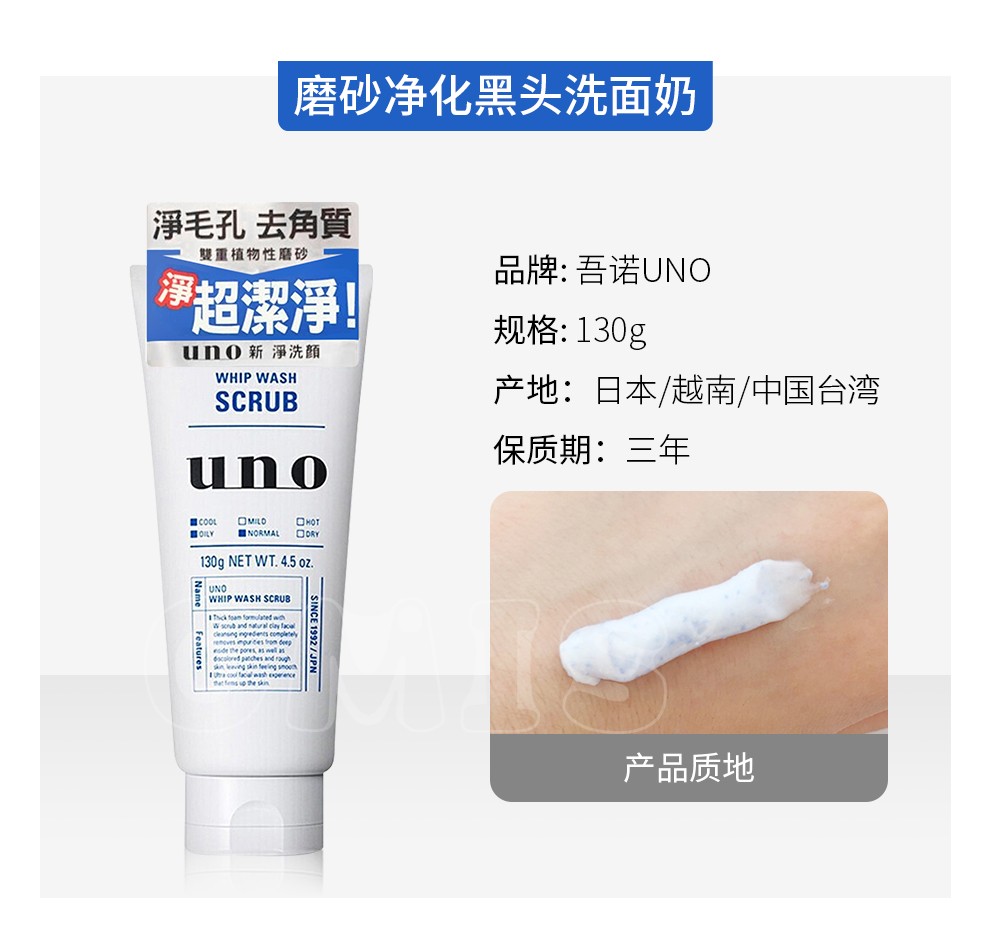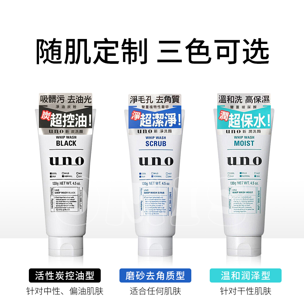 UNO UNO Men's Facial Cleanser Charcoal Refreshing Oil Control Moisturizing Scrub Cleanser Facial Cleanser (Oil Control + Scrub + Moisturizing) 3 Pack Combination