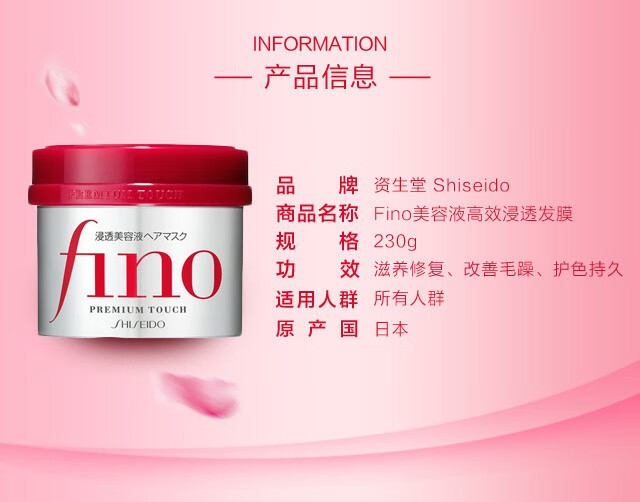 Shiseido Fino Penetrating Beauty Essence Hair Mask to Improve Frizz, Perm and Dye Damaged Hair, Hair Care for Men and Women 230g*1 Bottle