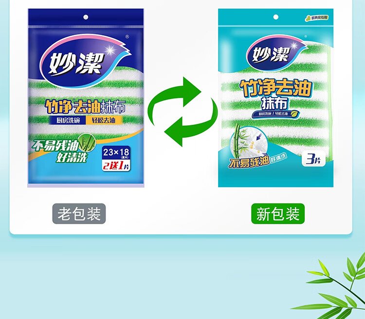 Miaojie Bamboo Oil Degreasing Rag 23*18cm 3 pieces, kitchen dishcloth for home use, unique fiber that cleans in one flush