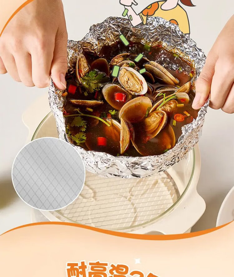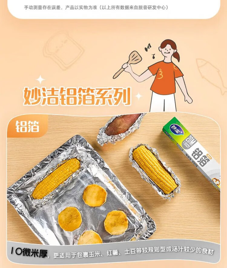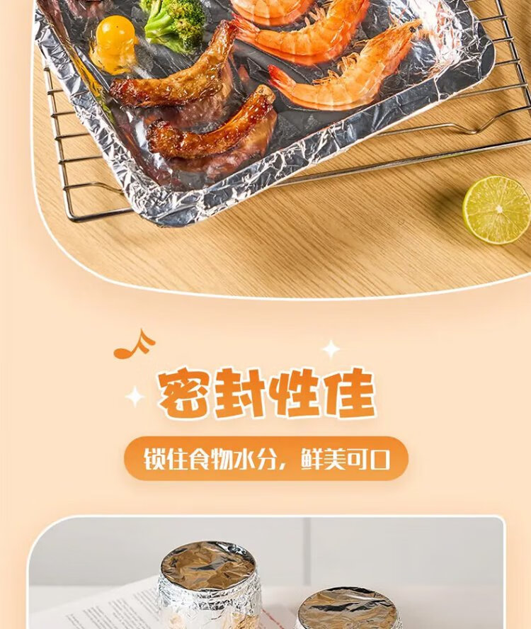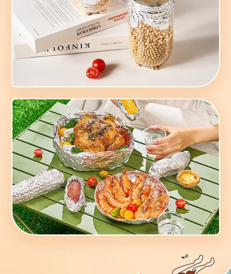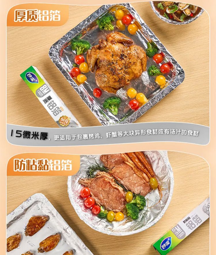 Miaojie aluminum foil tin foil 15-meter boxed kitchen baking barbecue oven air fryer is suitable for locking water and keeping fresh and not easy to burn.