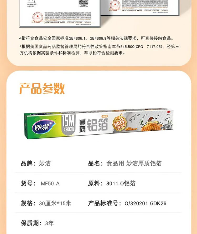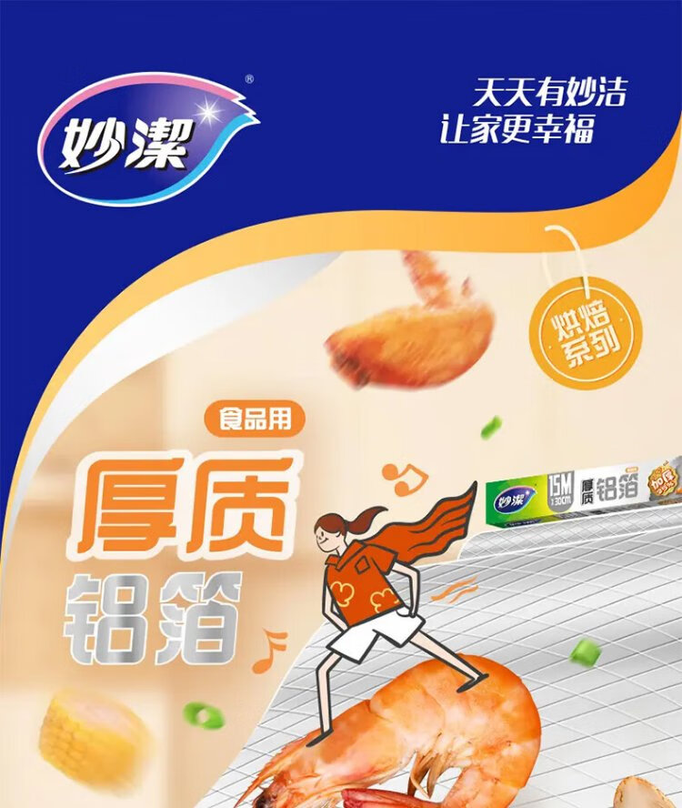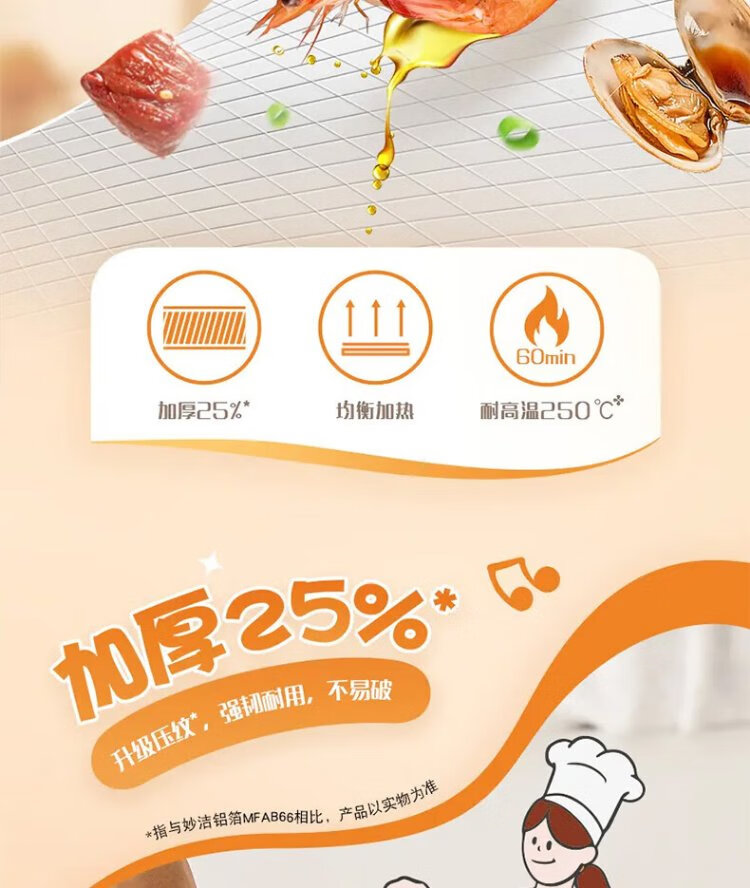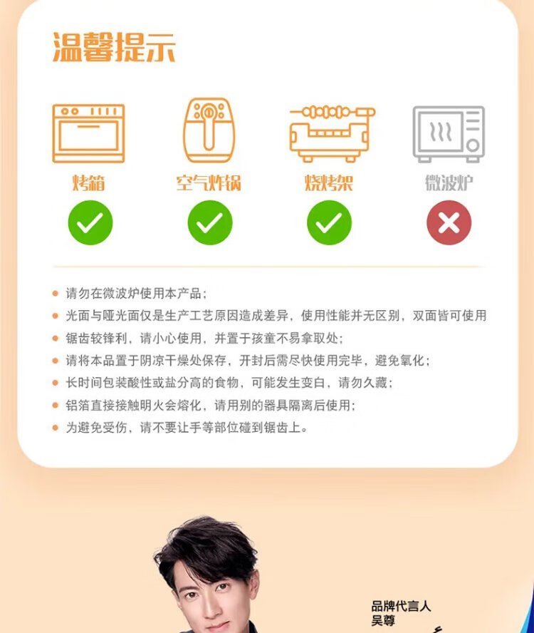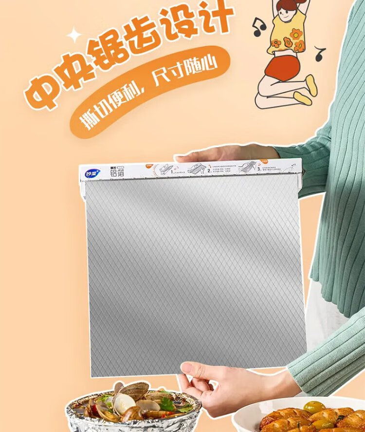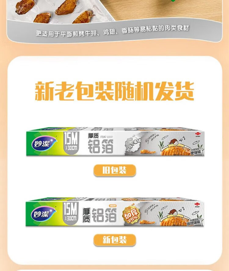 Miaojie aluminum foil tin foil 15-meter boxed kitchen baking barbecue oven air fryer is suitable for locking water and keeping fresh and not easy to burn.