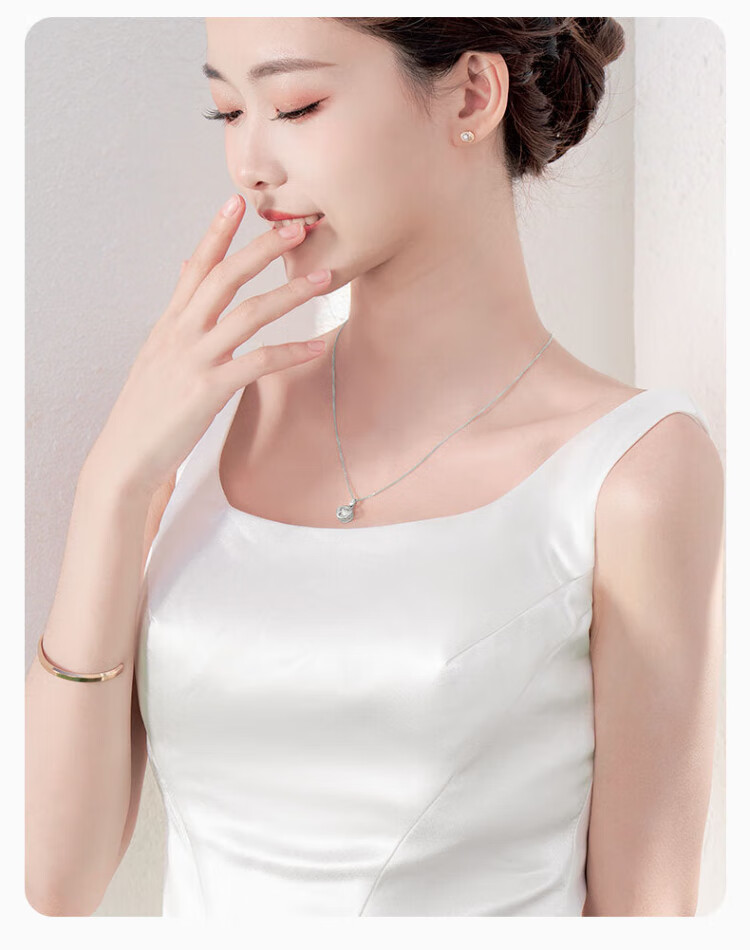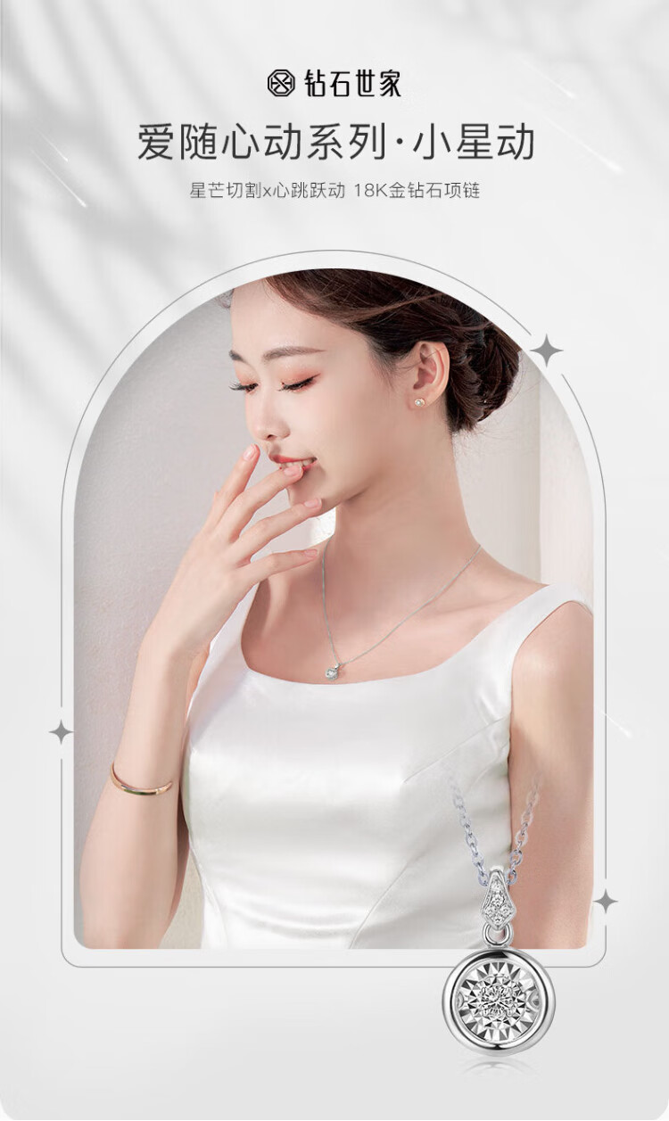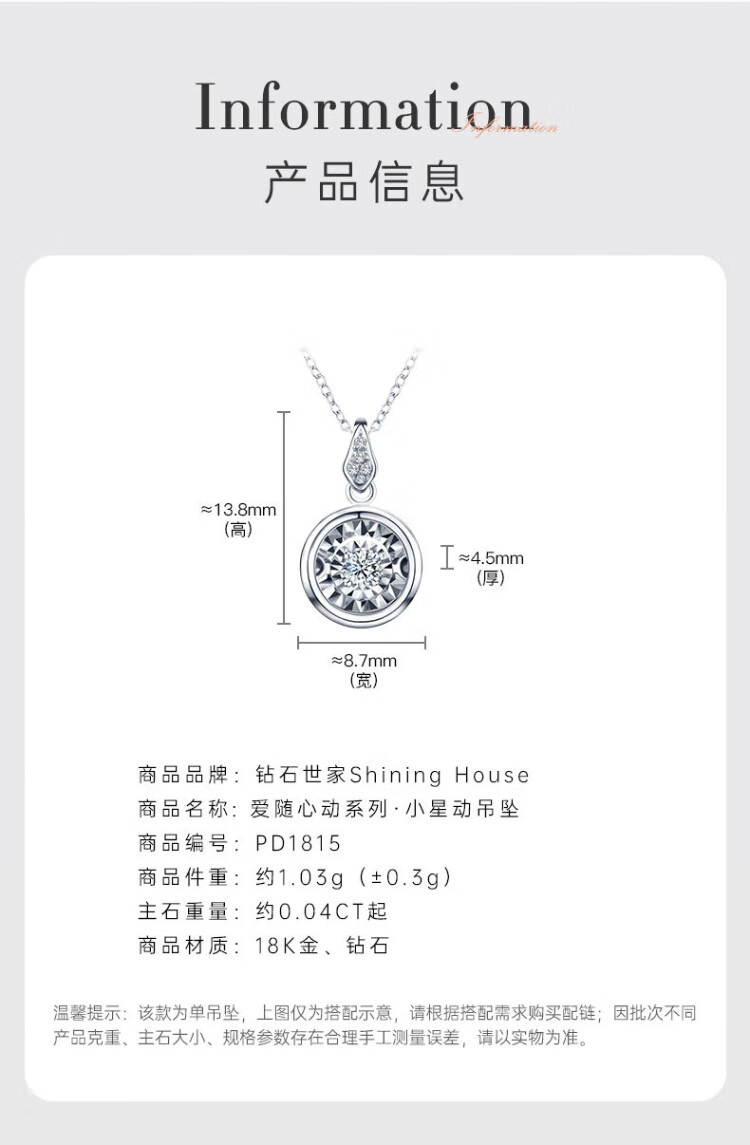 Diamond Family New Year's Gift Love Follows Your Heart Xiao Xing Dong 18K Gold Diamond Pendant Diamond Necklace for Girlfriend White Pendant & 18K Gold Cross Chain