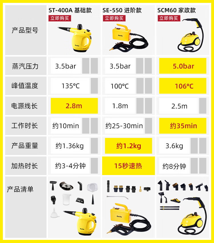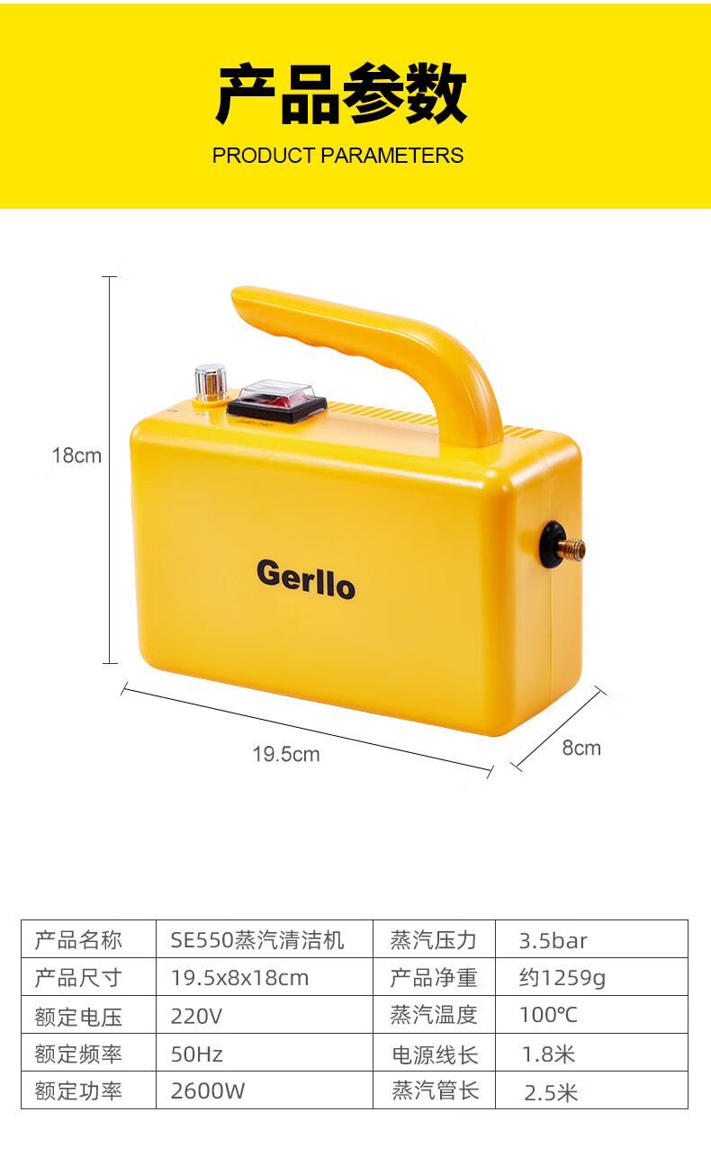 Gerllo German high-temperature steam cleaner high-pressure handheld kitchen fume cleaning machine disinfection, sterilization and degreasing professional cleaning model SE550