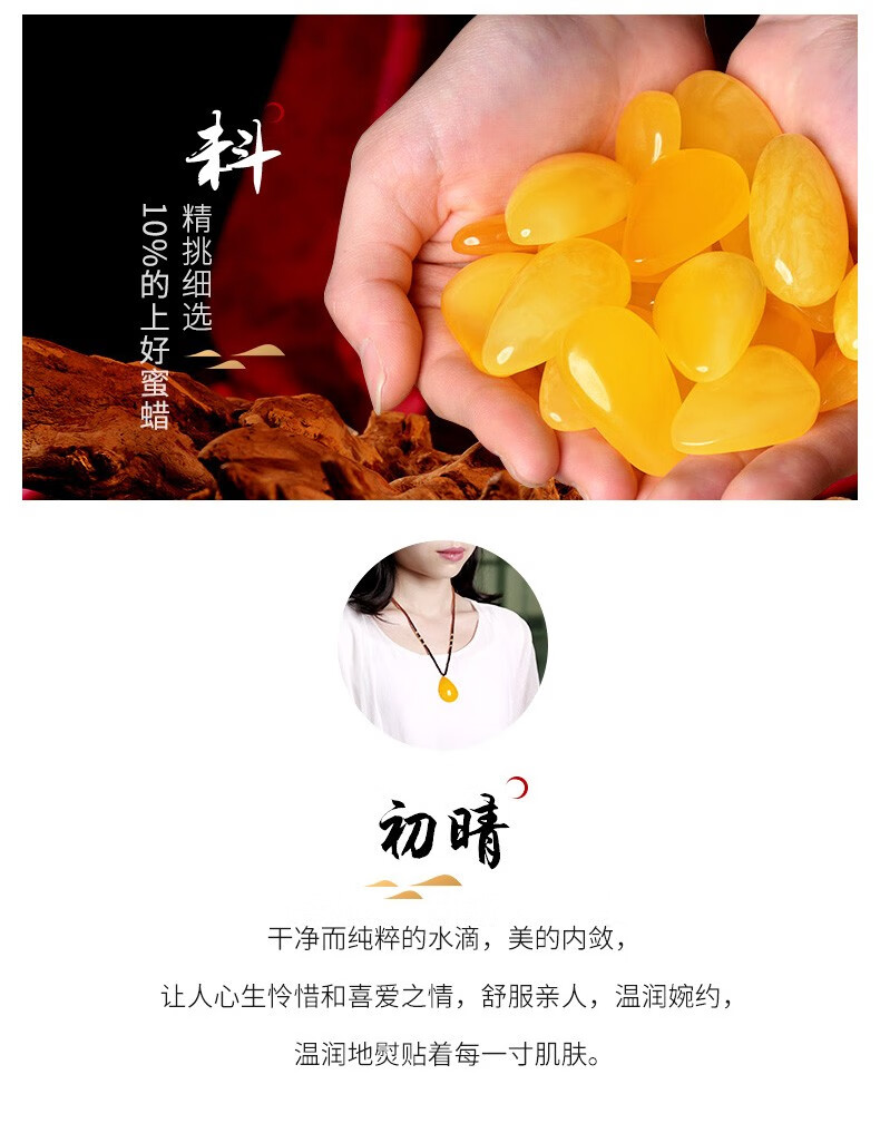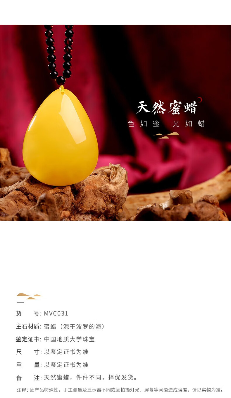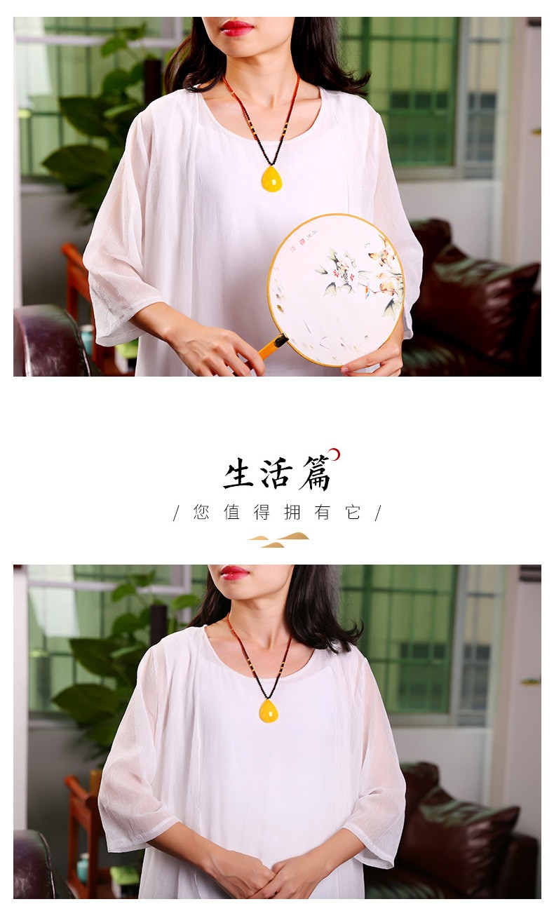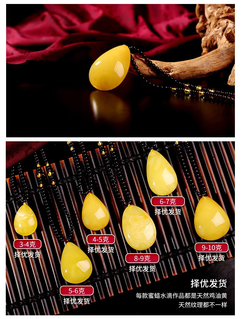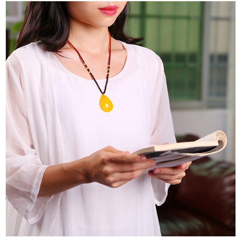 MUJUE beeswax pendant, amber chicken fat yellow water drop pendant for women, weighs about 8-9 grams, weighs about 8-9 grams, exquisite rainbow chain