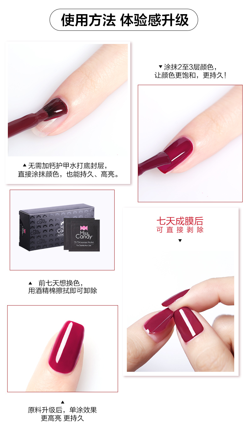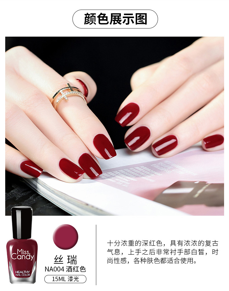 Miss Candy Whitening and Healthy 15ml Nail Polish No-bake, Quick-drying, Long-lasting Peelable Cherry Red Manicure Burgundy NA004