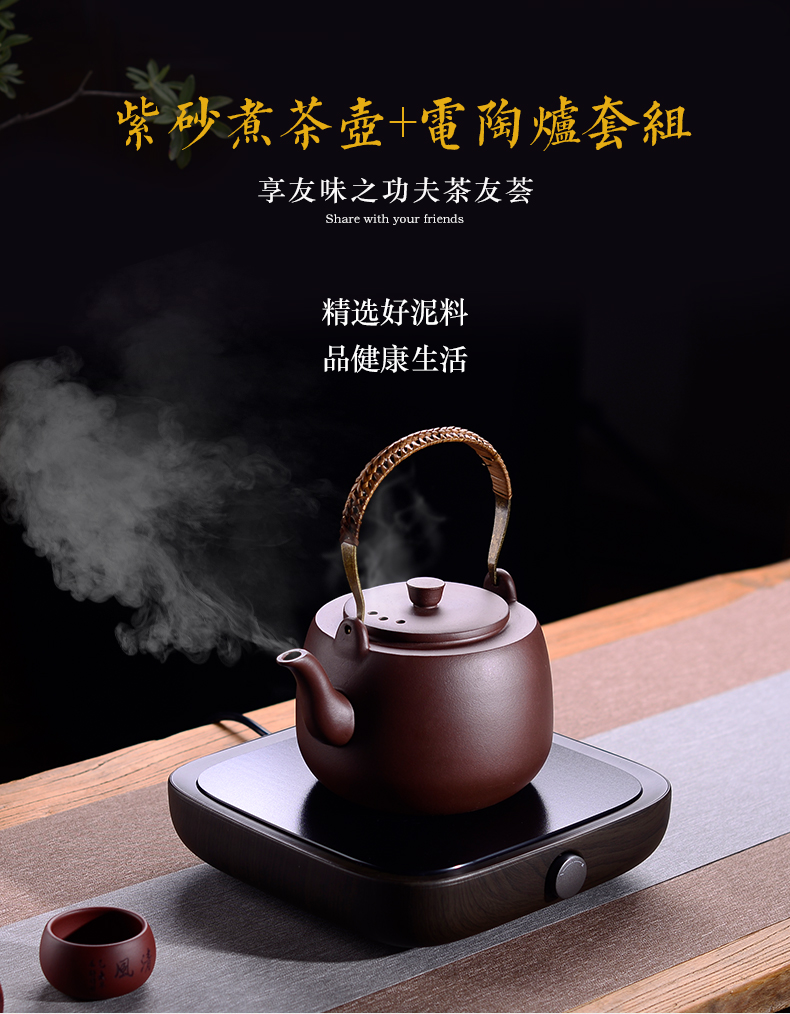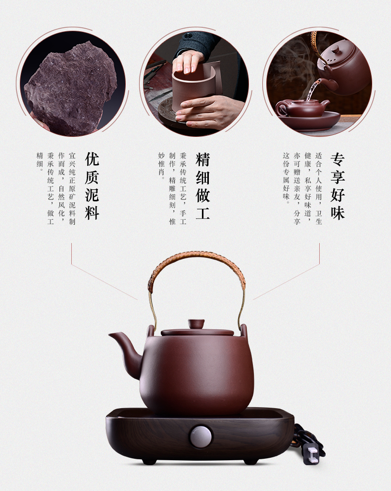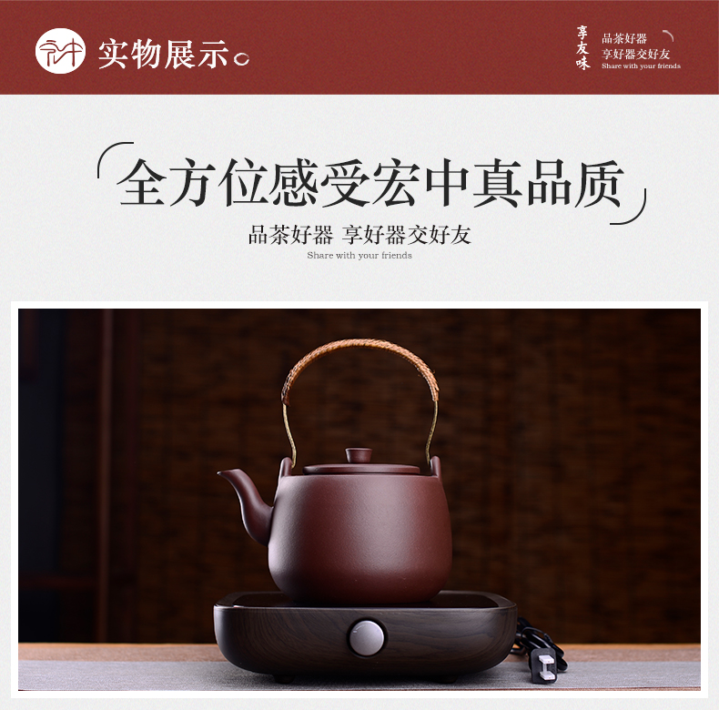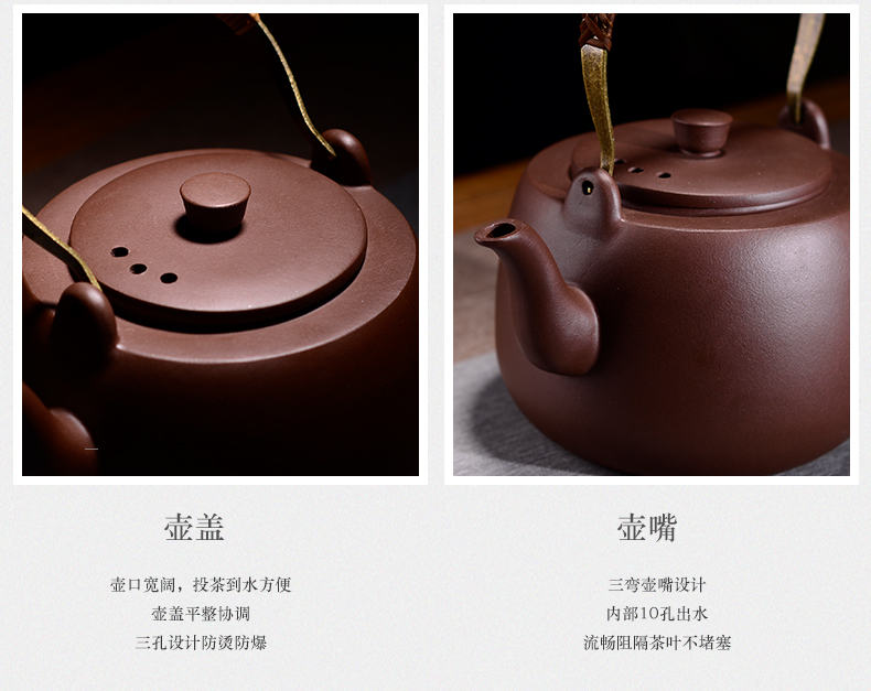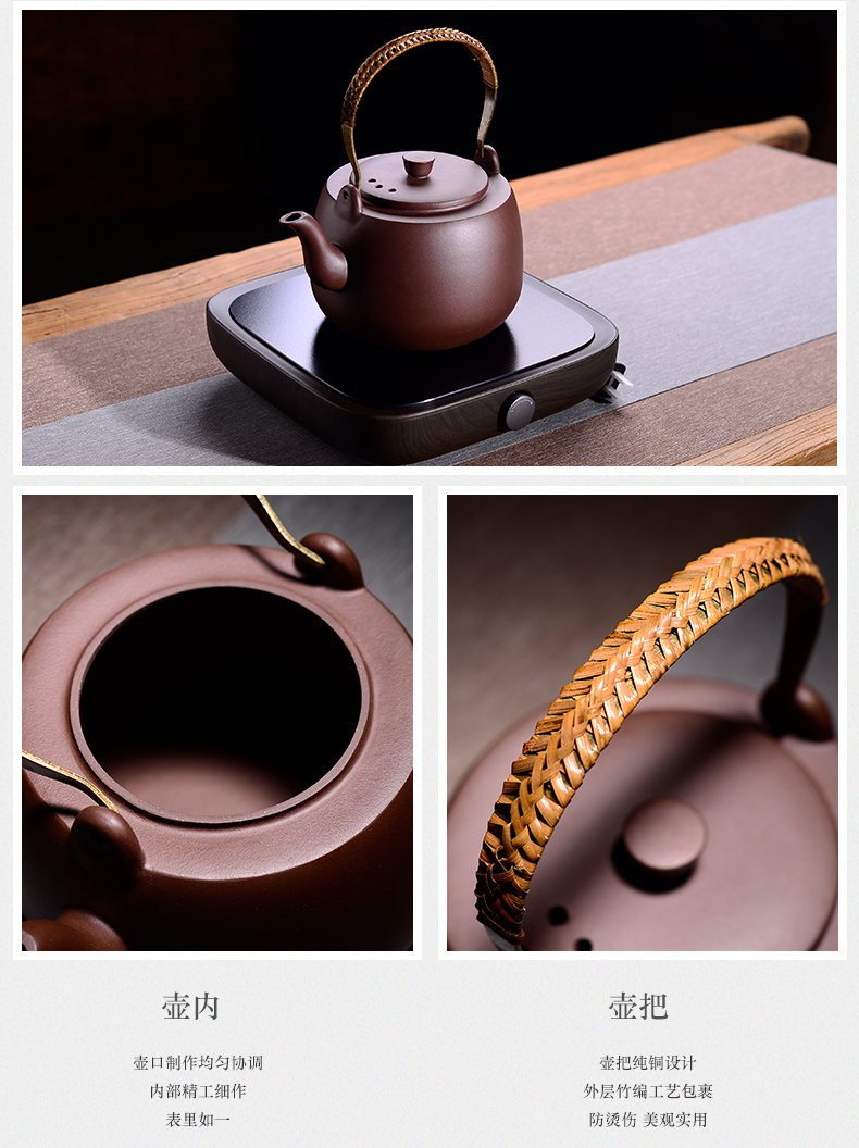 Hongzhong Yixing purple clay teapot purple clay teapot handmade set black tea kettle purple clay kettle 1400cc single pot without stove