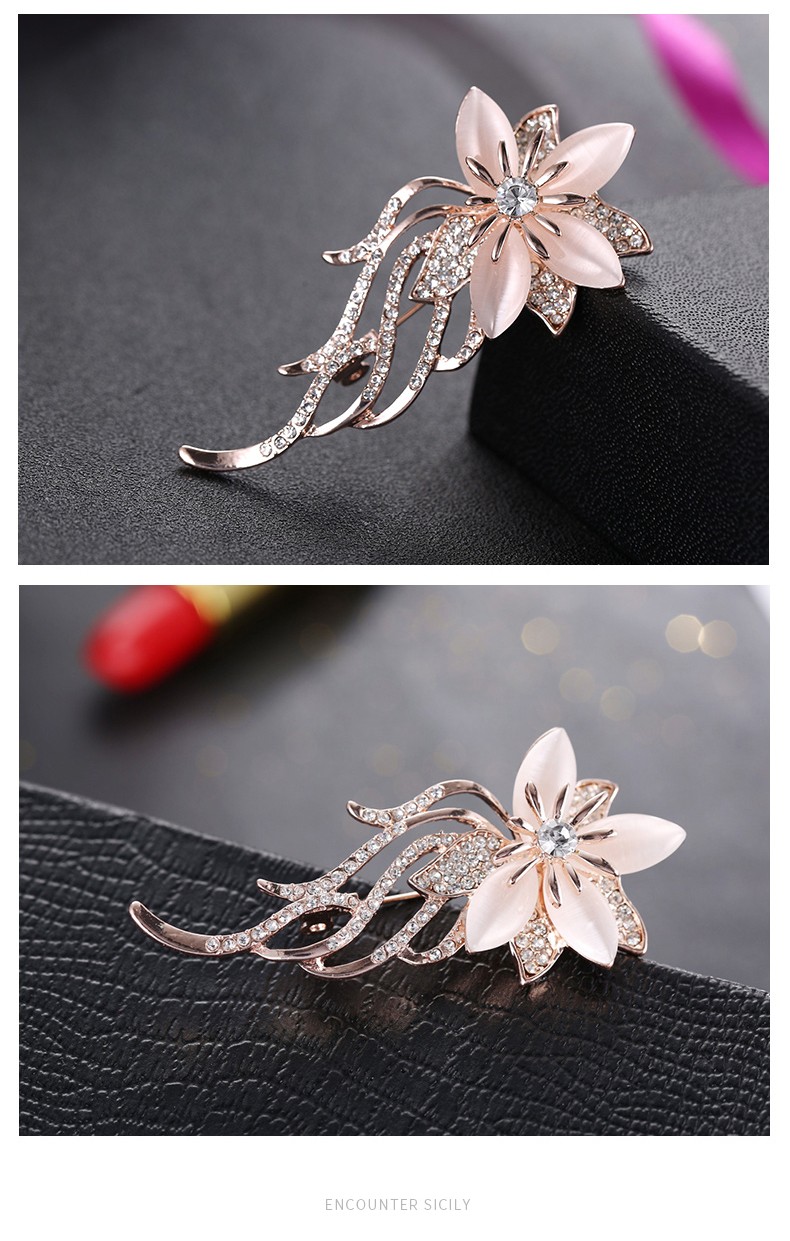 Idel's new jewelry Korean style fashion imitation cat's eye retro diamond brooch clothing decorative corsage creative pin gift colorful flower brooch XZ0062