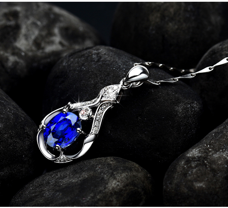 Lescreation Lisa Jewelry 1.45 Natural Tanzanite Diamond Pendant White 18K Gold Blue Gemstone South African Diamond Necklace Pendant Colored Treasure 1.45 Carat Tanzanite 5A