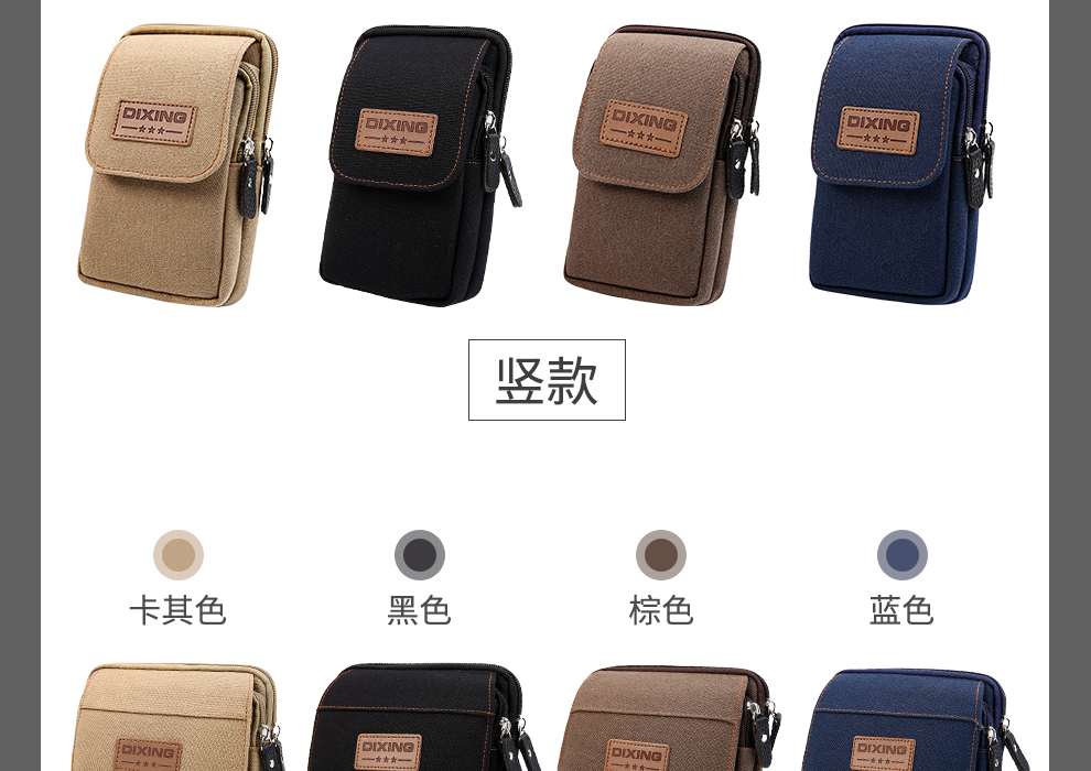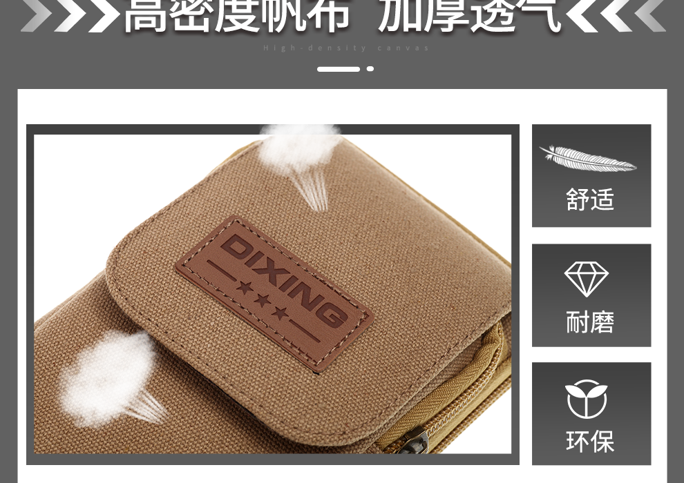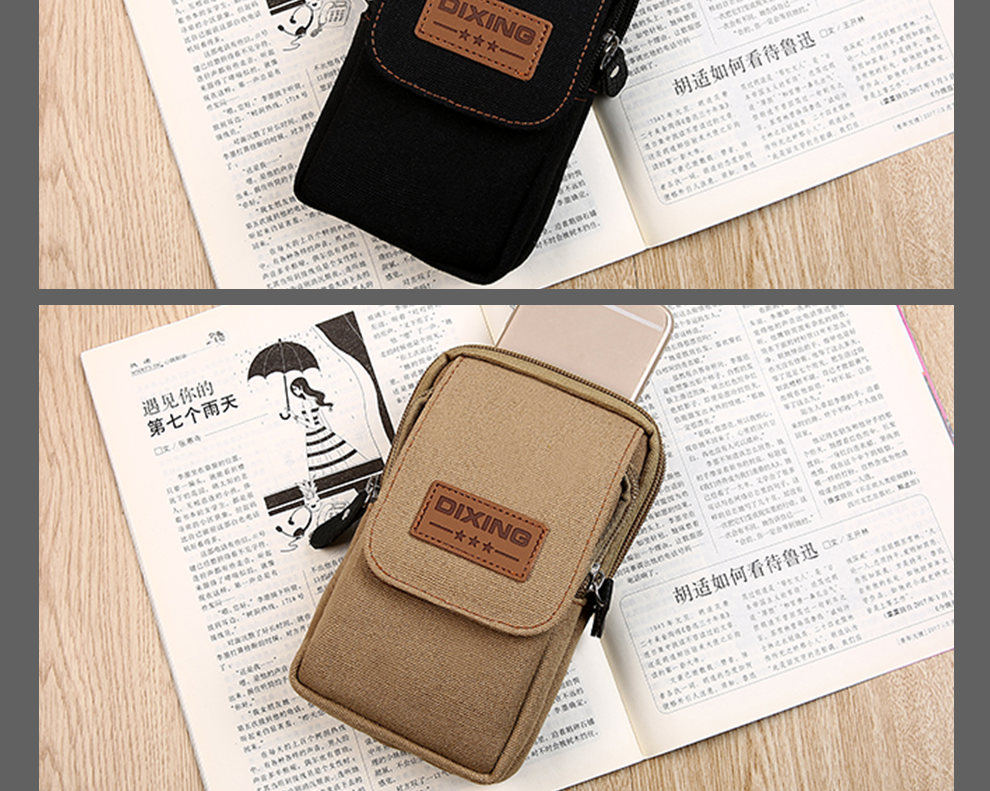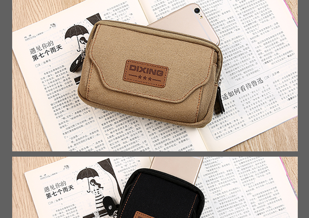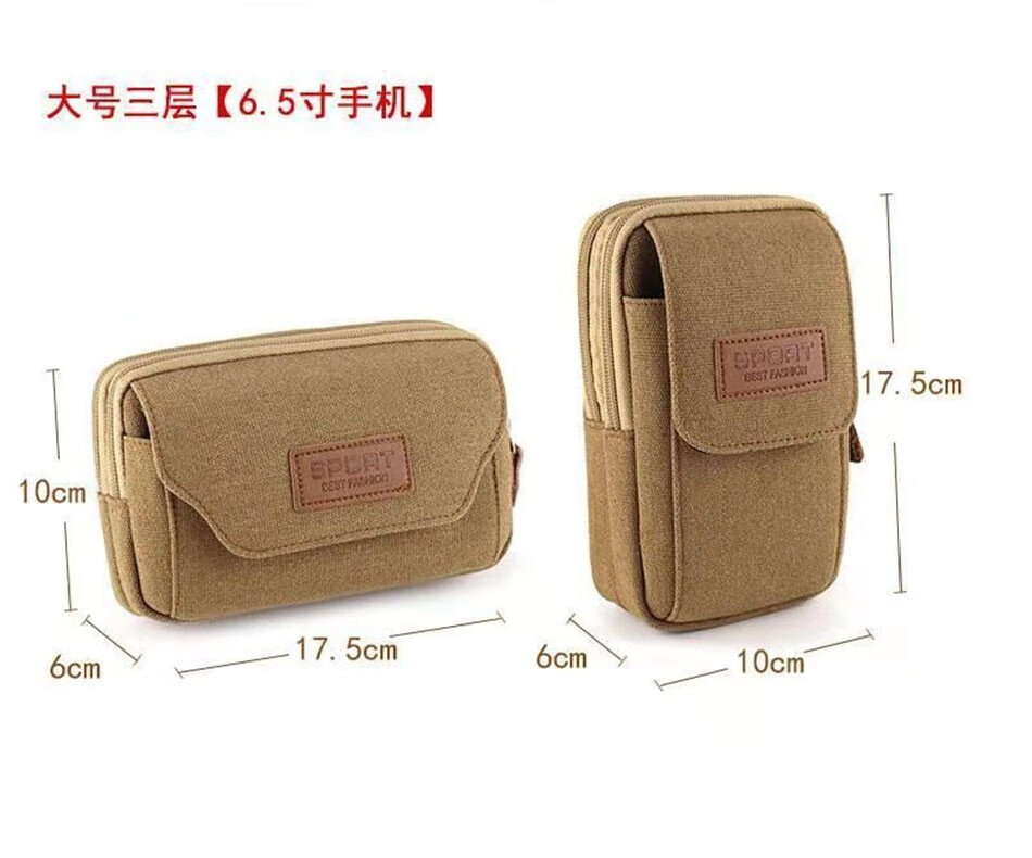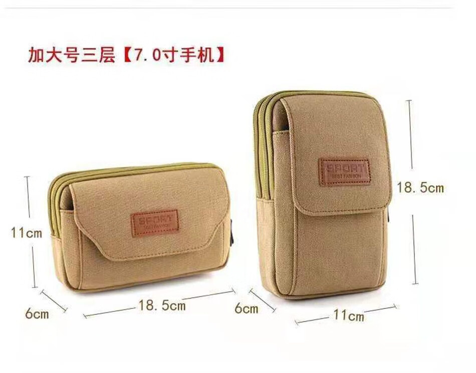 Dixing (DIXING) mobile phone waist bag men's outdoor wear belt multi-functional coin purse 7-inch sports mini travel canvas small bag C132 vertical three-layer khaki 7-inch