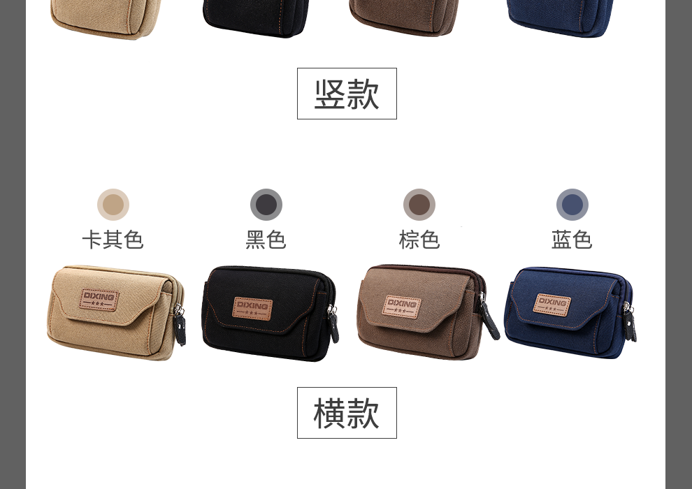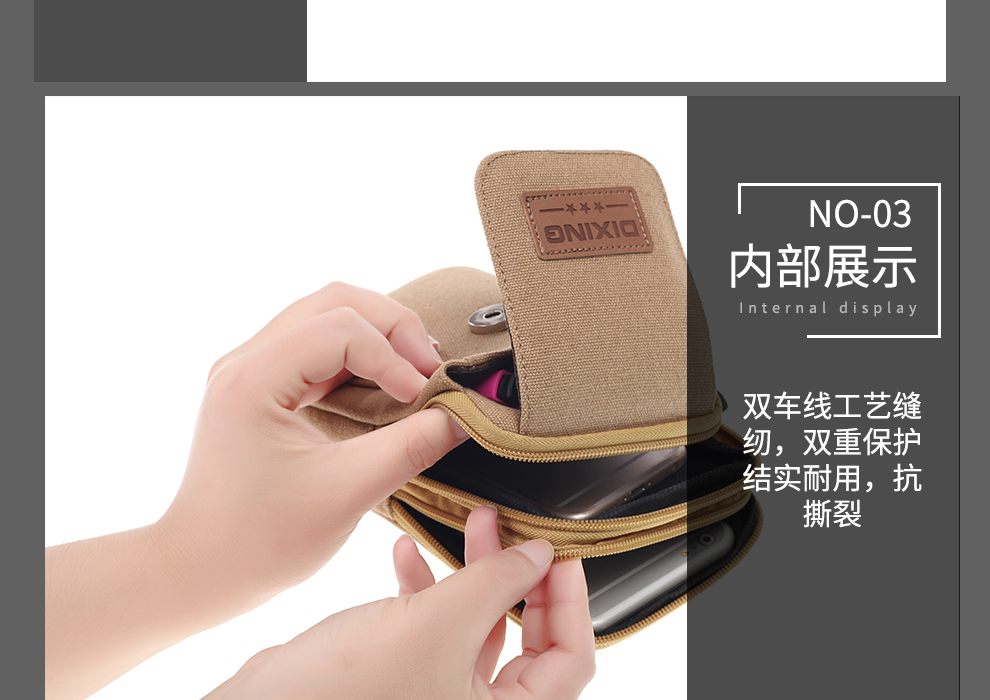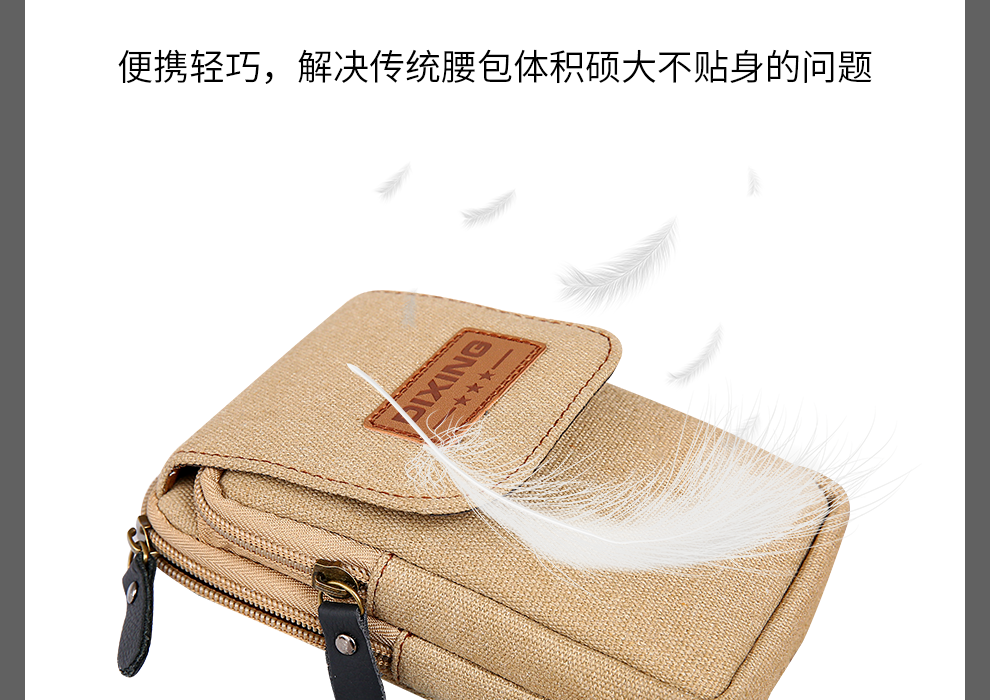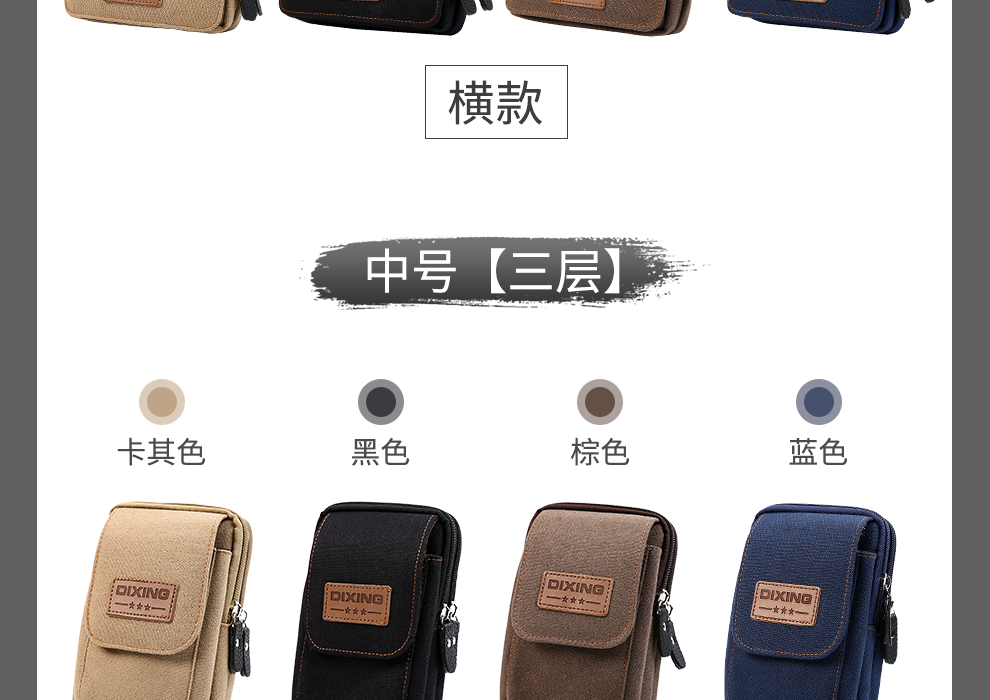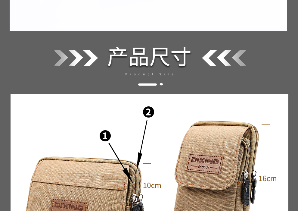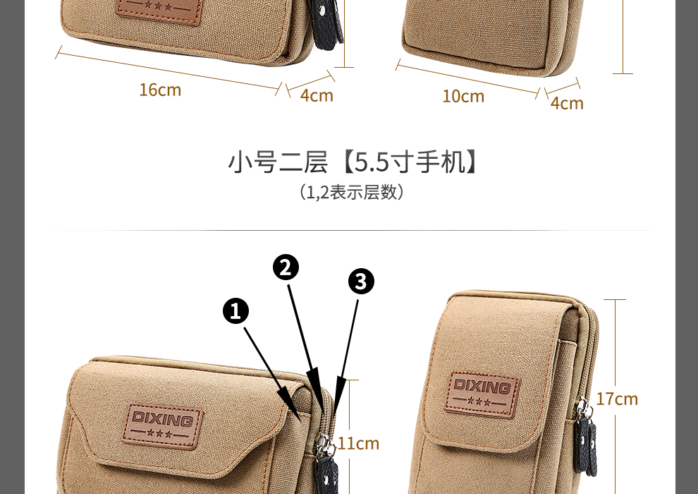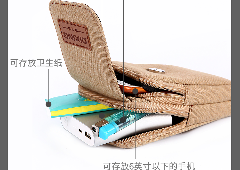 Dixing (DIXING) mobile phone waist bag men's outdoor wear belt multi-functional coin purse 7-inch sports mini travel canvas small bag C132 vertical three-layer khaki 7-inch