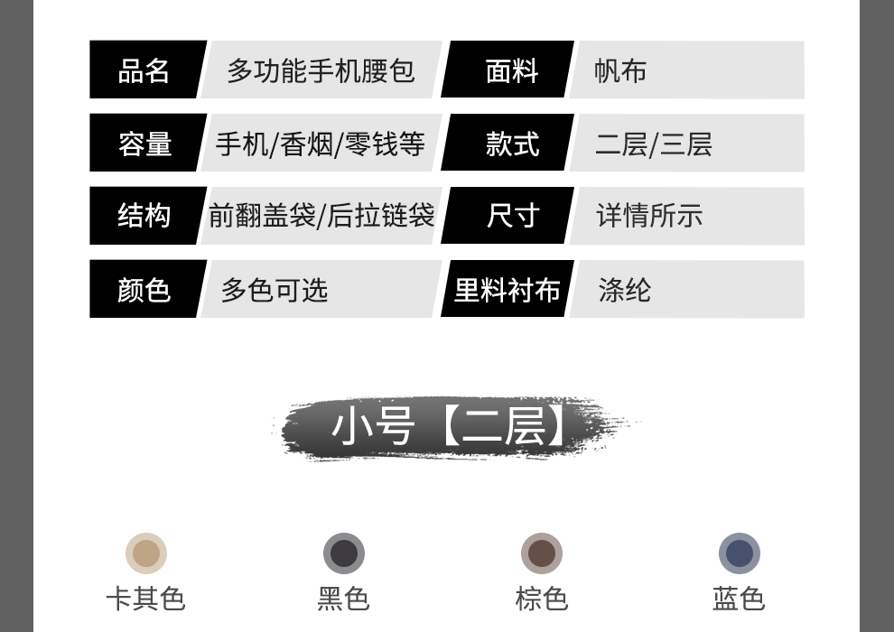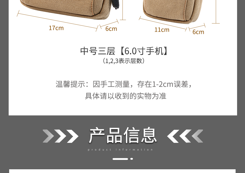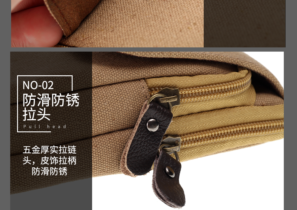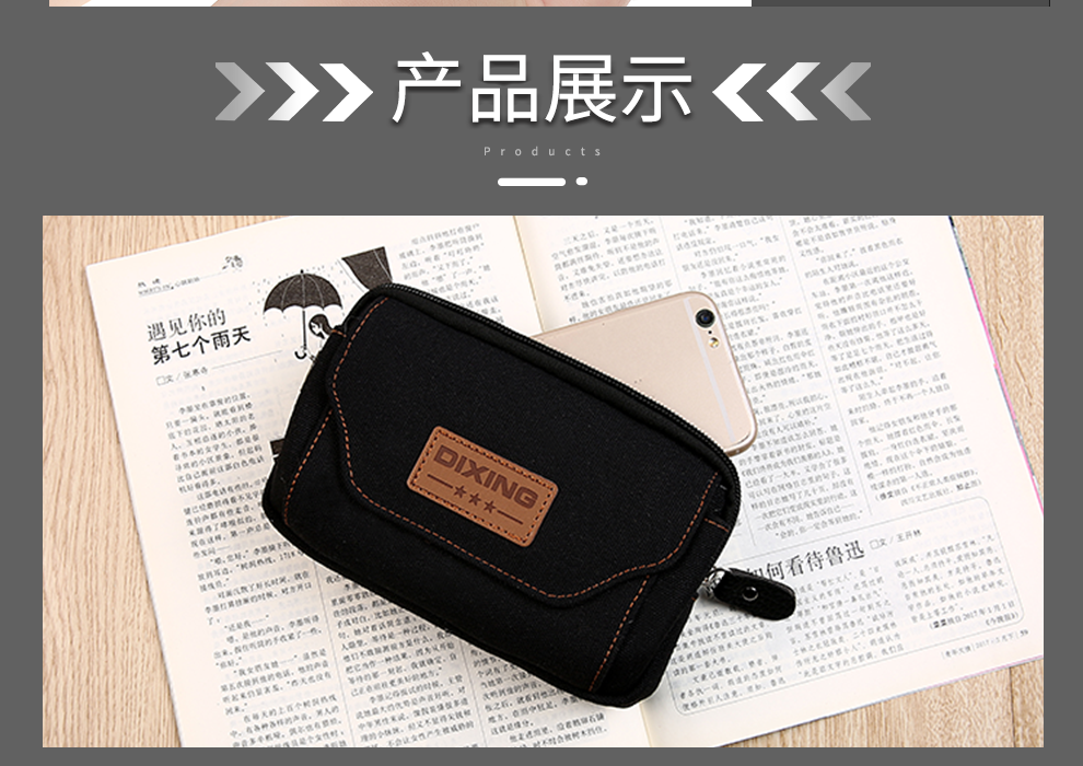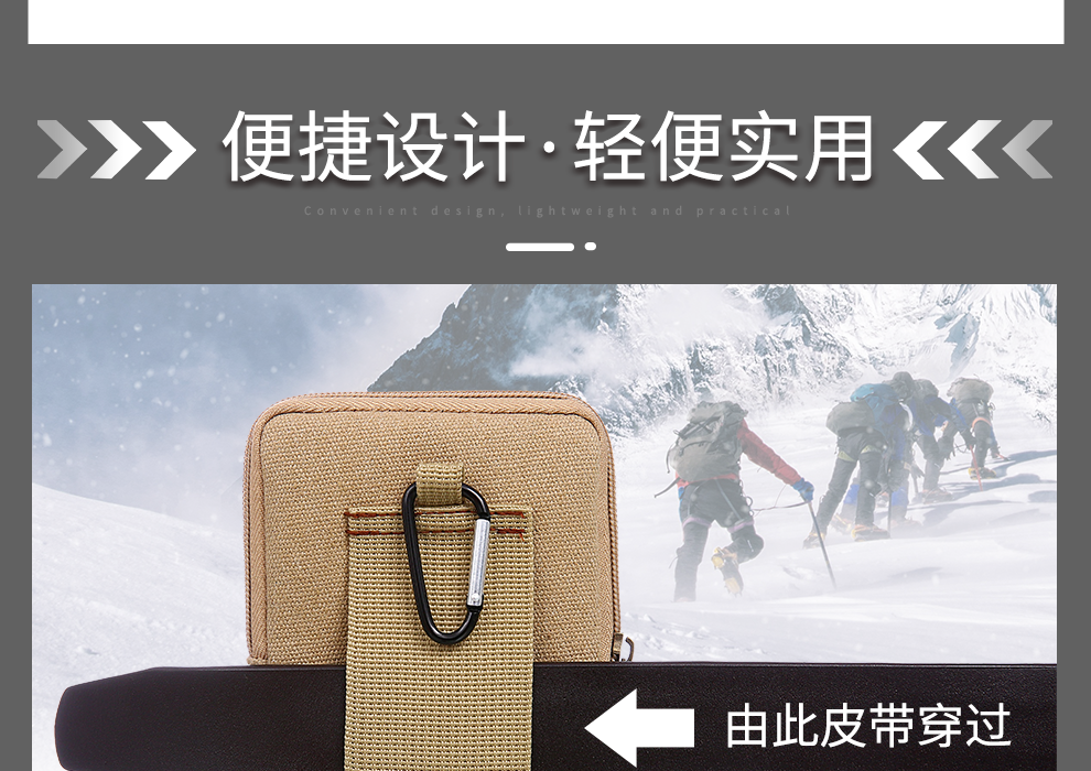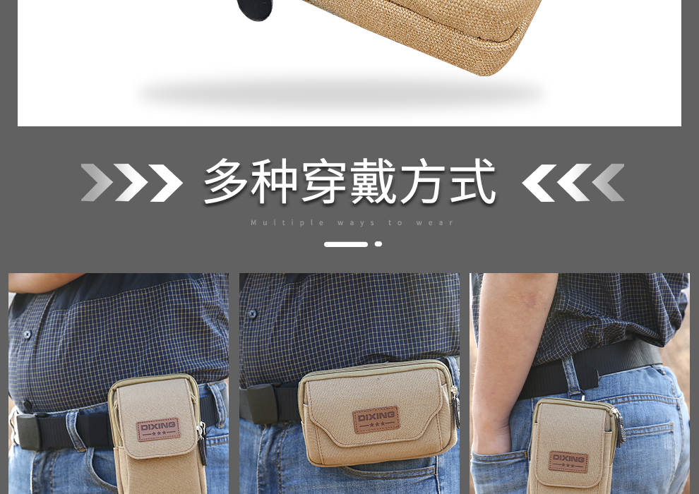Dixing (DIXING) mobile phone waist bag men's outdoor wear belt multi-functional coin purse 7-inch sports mini travel canvas small bag C132 vertical three-layer khaki 7-inch