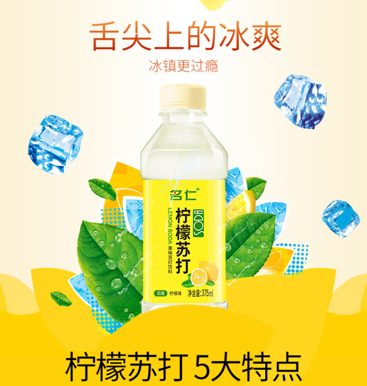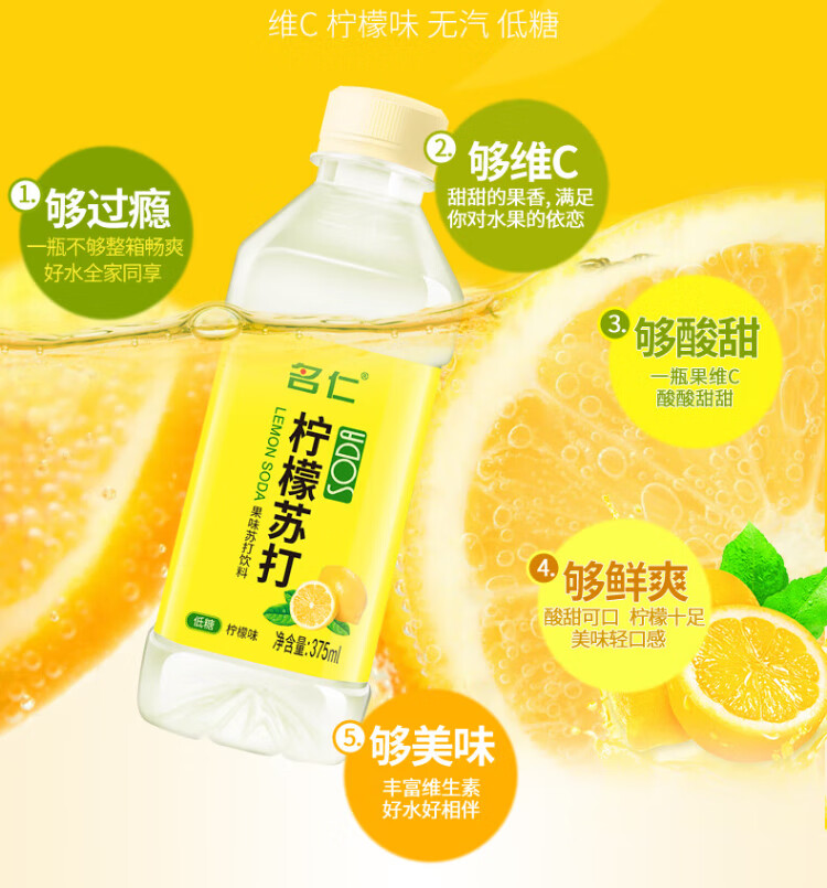 Mingren Lemon Flavored Soda Water Fruity Vitamin C Drink 375ml*24 Bottles Full Box