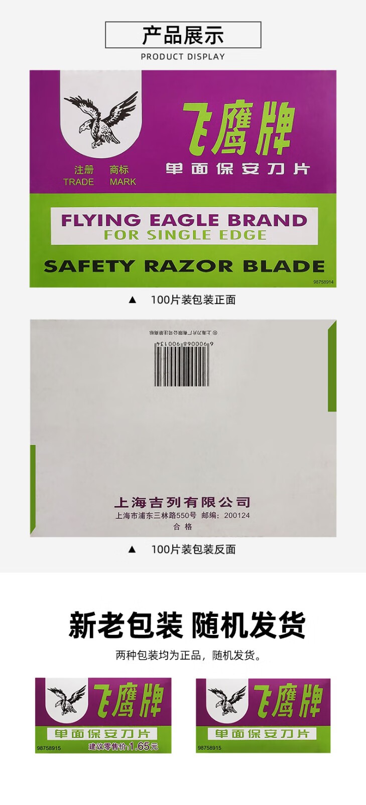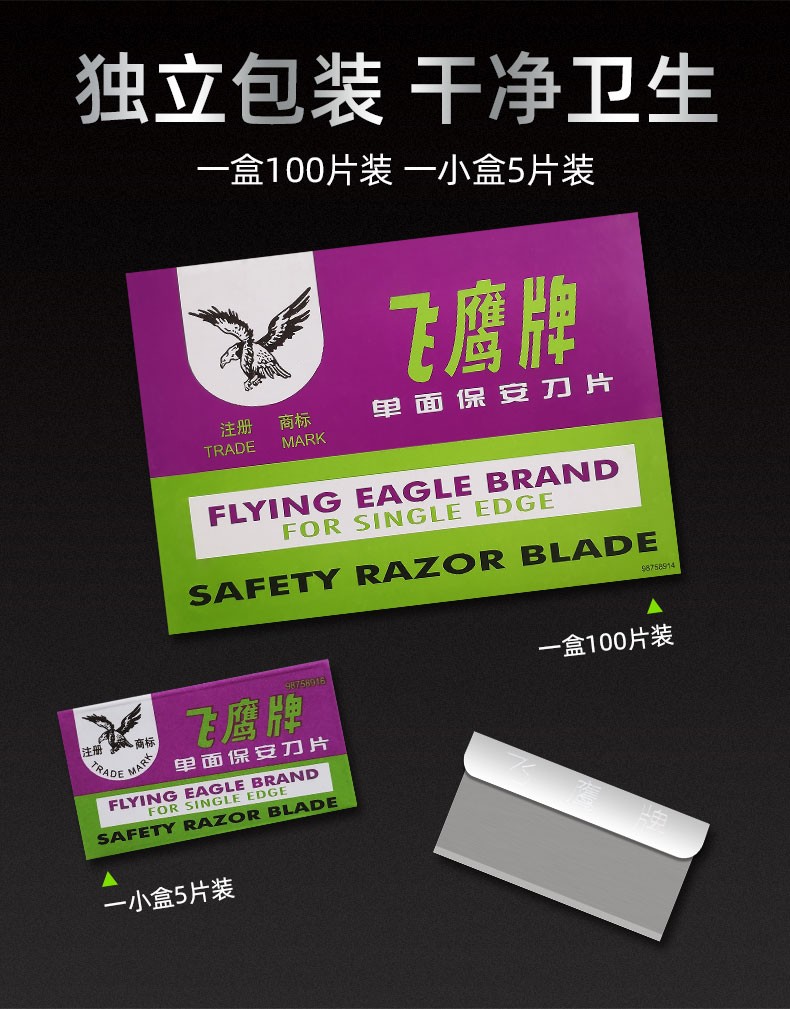 Gillette Gillette Flying Eagle portable single-sided blade Shanghai Flying Eagle blade small blade 50 pieces (10 small boxes in total)