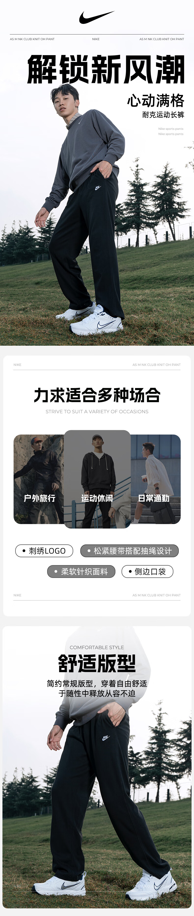 NIKE Men's Pants 2025 Autumn and Winter New Outdoor Hiking Warm Sports Pants Casual Running Loose Knitted Trousers Hot Sale/Gray Knitted Thin/Straight/Photo Refund 5M (170/76A)