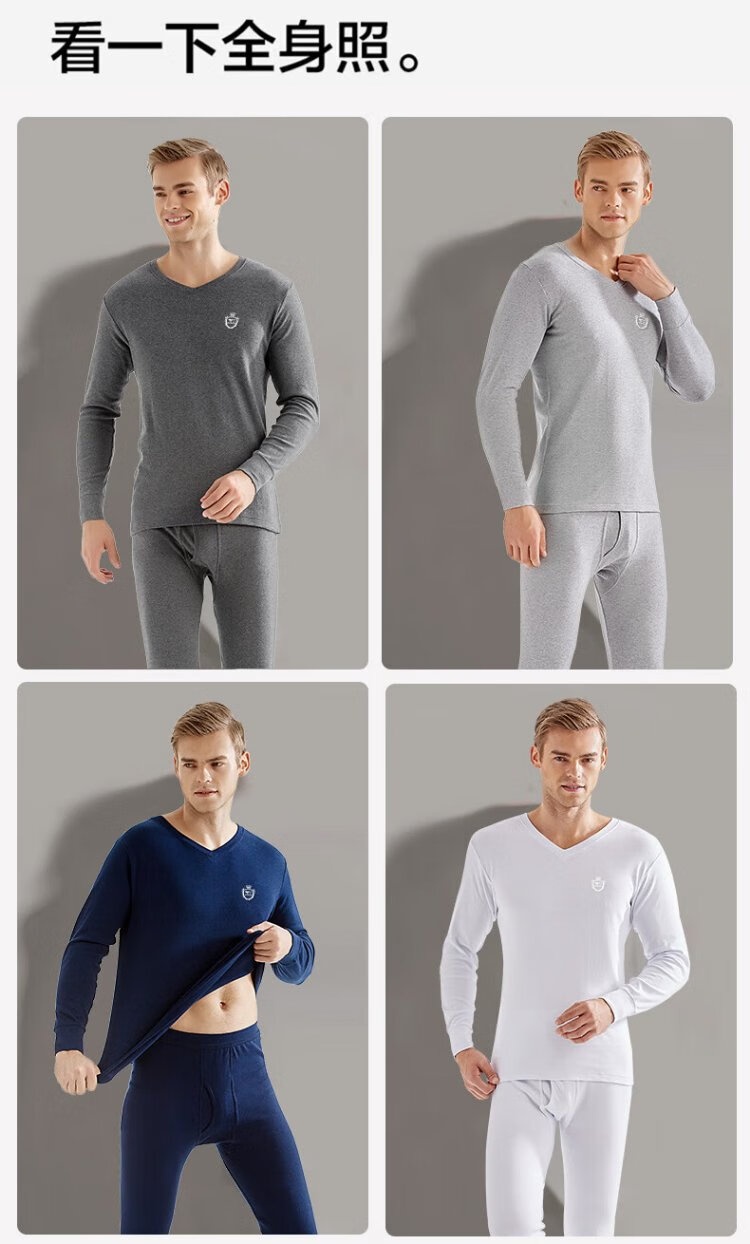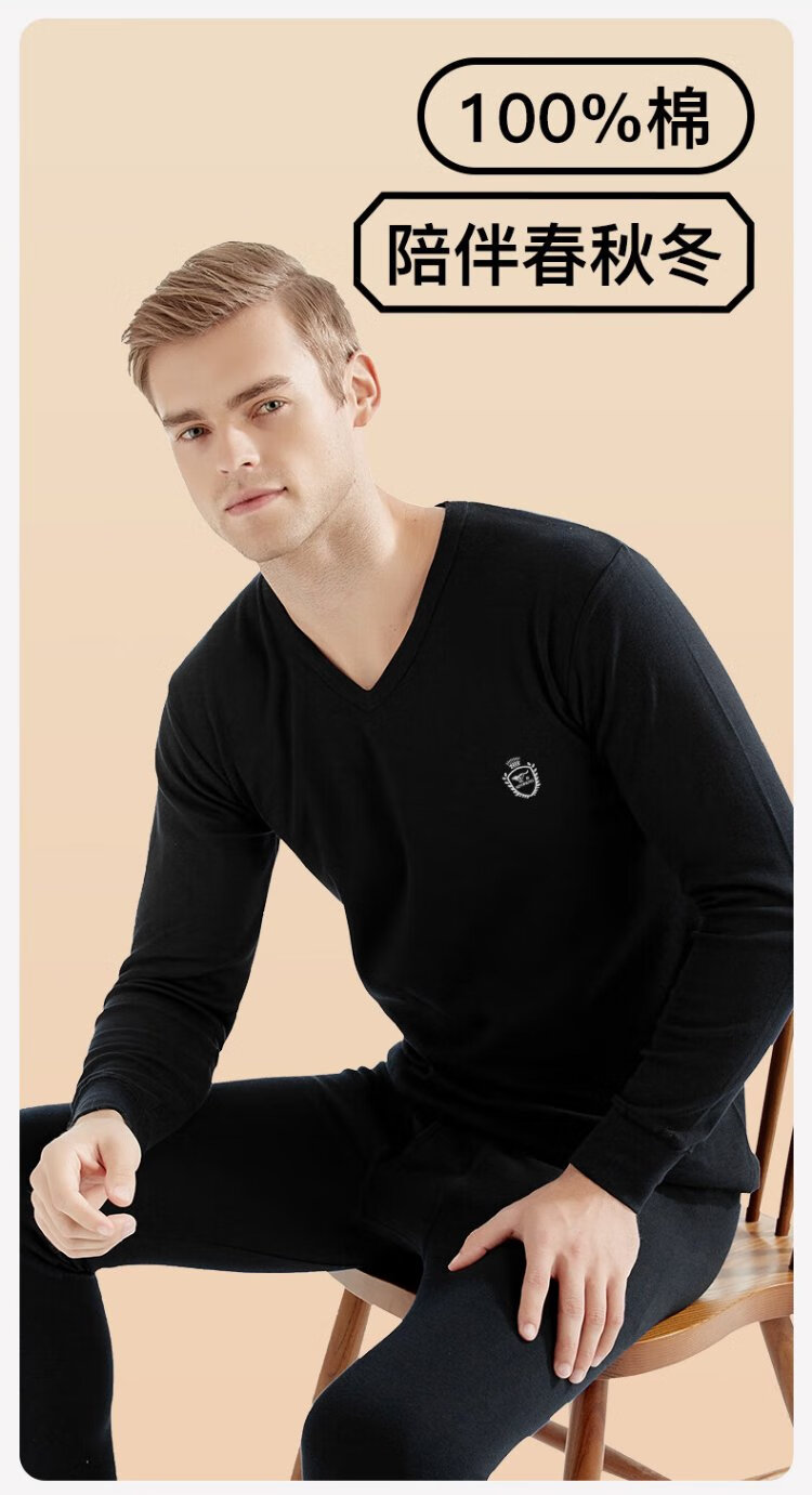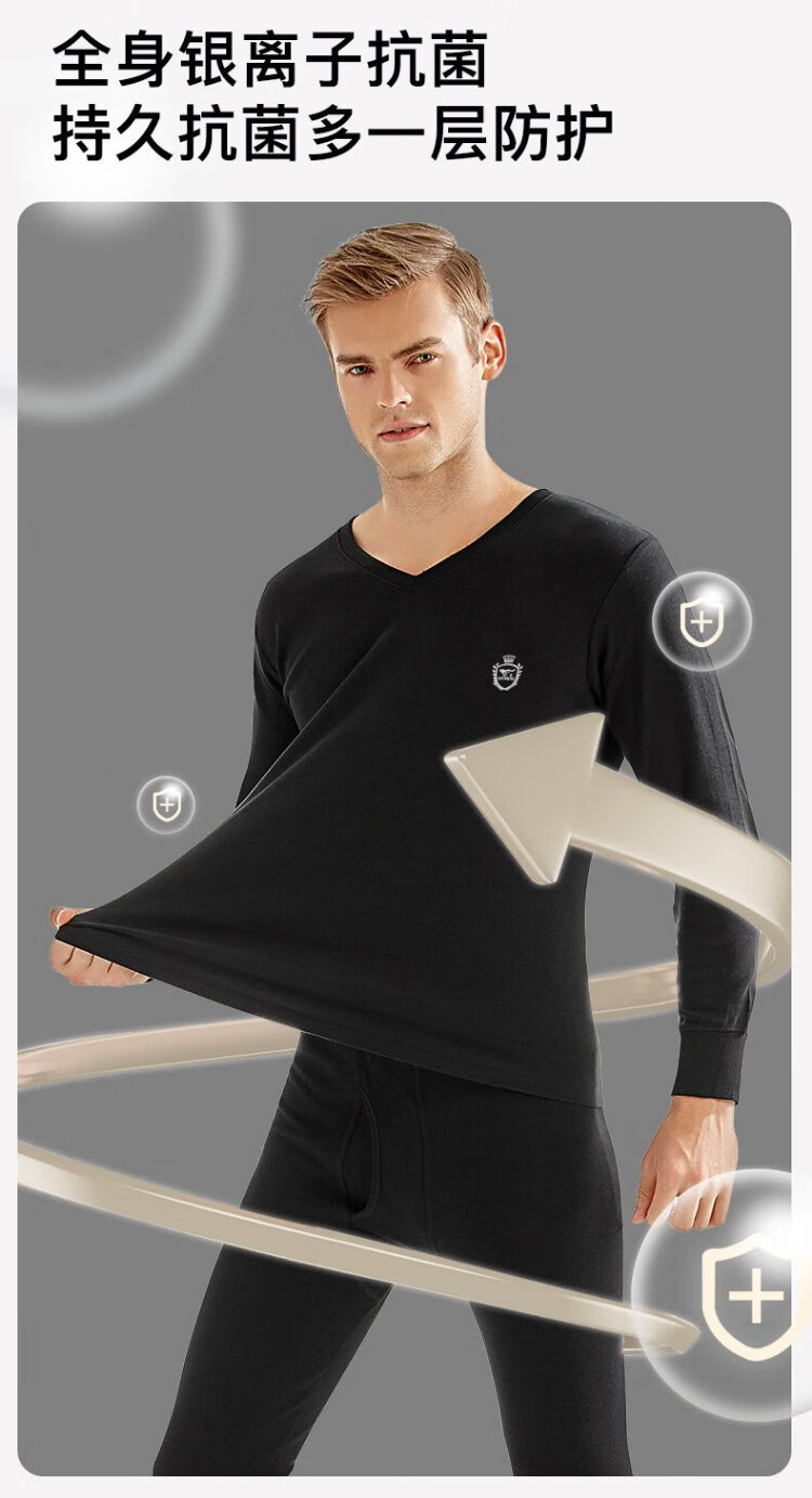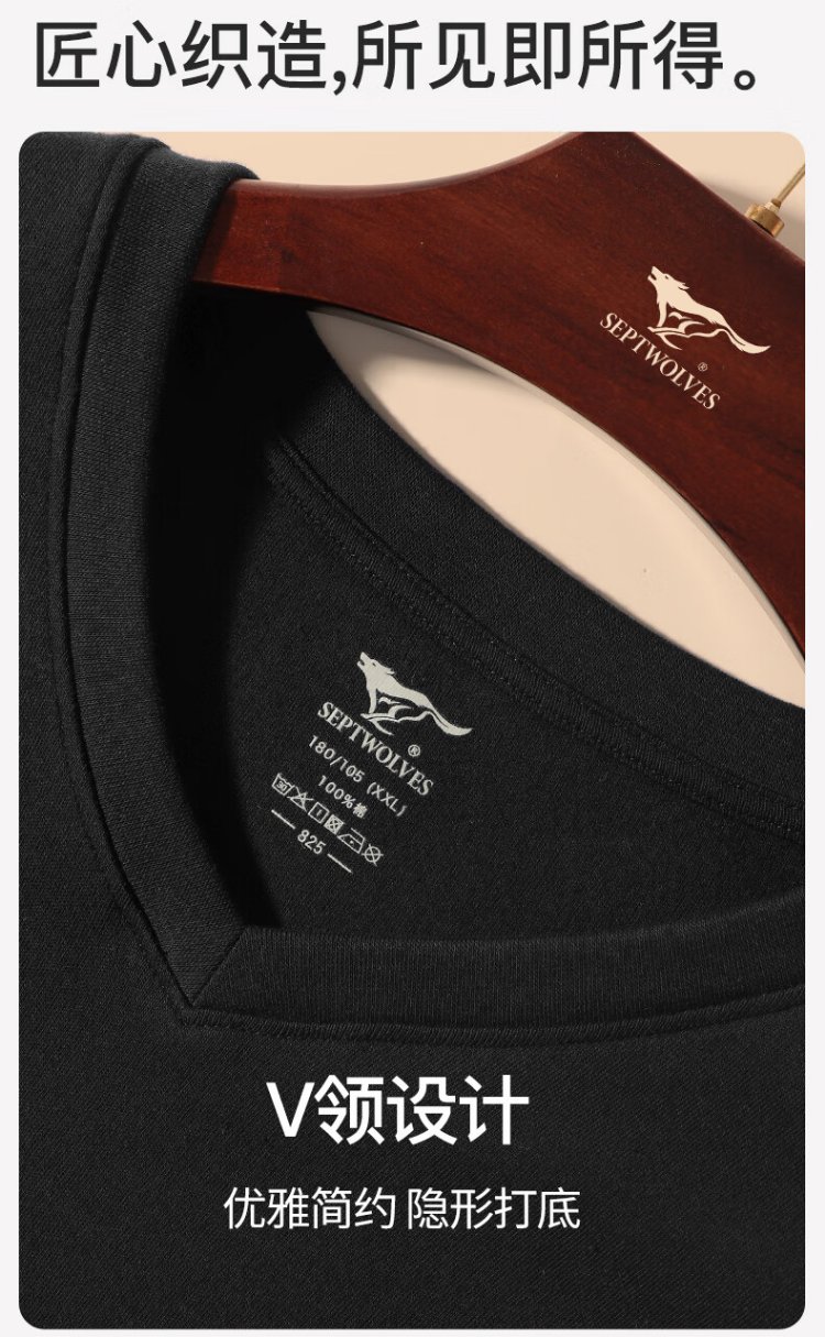 Septwolves Antibacterial Autumn Clothes and Autumn Pants Men's Pure Cotton Autumn and Winter Cotton Thermal Underwear V-neck Cotton Sweater and Trousers Set