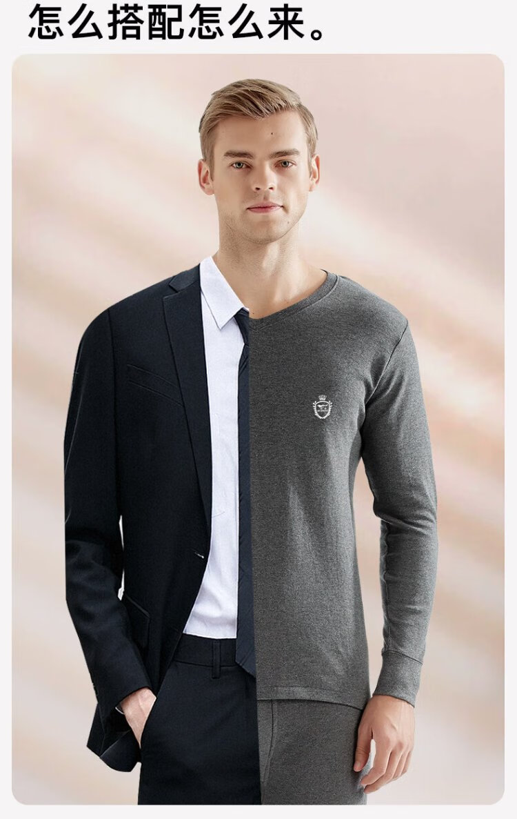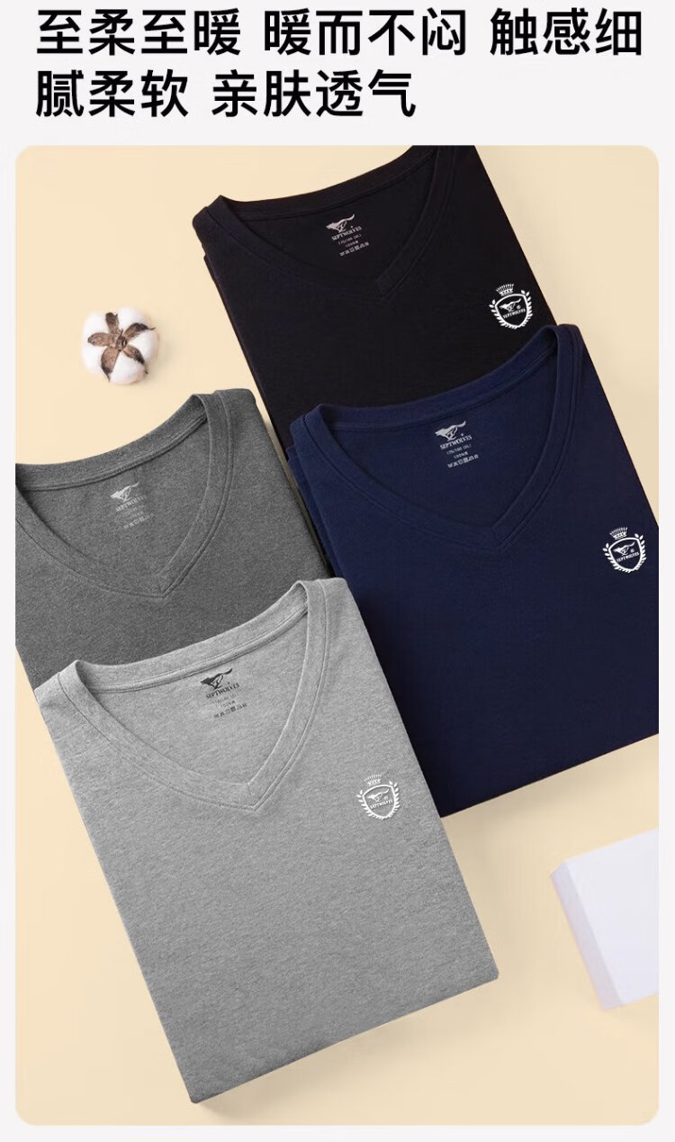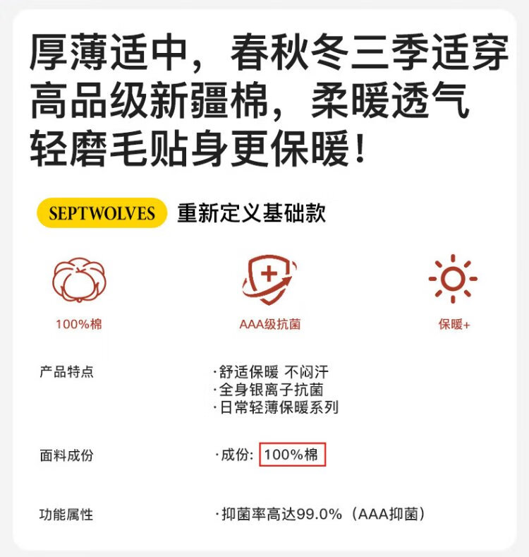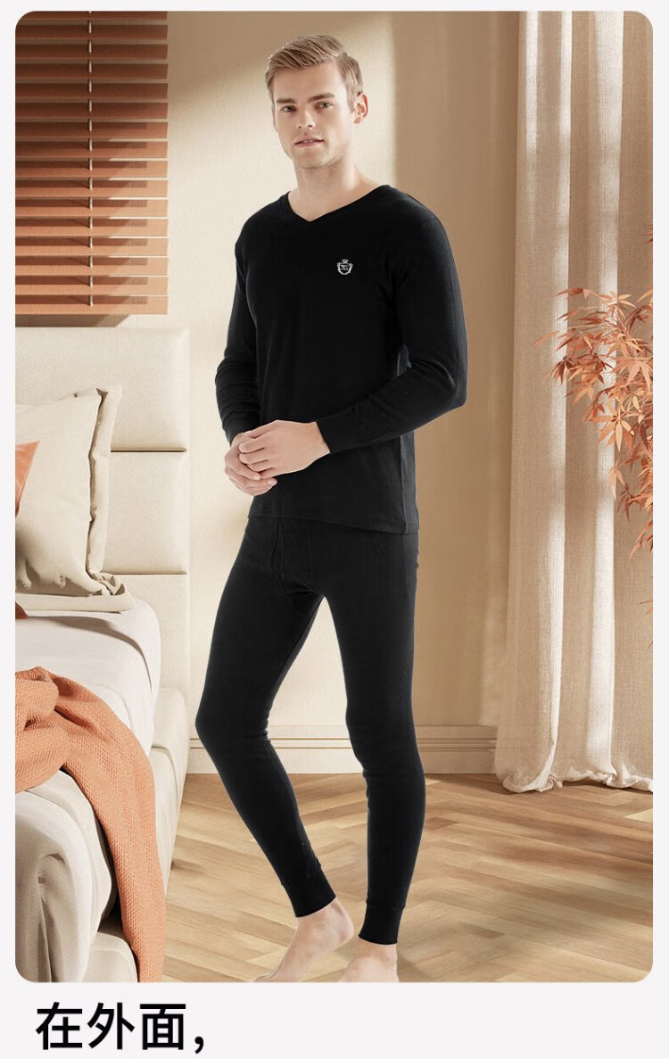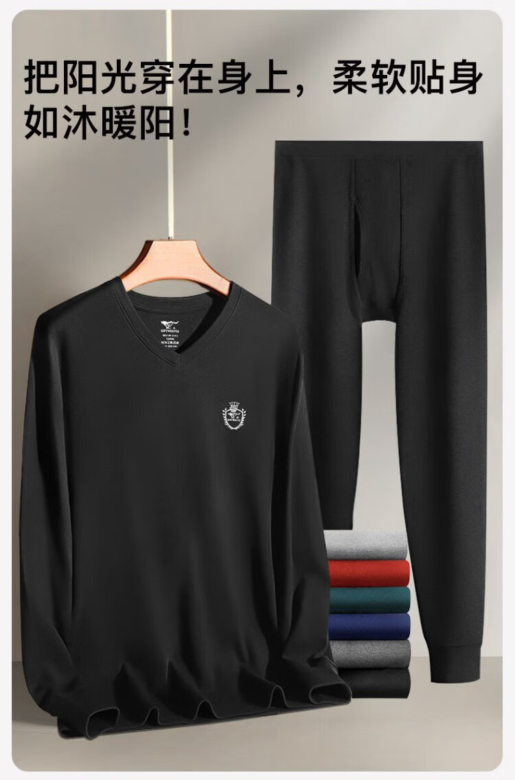 Septwolves Antibacterial Autumn Clothes and Autumn Pants Men's Pure Cotton Autumn and Winter Cotton Thermal Underwear V-neck Cotton Sweater and Trousers Set
