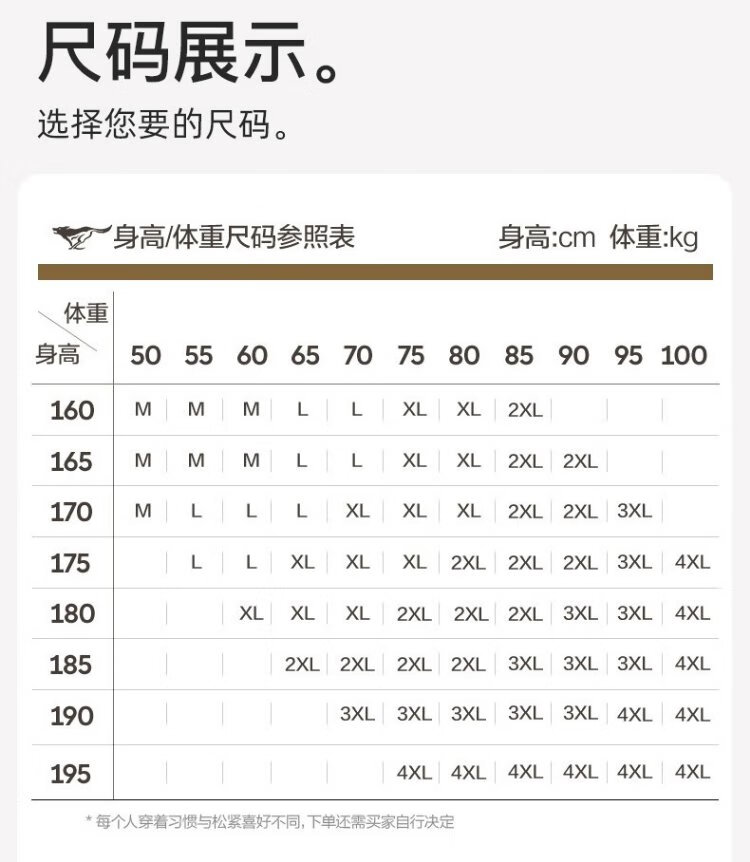 China (cm) 165 / 88-90 170 / 96-98 175 / 108-110 180 / 118-122 185 / 126-130