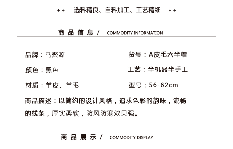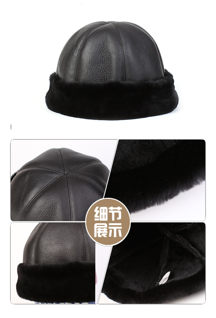 Ma Juyuan Men's Winter Landlord Hat Middle-aged and Elderly Fur Hat New Sheepskin Plus Velvet A Fur Six and a Half Hat A Fur Six and a Half Black 61cm