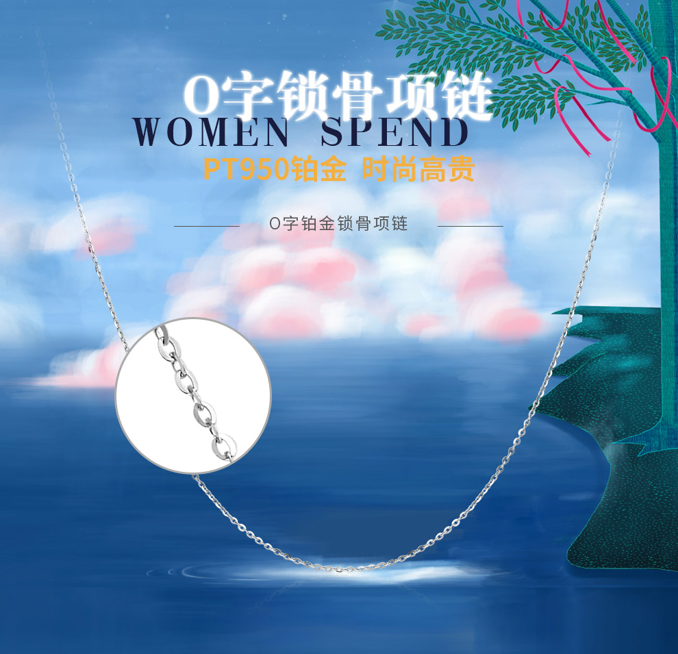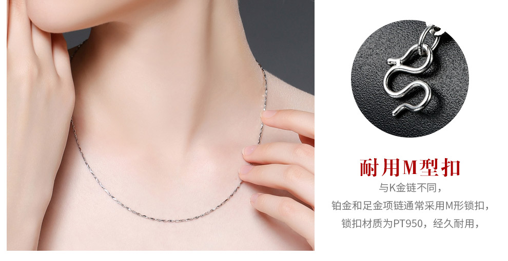 I love diamond network PT950 platinum necklace women's platinum necklace clavicle chain O-shaped chain gift, about 42cm 2.4-2.6g