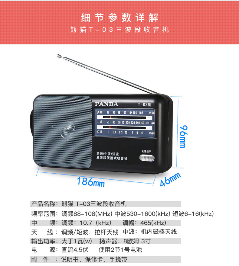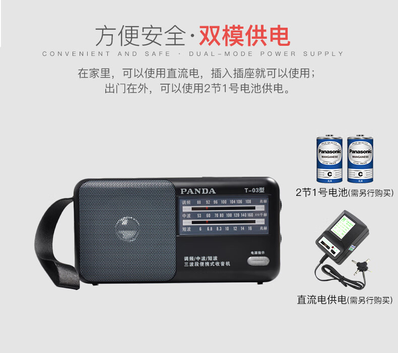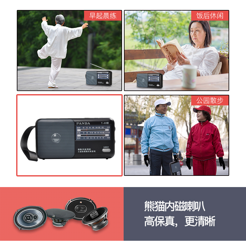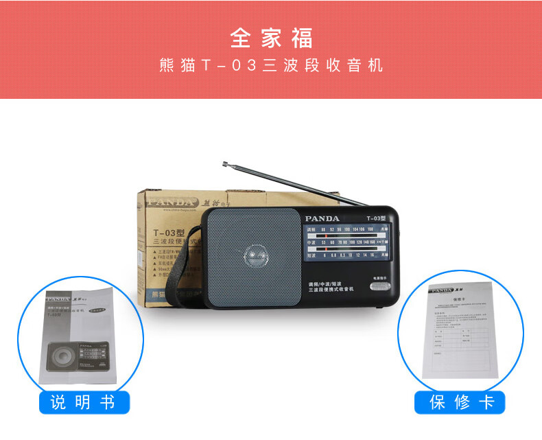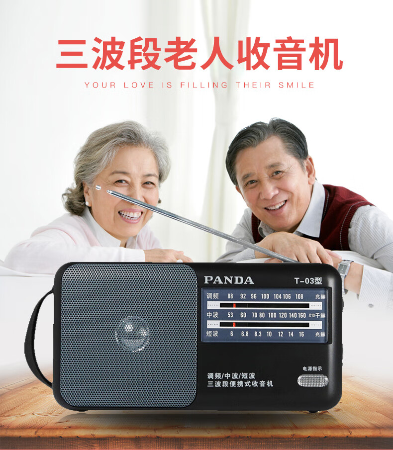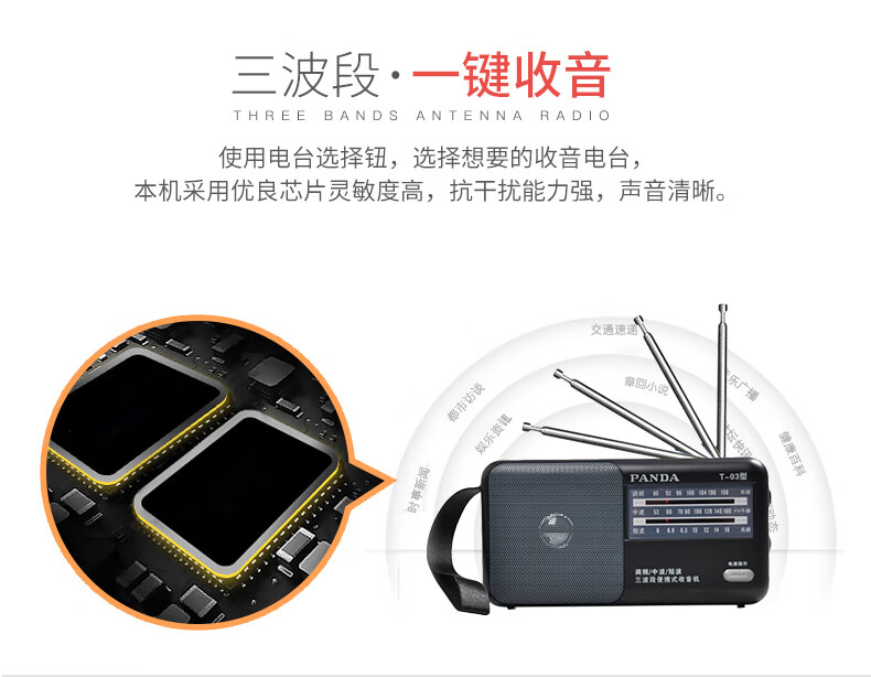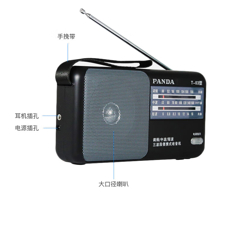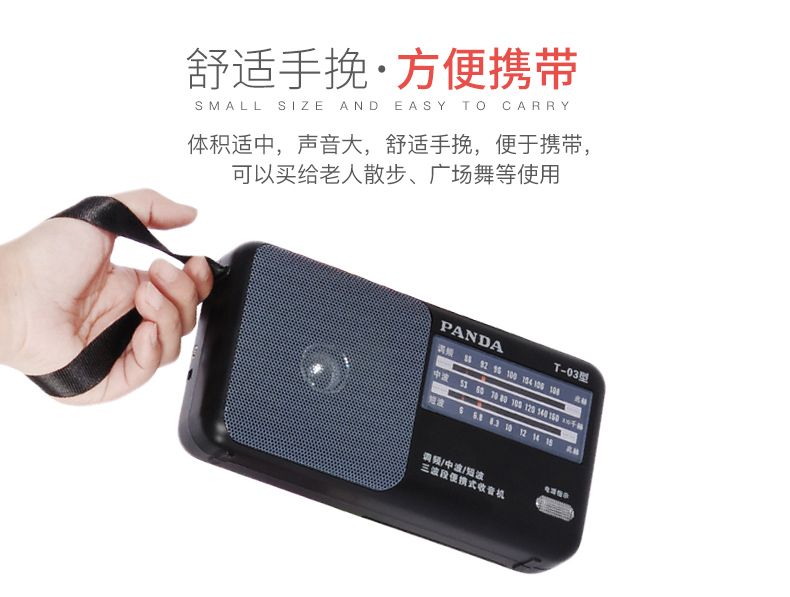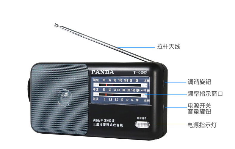 Panda (PANDA) T-03 multifunctional full-band radio for the elderly portable mini broadcast semiconductor player desktop retro small walkman black standard + power adapter radio