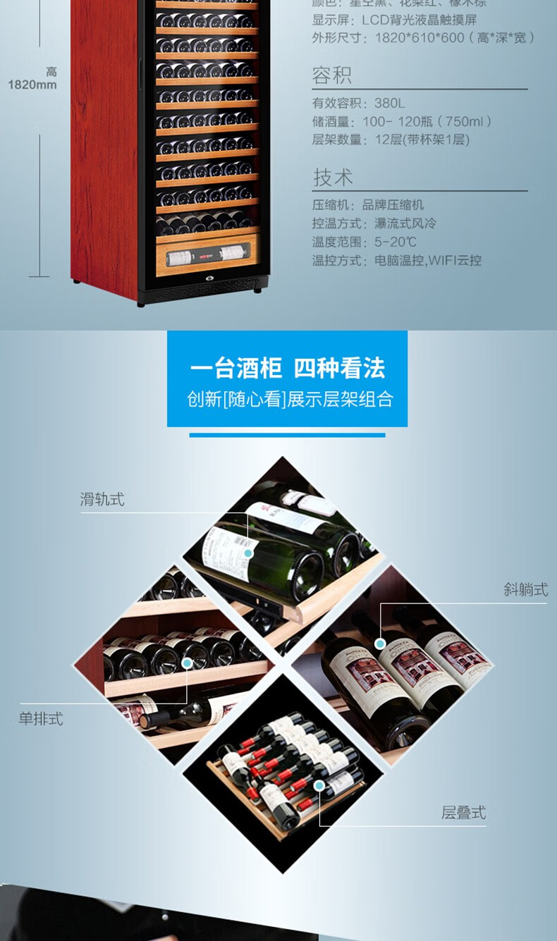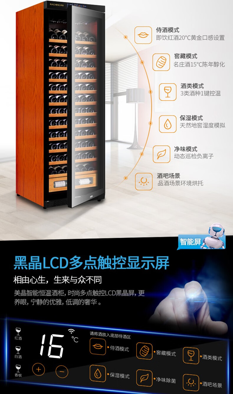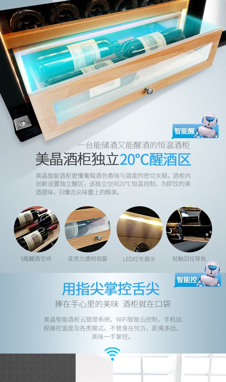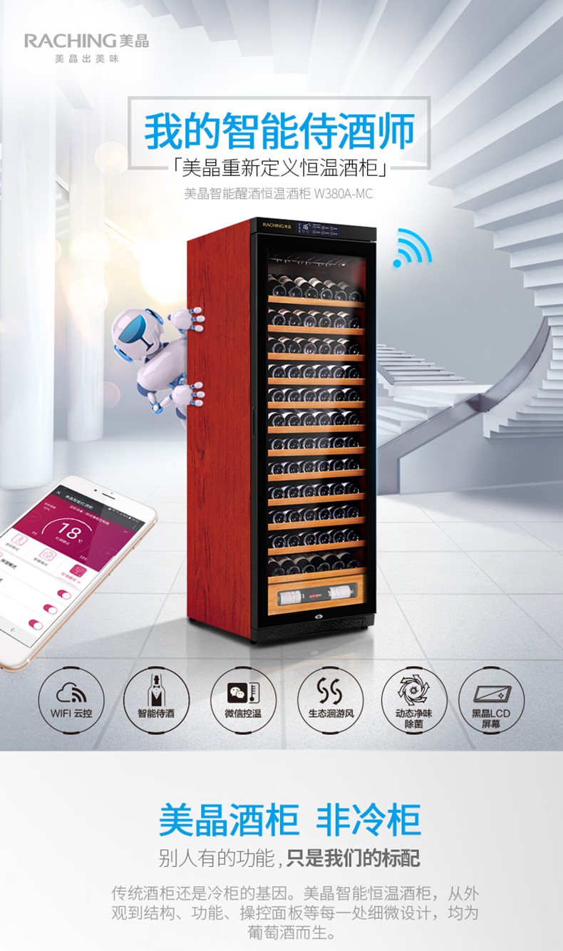 Meijing(raching) W380A-MC Constant Temperature Solid Wood WIFI Smart Air-cooled Red Wine Cabinet Solid Wood Wine Cabinet with Cup Rack Starry Sky Black
