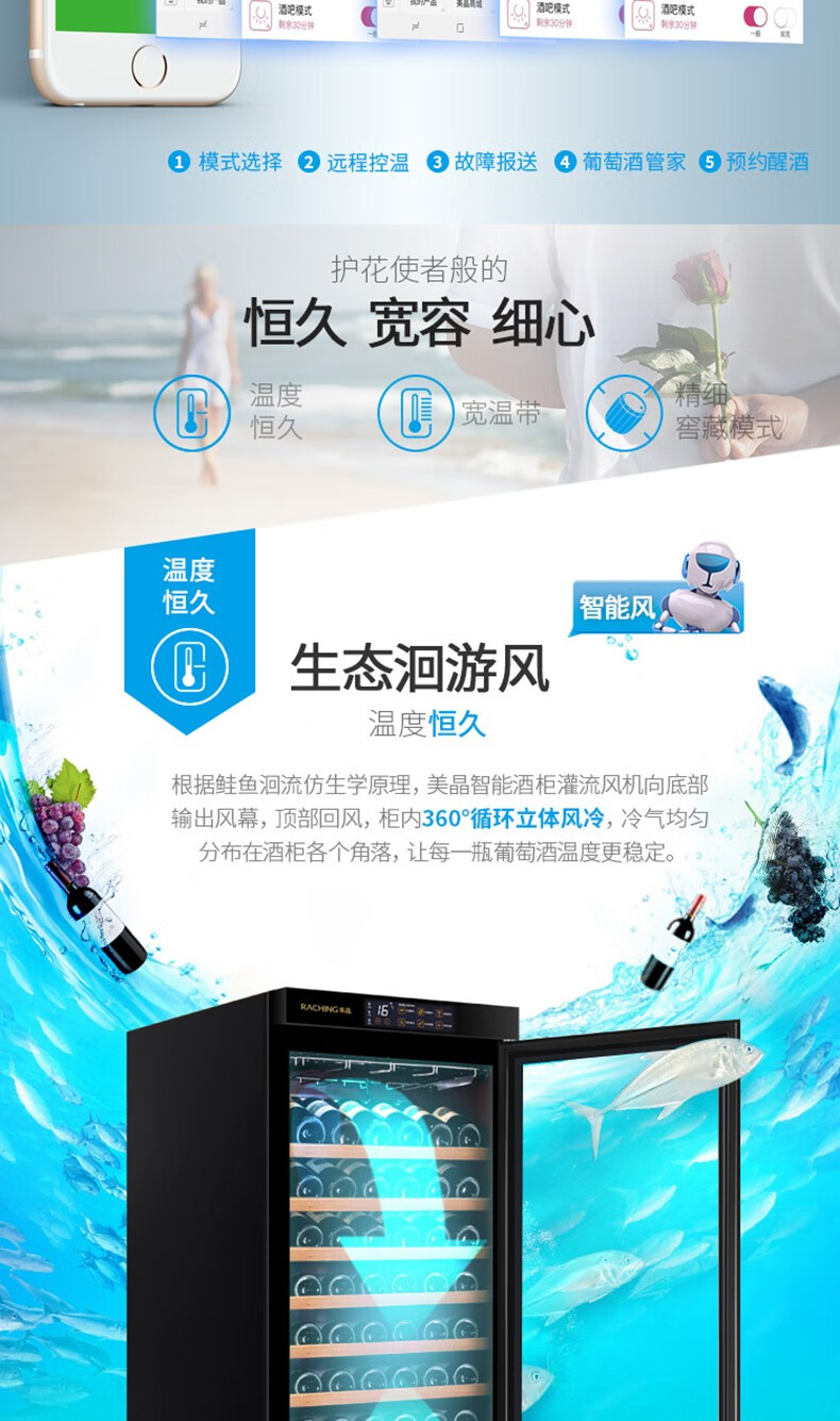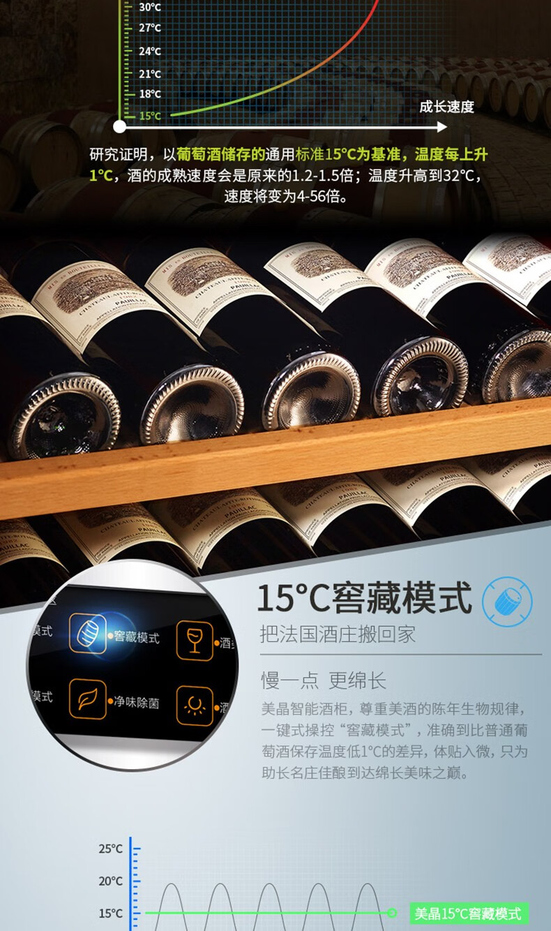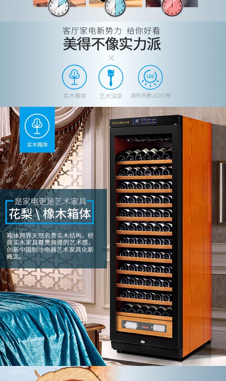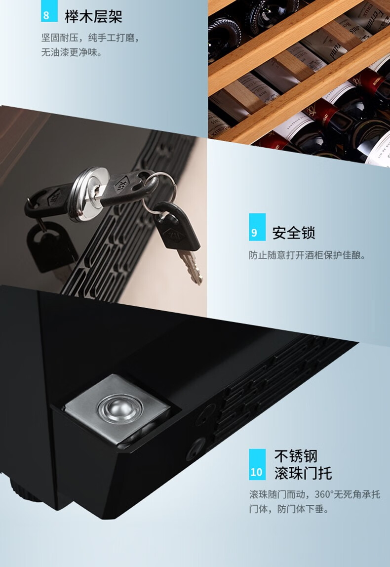 Meijing(raching) W380A-MC Constant Temperature Solid Wood WIFI Smart Air-cooled Red Wine Cabinet Solid Wood Wine Cabinet with Cup Rack Starry Sky Black