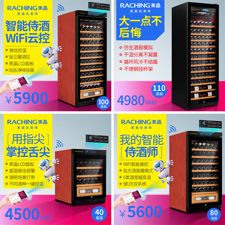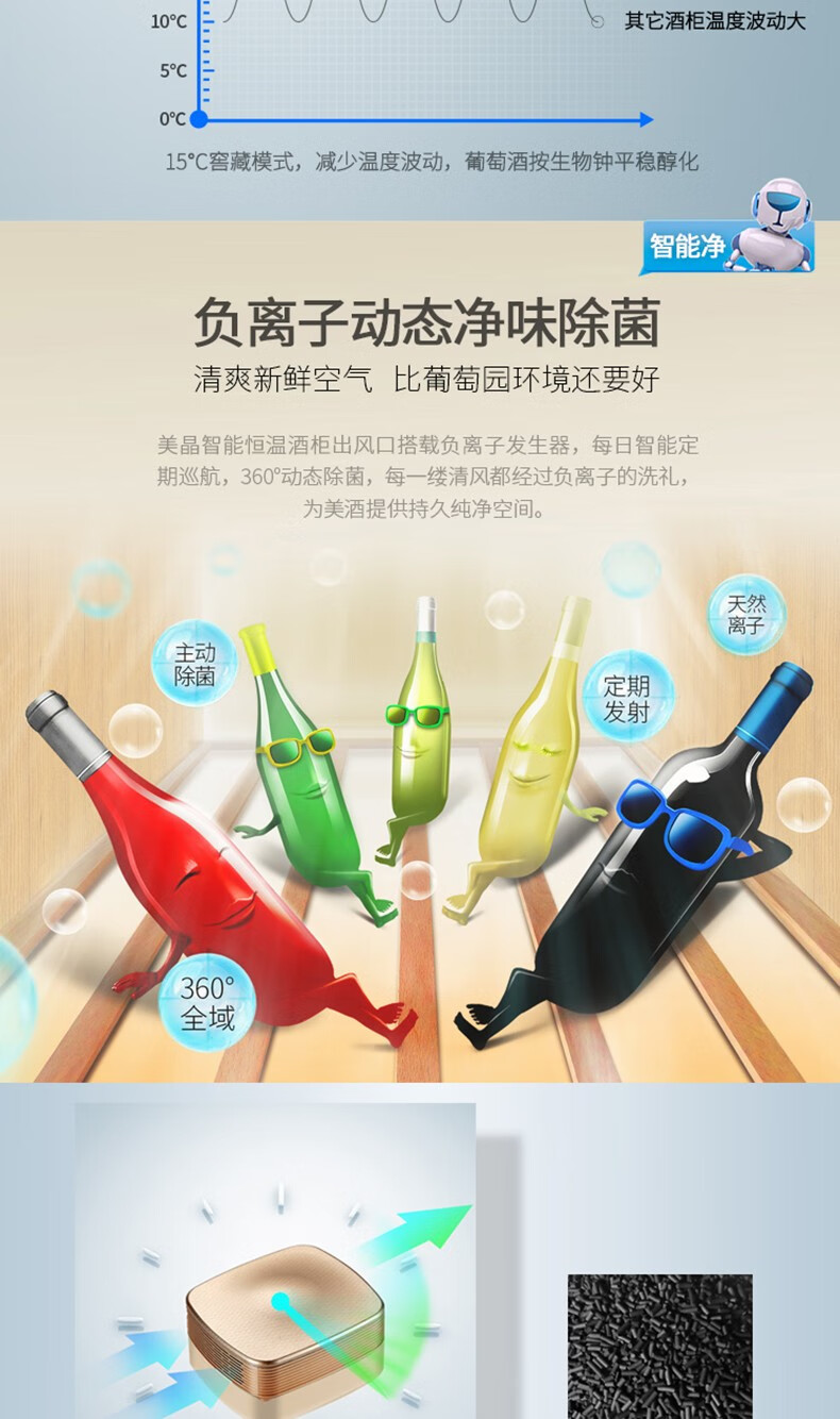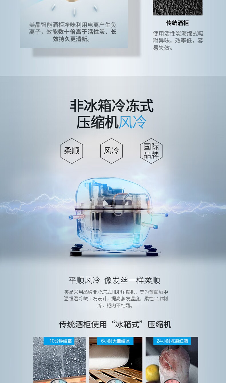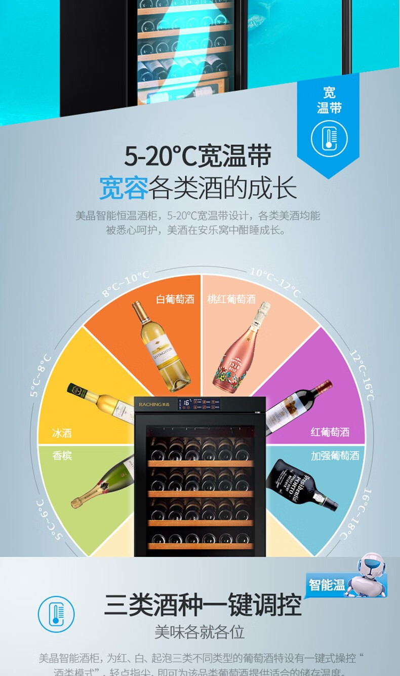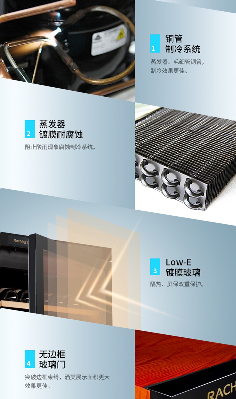 Meijing(raching) W380A-MC Constant Temperature Solid Wood WIFI Smart Air-cooled Red Wine Cabinet Solid Wood Wine Cabinet with Cup Rack Starry Sky Black