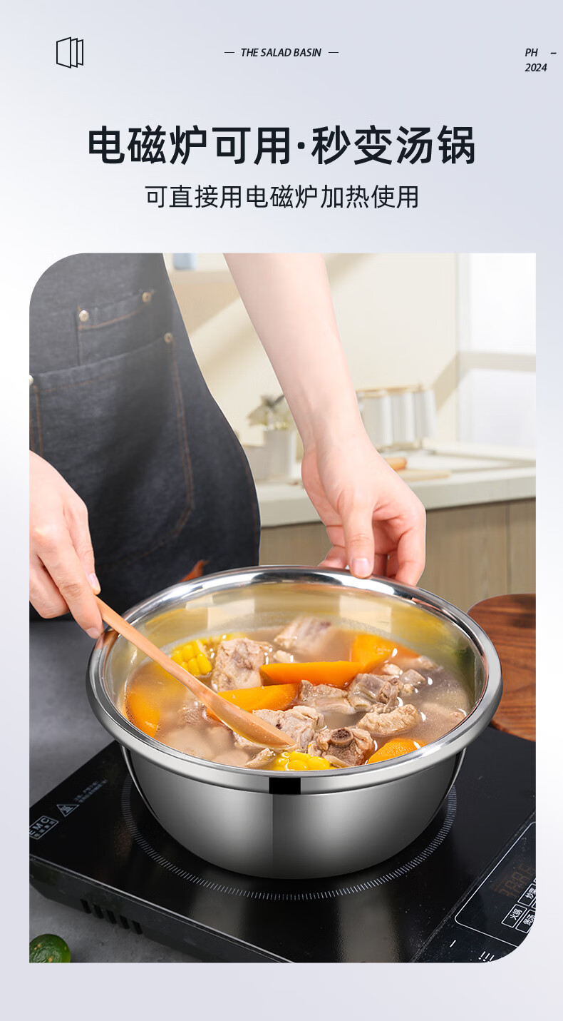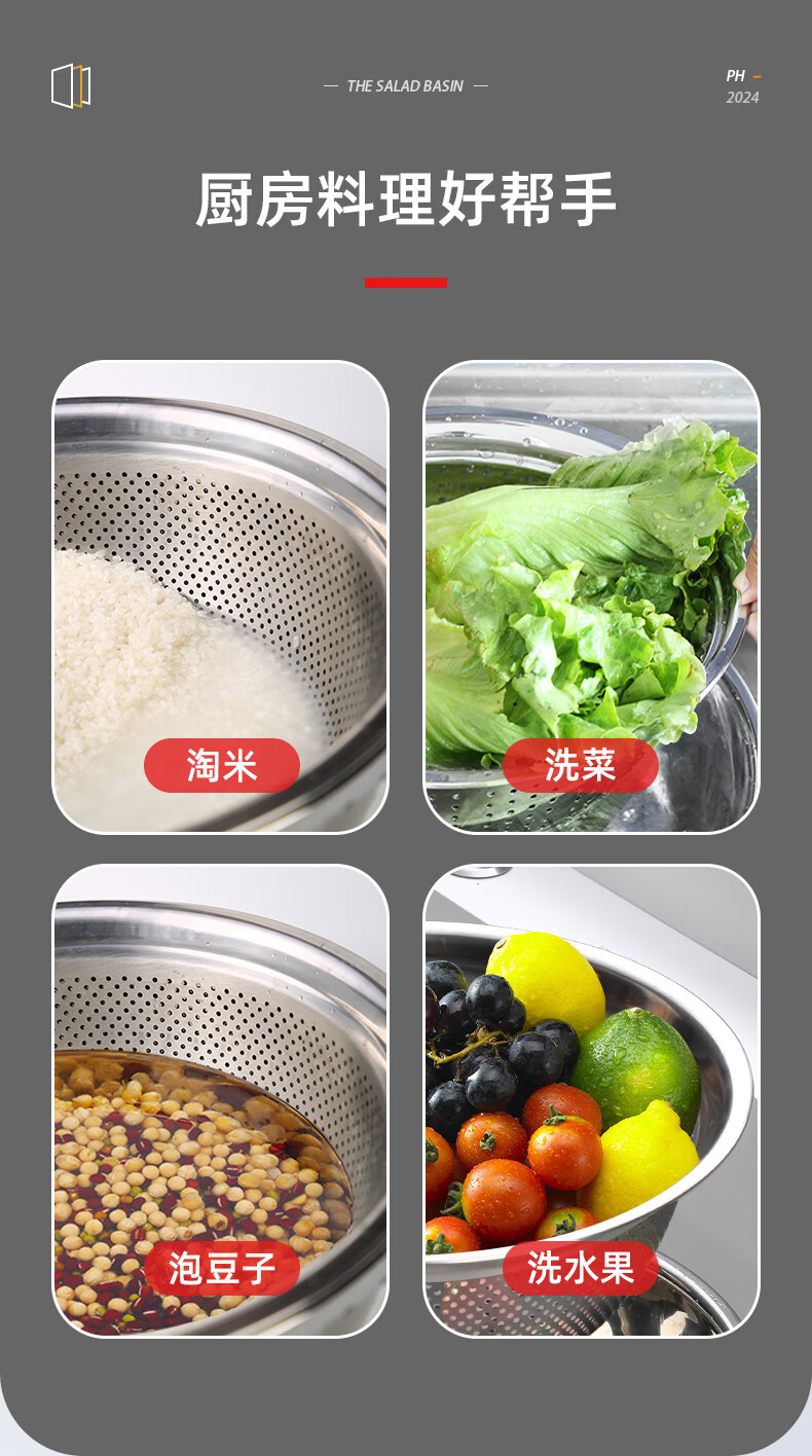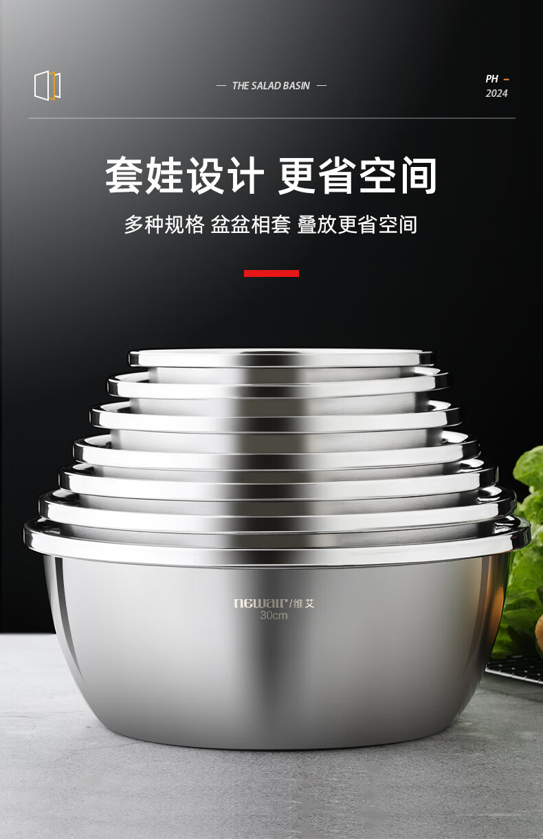 Newair stainless steel basin five-piece set, seasoning basin, rice washing basin and basin drain basket, salad basin, rice sieve and flavor bucket set