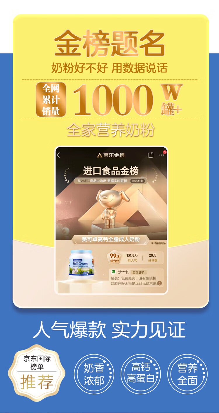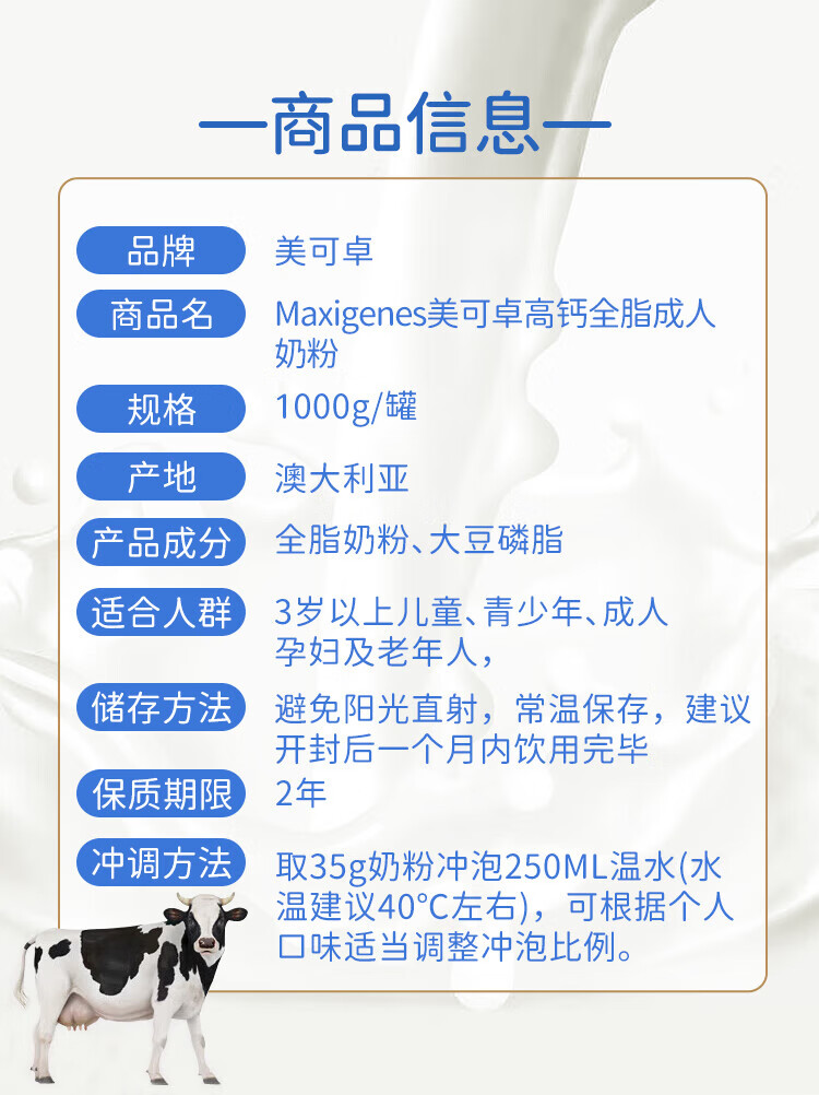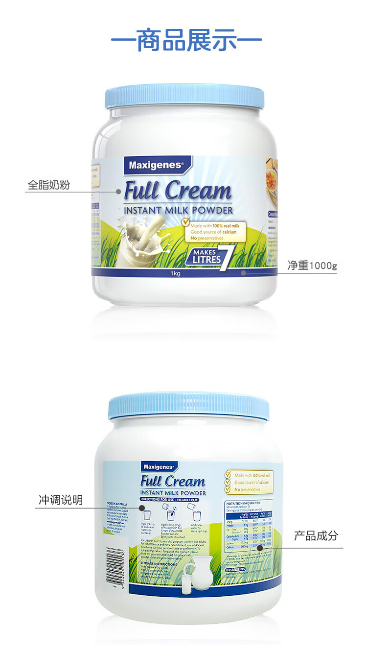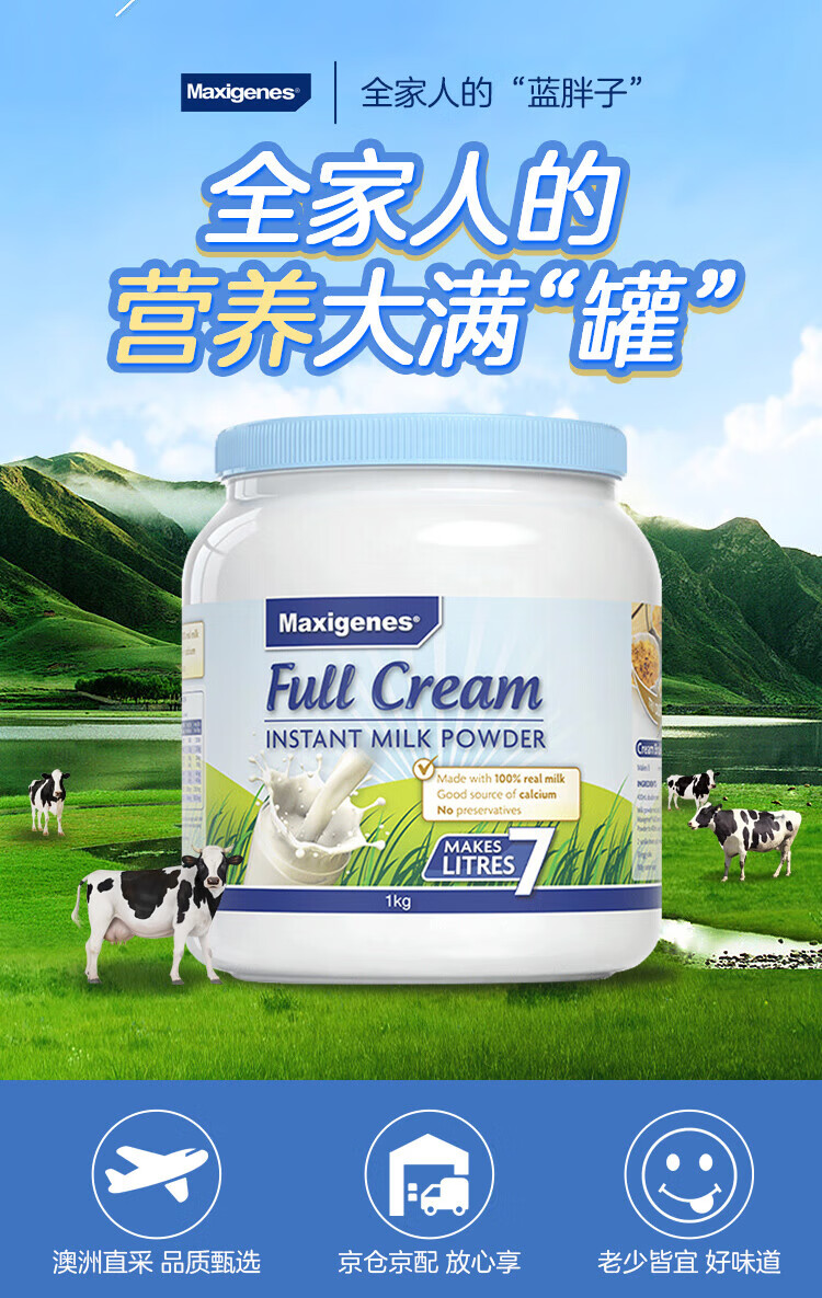 Maxigenes Mecozo blue fat full-fat adult milk powder 1kg can 0 sucrose high calcium children students middle-aged and elderly