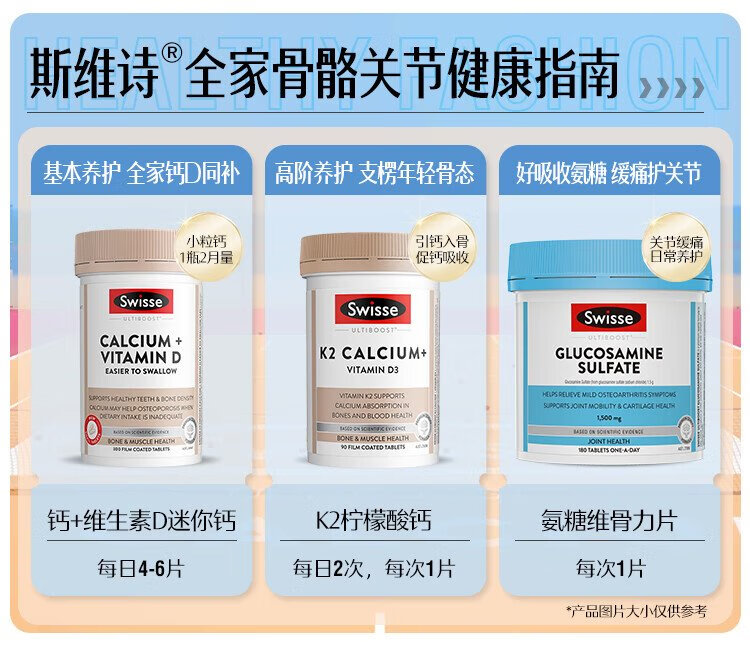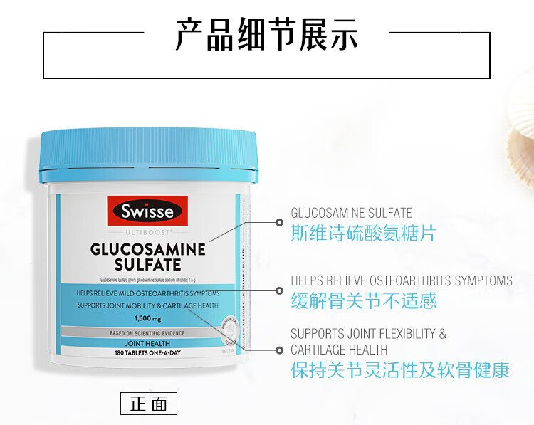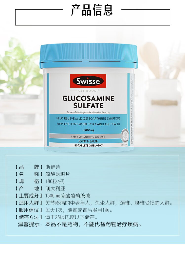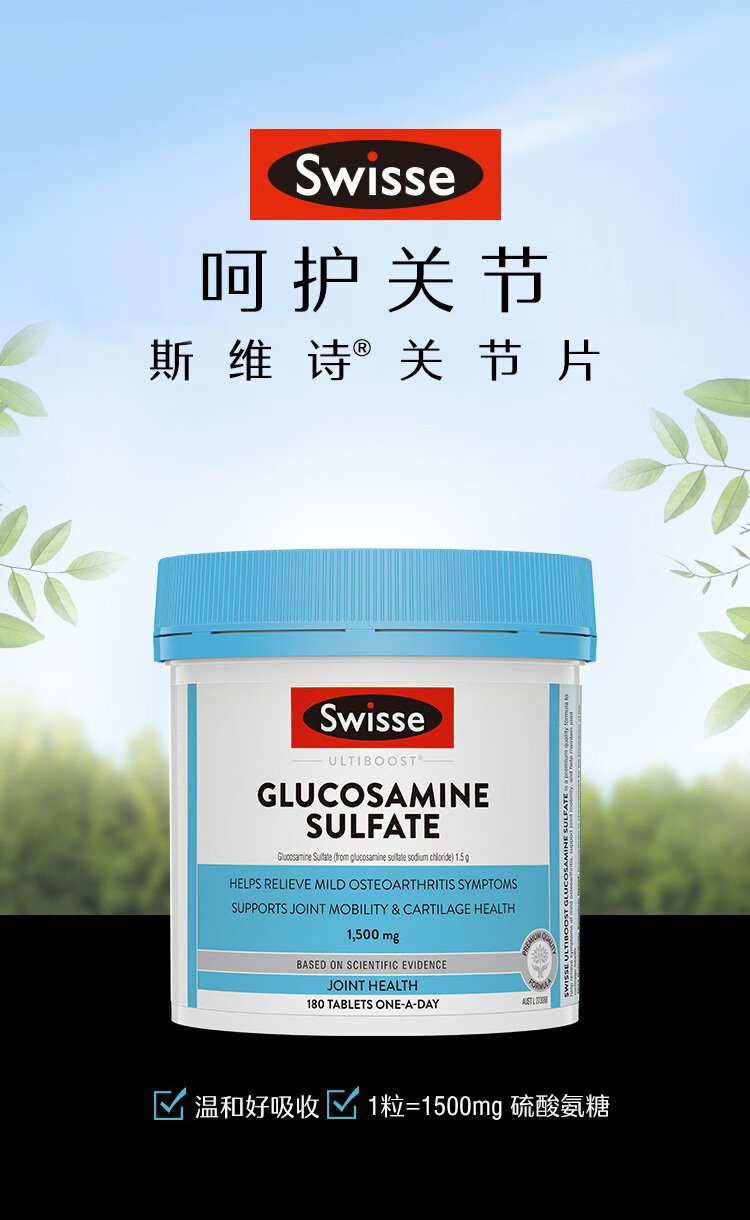 Swisse斯维诗 氨糖维骨力1500mg 成人中老年关节养护 180片/瓶