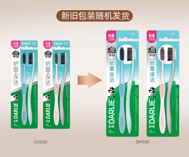 DARLIE Haolai (original black) charcoal deep cleansing soft bristle toothbrush 8 pieces (new and old are randomly distributed)
