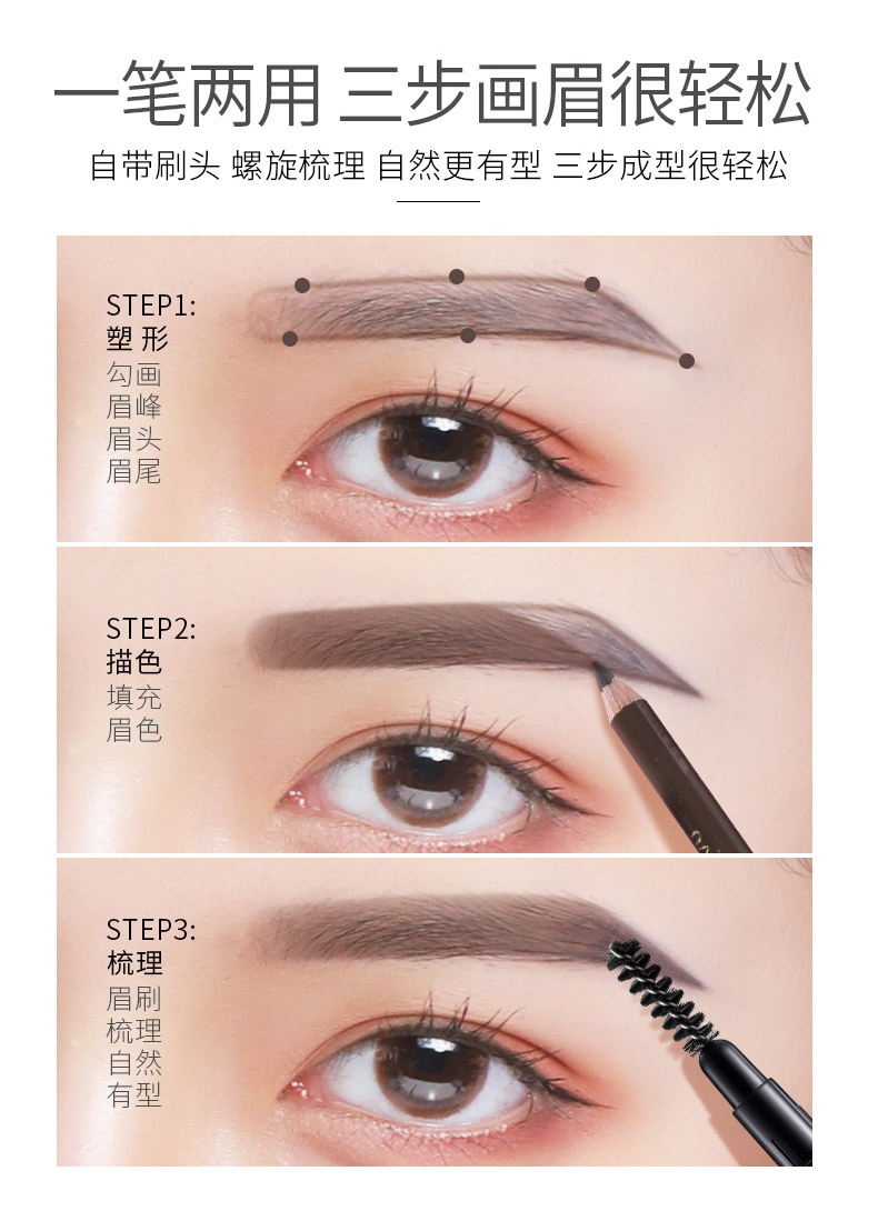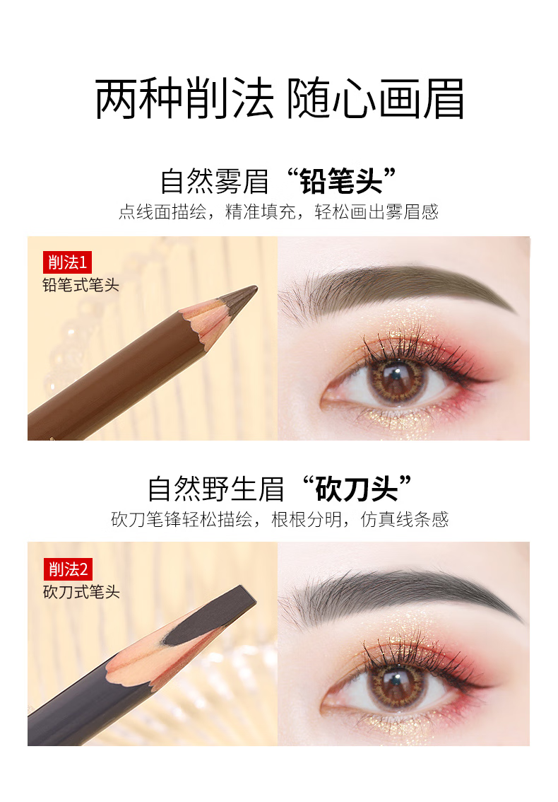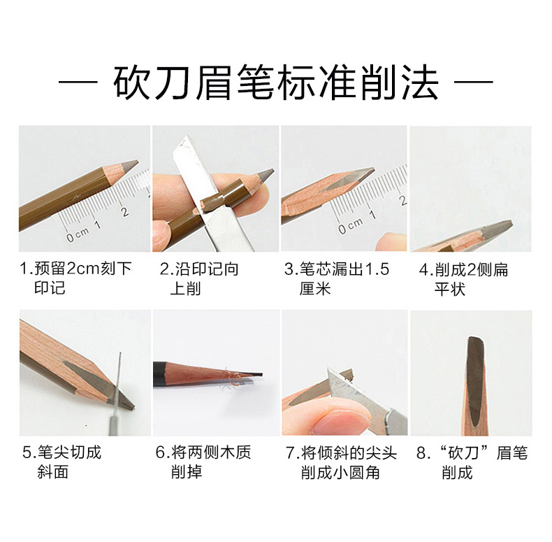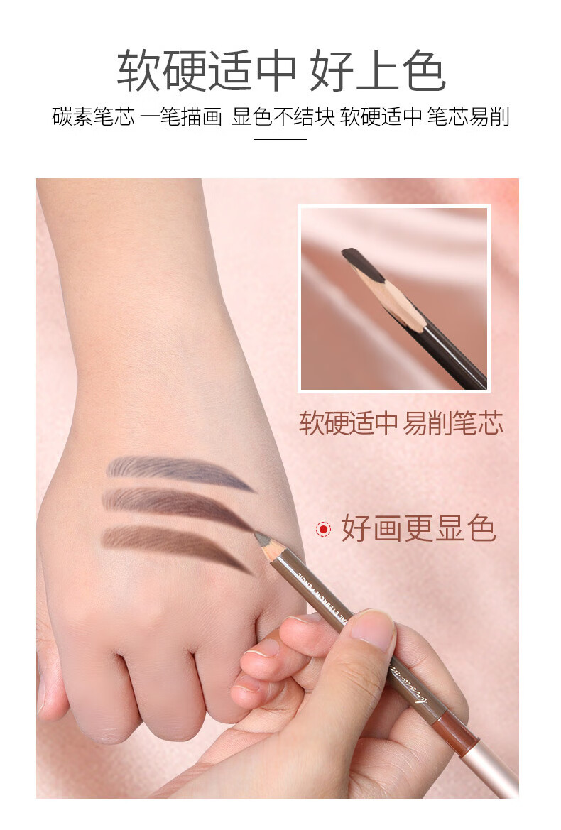 Carslan eyebrow pencil waterproof, sweat-proof and non-fading wild simulated eyebrow pencil for men and women wooden knife-cutting machete flat novice 02 dark brown plus pencil sharpener