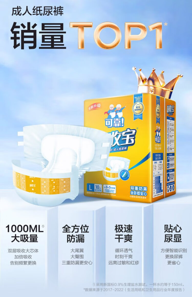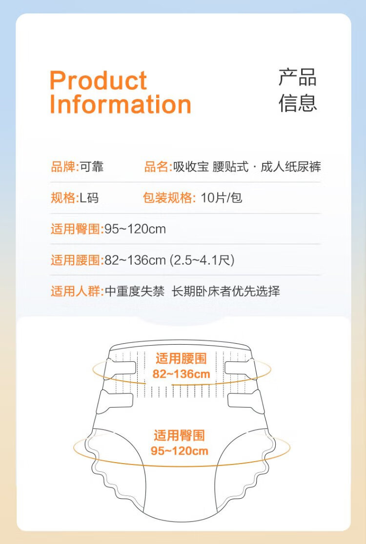 Reliable (COCO) Absorbent Adult Diapers L80 (Hip 95-120cm) Adhesive Elderly Pregnant Women Diapers