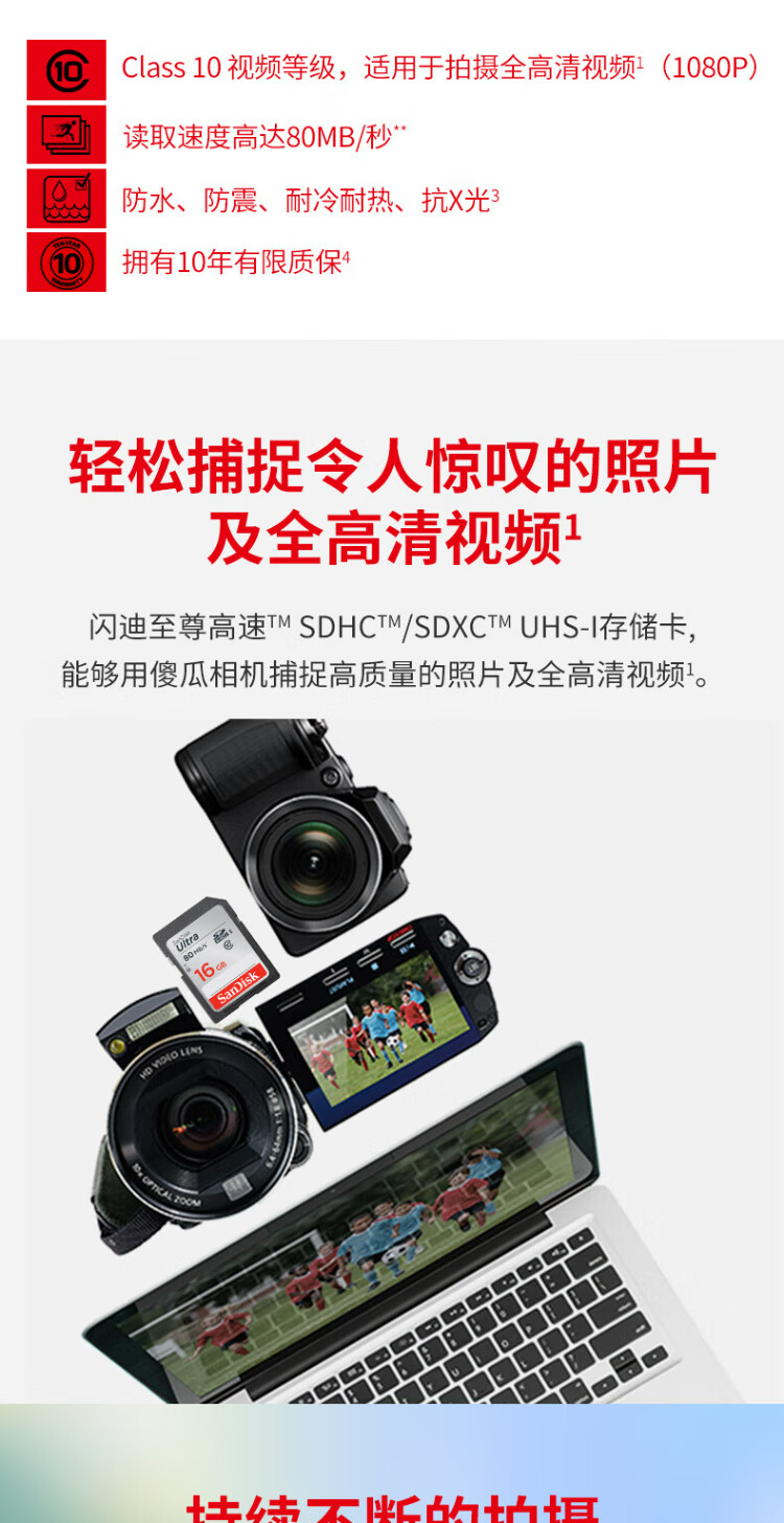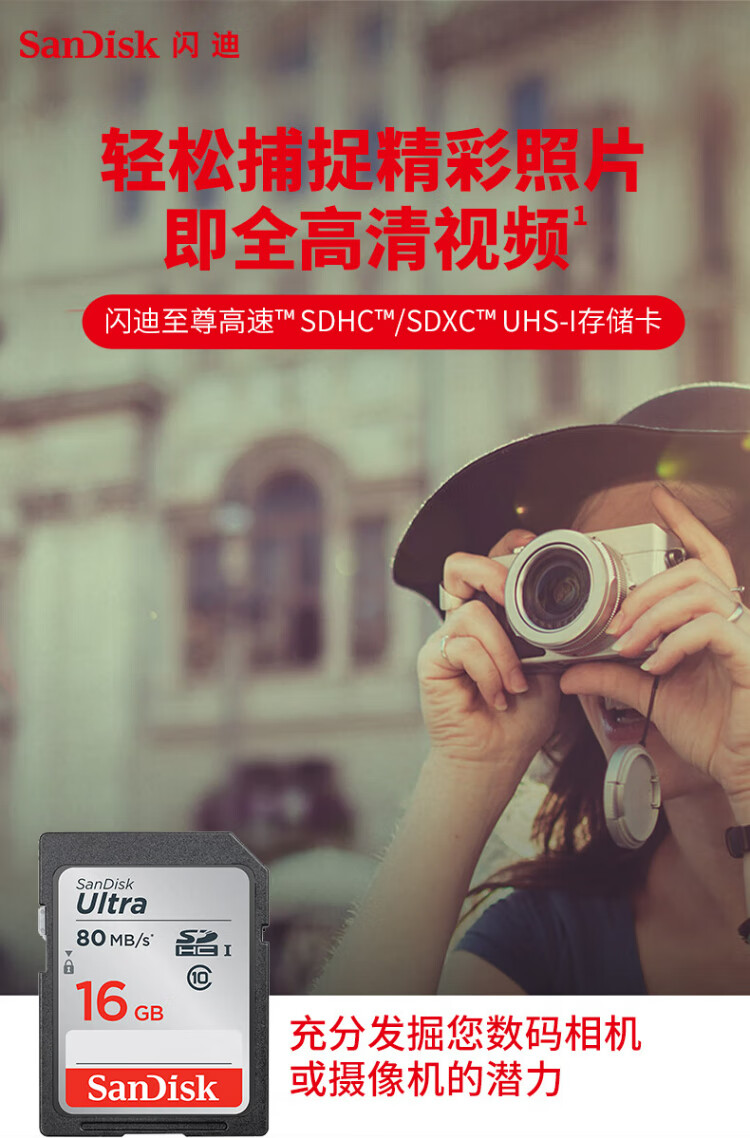 SanDisk 16GB SD Memory Card C10 Extreme Speed Memory Card, reading speed 80MB/s, captures full HD, ideal companion for digital cameras