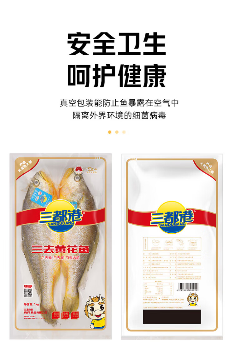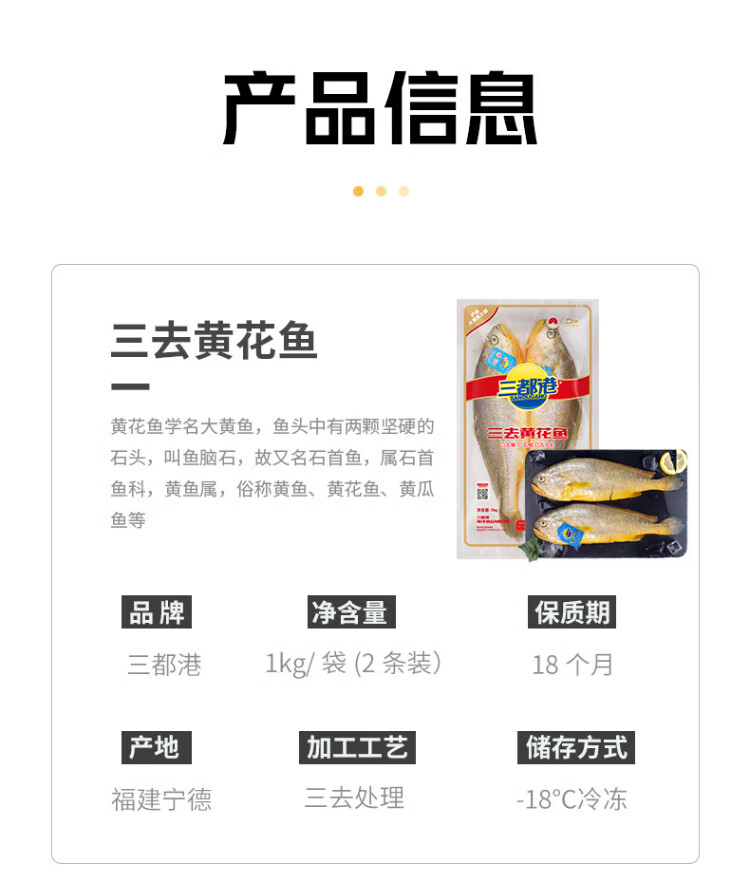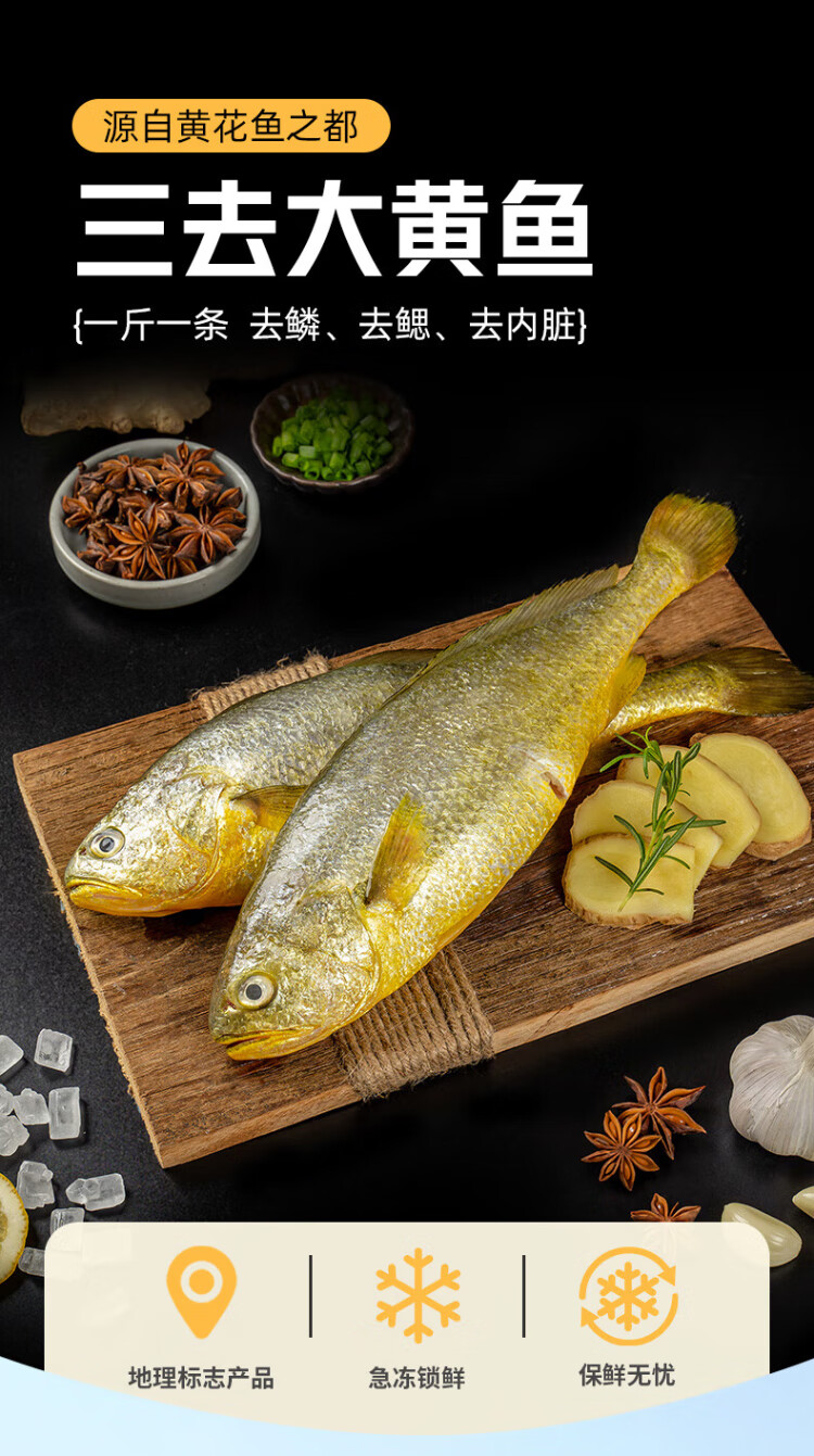 Sandu Port Frozen Three-Removed Large Yellow Croaker Net Weight 2Jin Jin is equal to 0.5kg / 2 packs Ningde Yellow Croaker Fresh Fish
