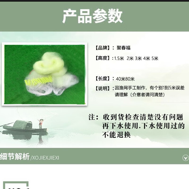 Juchunfu three-layer mesh wire net fishing net dipped fish net hanging net crucian carp net white strip net white strip net single layer floating net fishing net sea net yellow wire 2 meters high 40 meters long 7 finger sinking net three layers