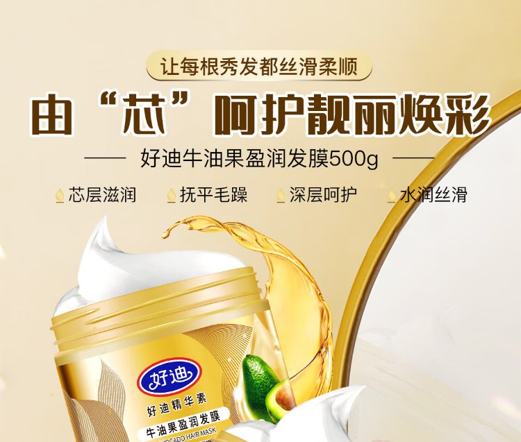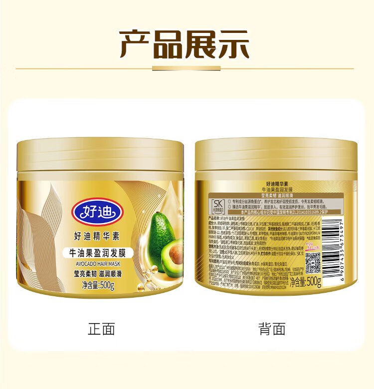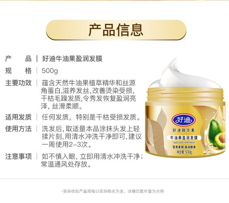 Haodi Avocado Hair Mask Repairs Dryness, Improves Frizz, Perm and Dye Damage, Smooth and Shiny Conditioner 500g