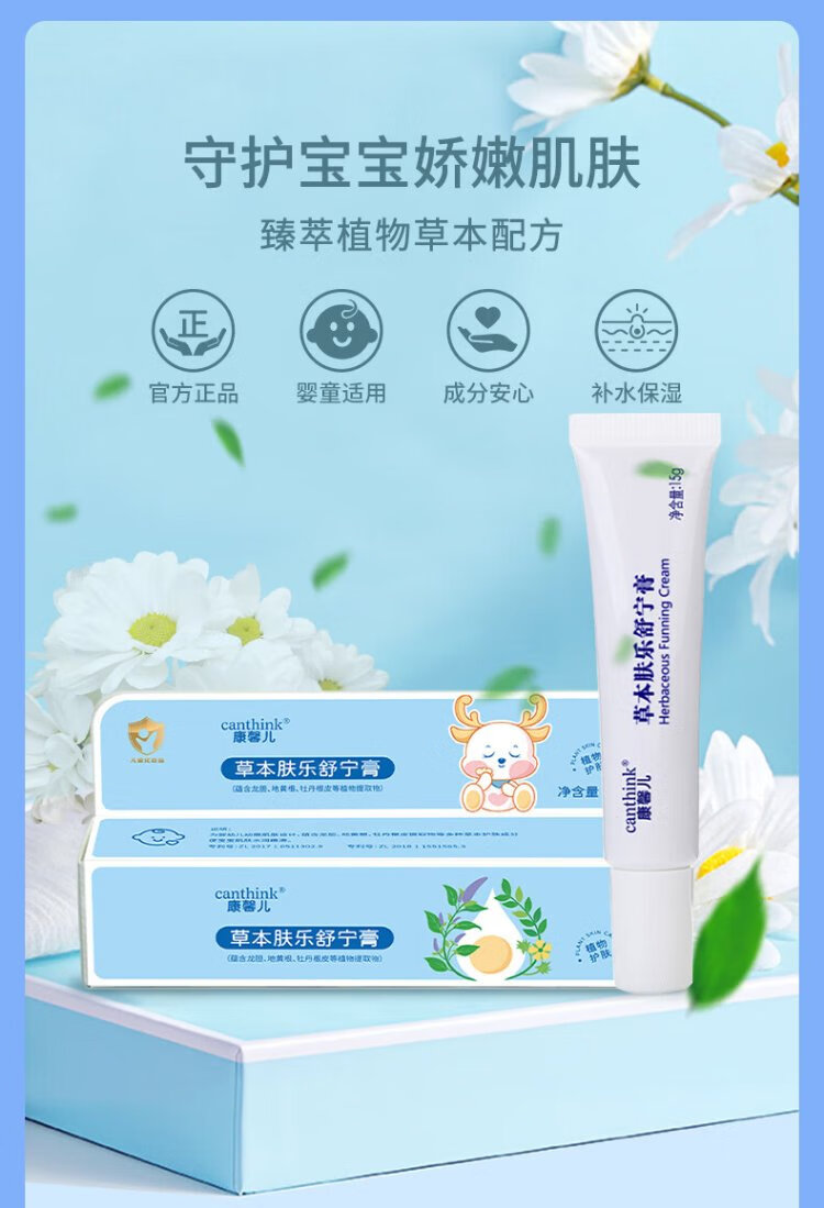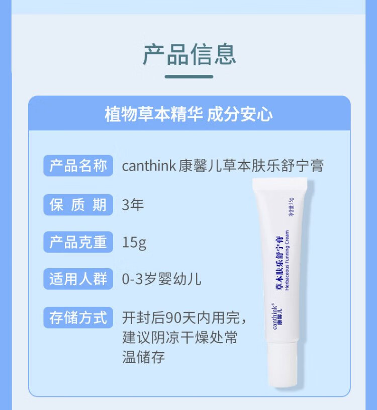 Canthink Kangxin'er herbal Shuning cream Fule cream saliva care newborn baby hip cream butt cream Kangxin'er Shuning cream 15g 1 tube