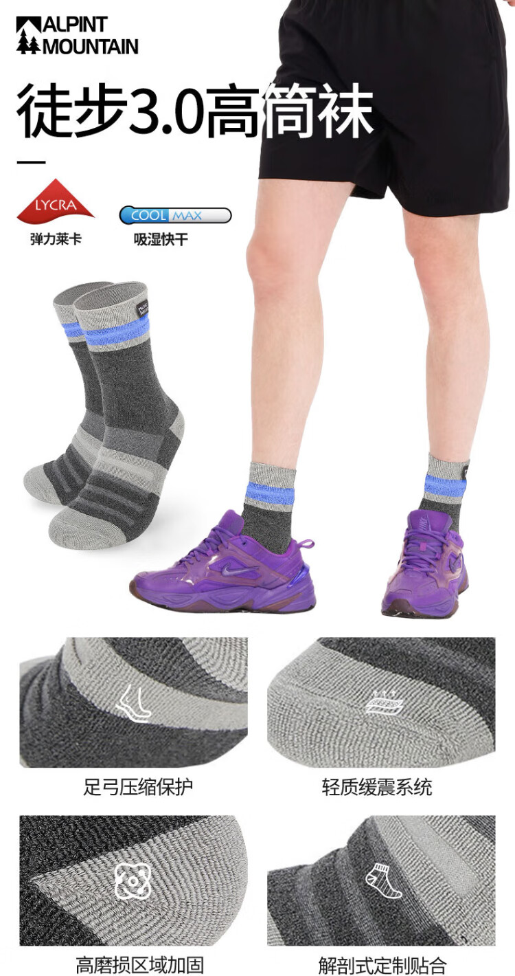 ALPINT MOUNTAIN Elmont outdoor hiking socks women's professional hiking socks CoolMax socks high-top quick-drying breathable sports socks
