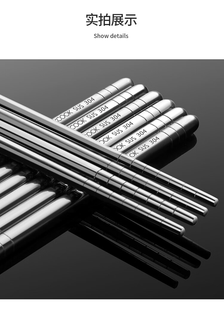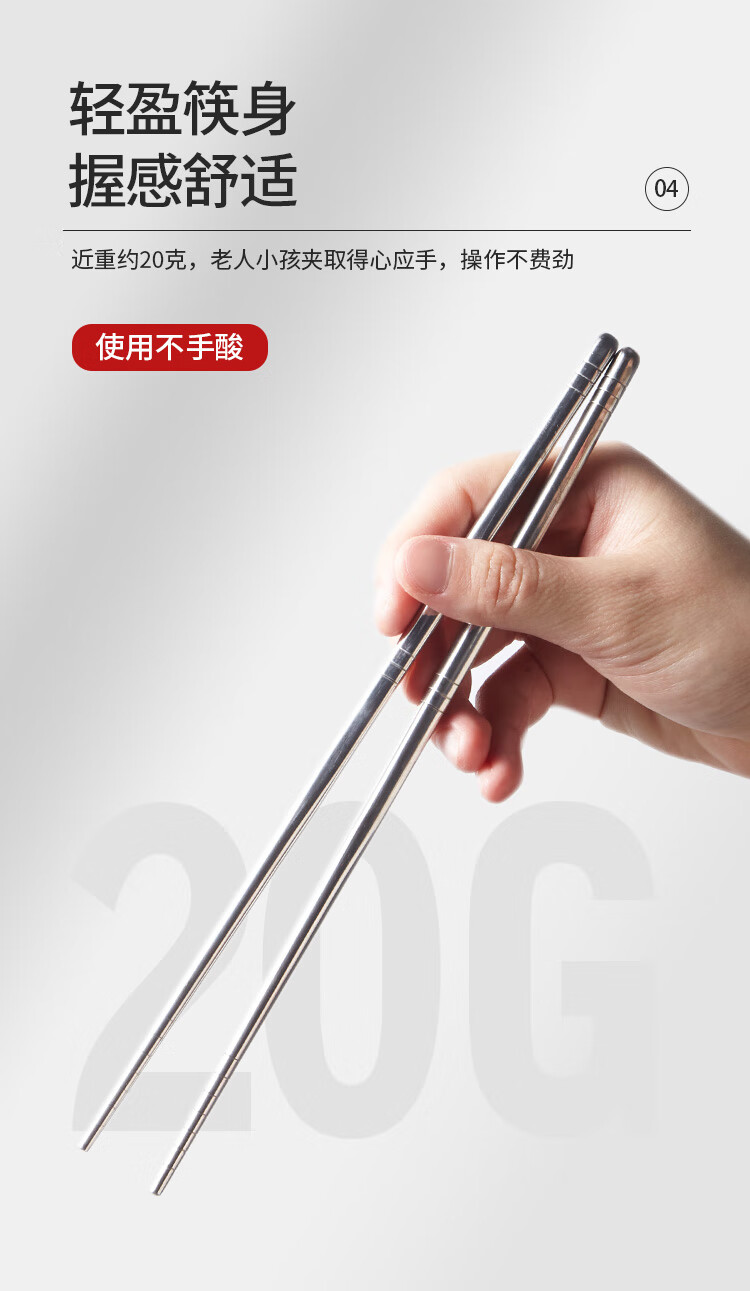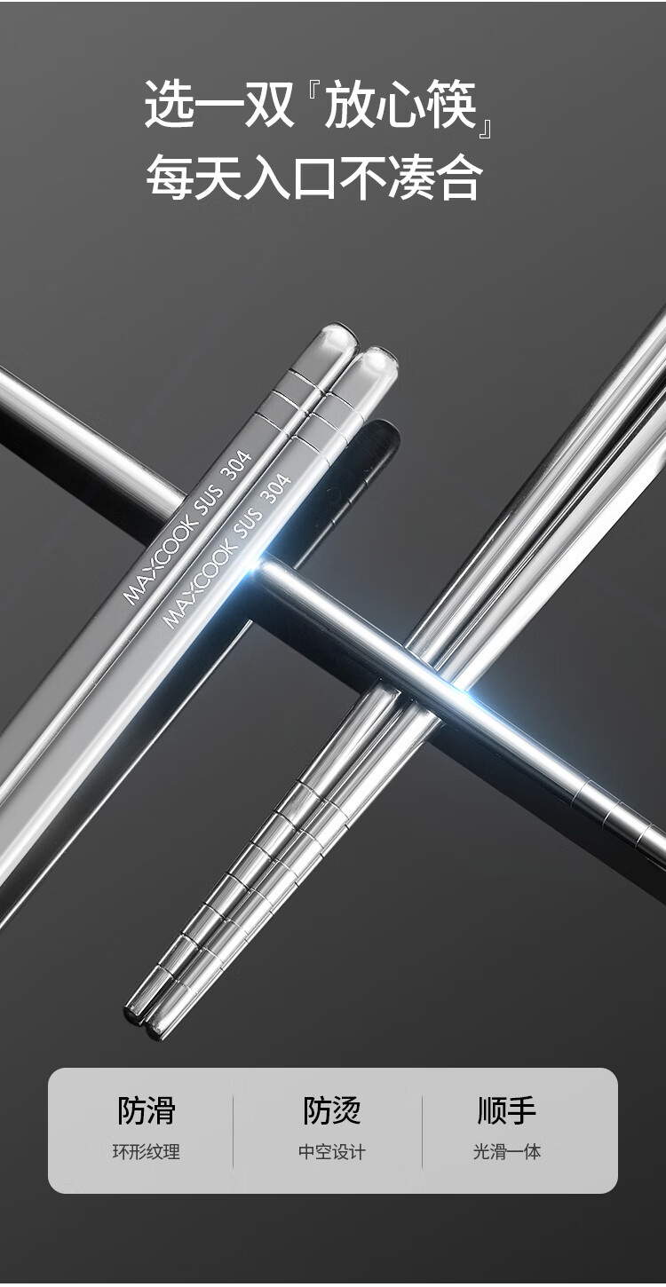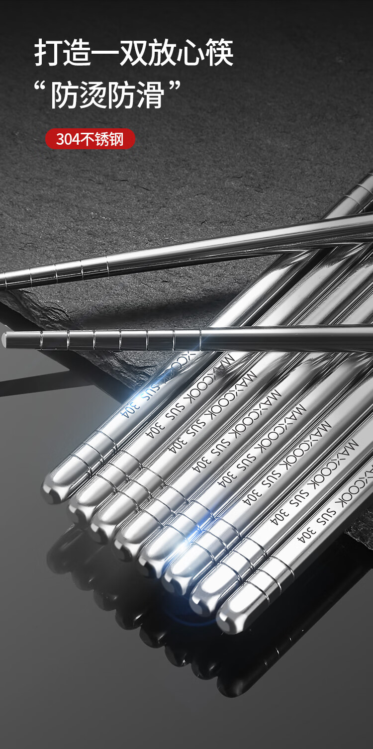 Maxcook 304 stainless steel chopsticks 10 pairs in box MCPJ-GK10A anti-slip, anti-scalding, and drop-resistant