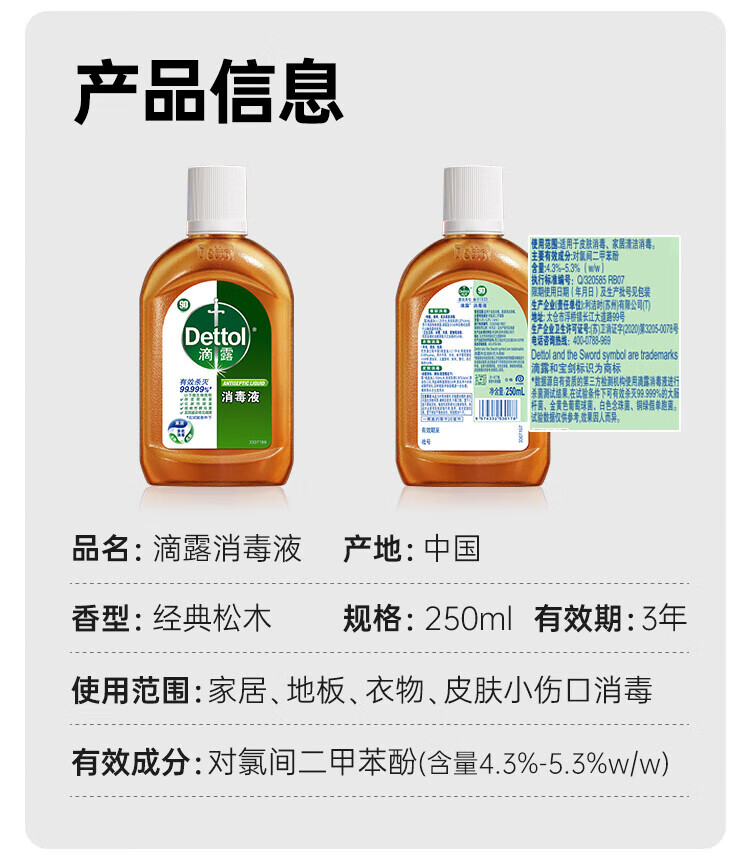 Dettol disinfectant 250ml clothing disinfectant home indoor environment floor disinfection clothing disinfectant pine scent