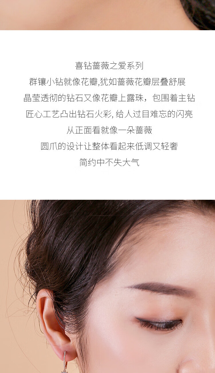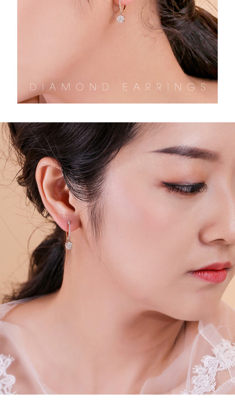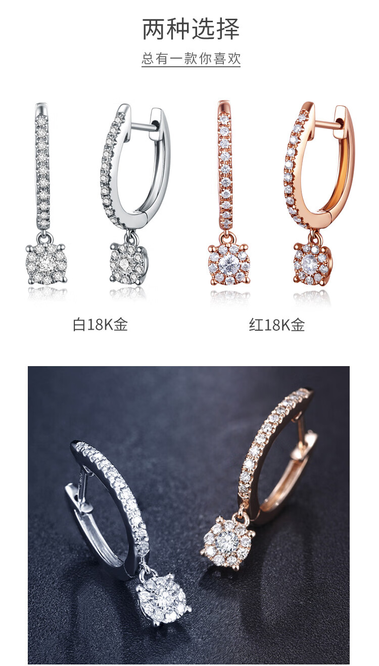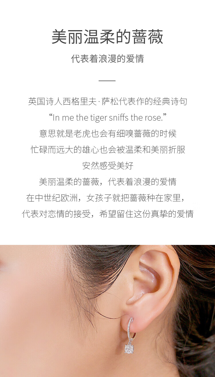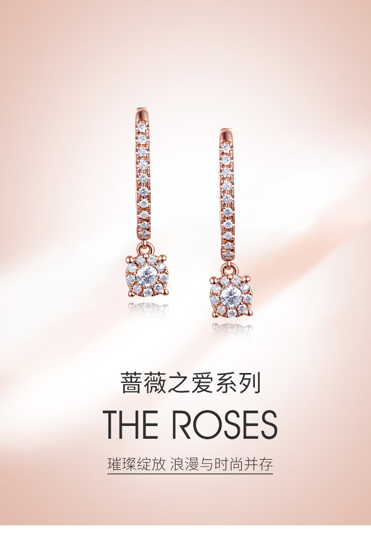 Diamond Rose Love 18K Gold Diamond Earrings Women's Four-Prong Diamond Earrings Proposal Wedding Scenario Gift White 18K Gold Total 33 Points/Pair