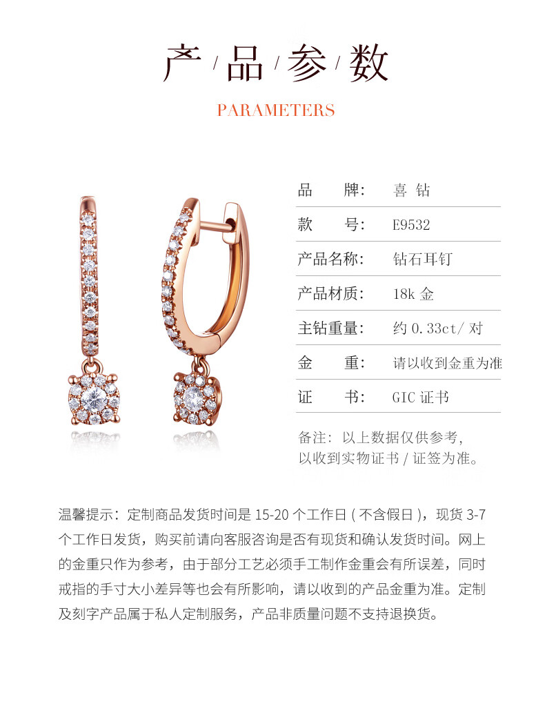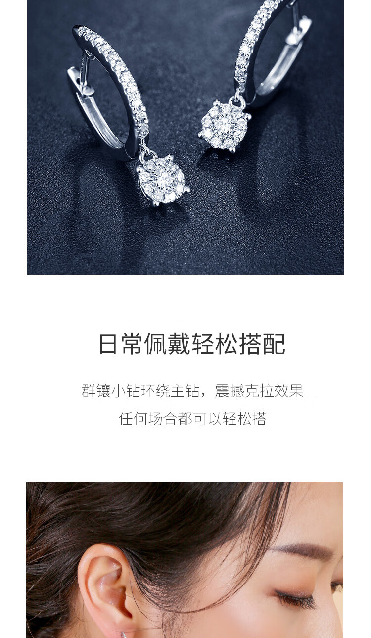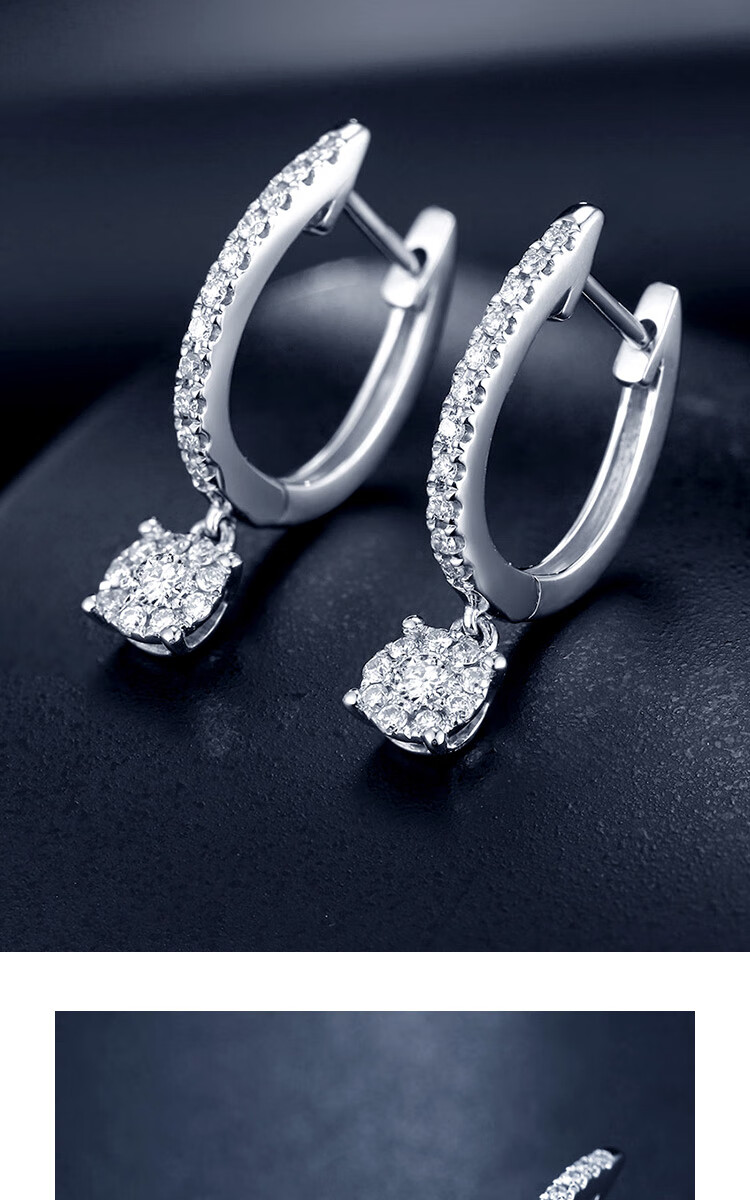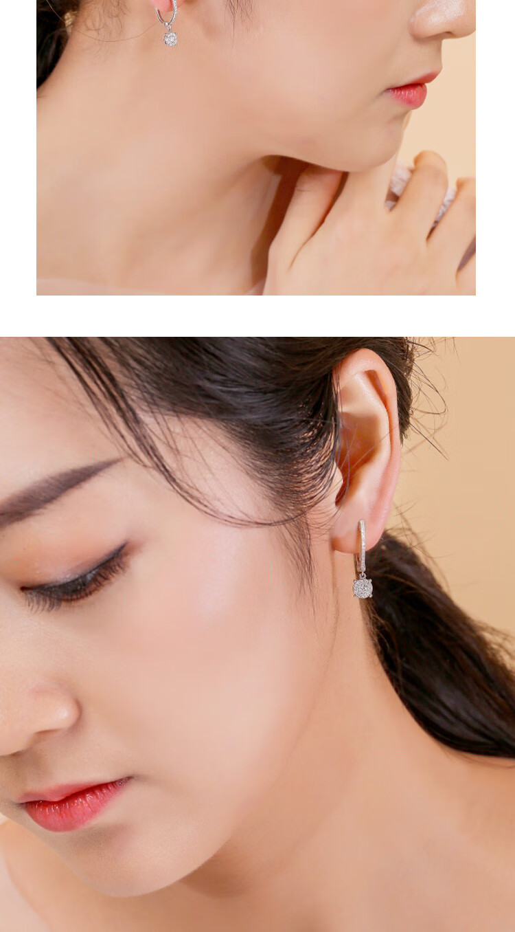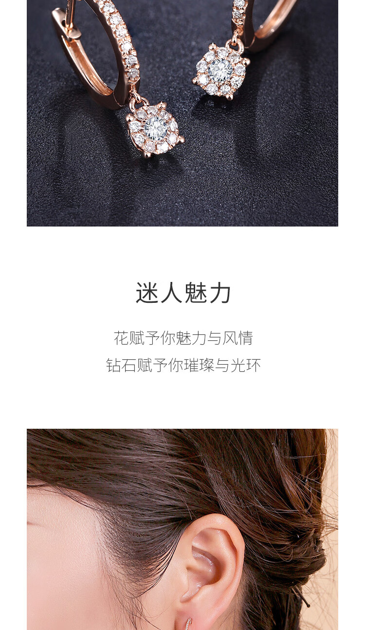 Diamond Rose Love 18K Gold Diamond Earrings Women's Four-Prong Diamond Earrings Proposal Wedding Scenario Gift White 18K Gold Total 33 Points/Pair
